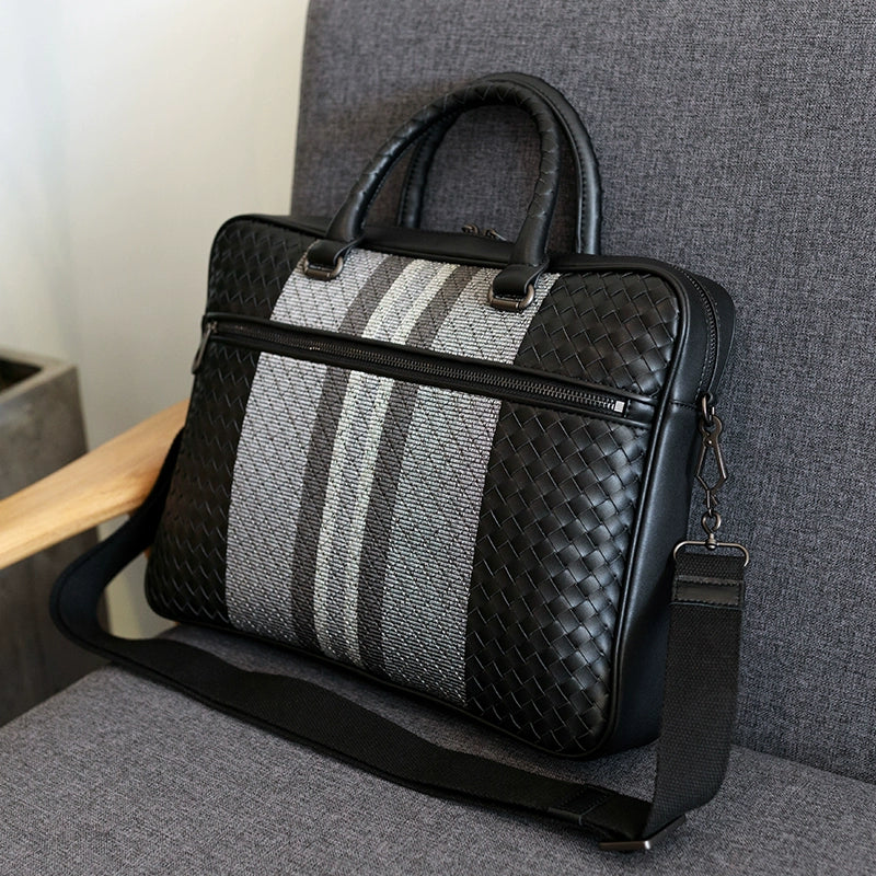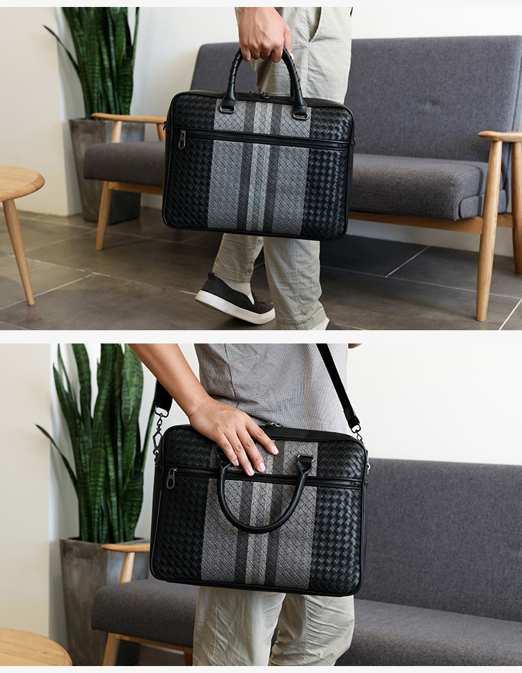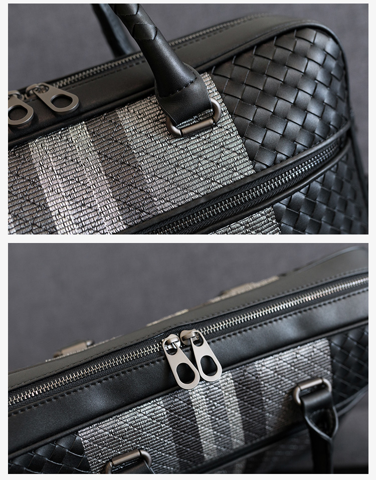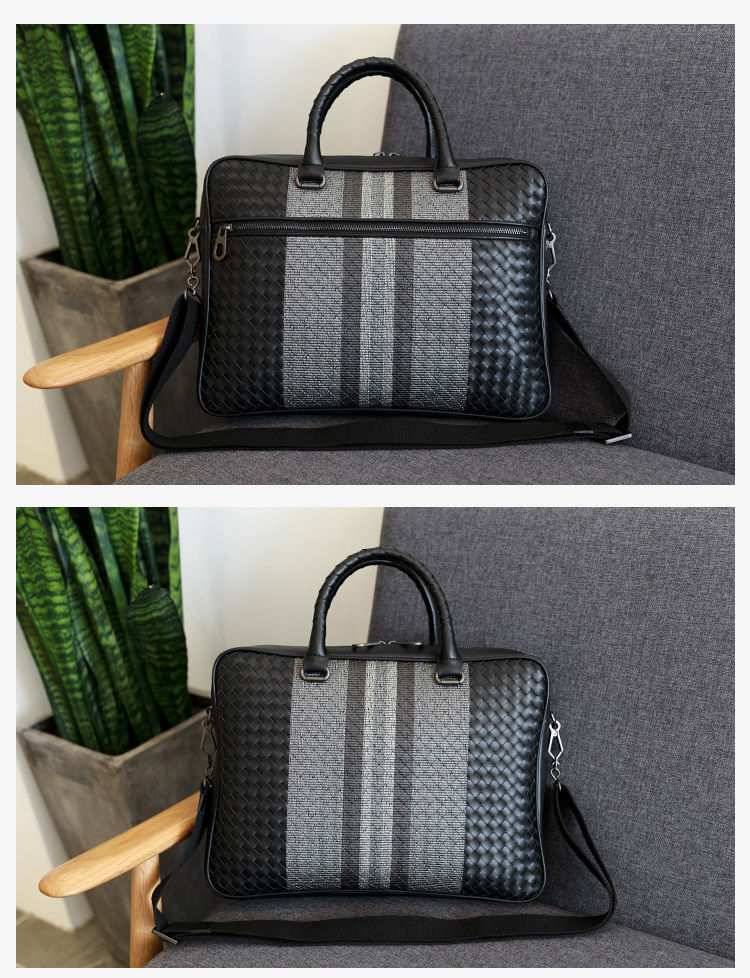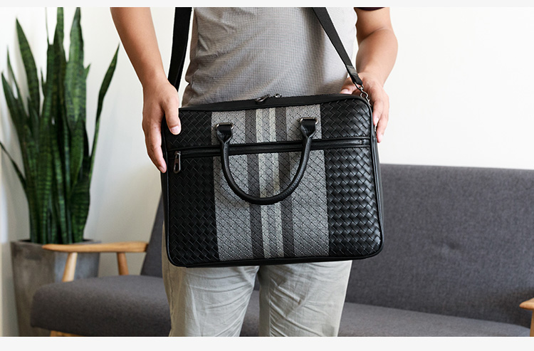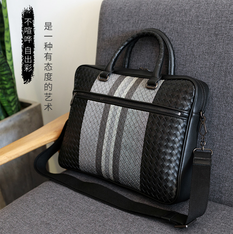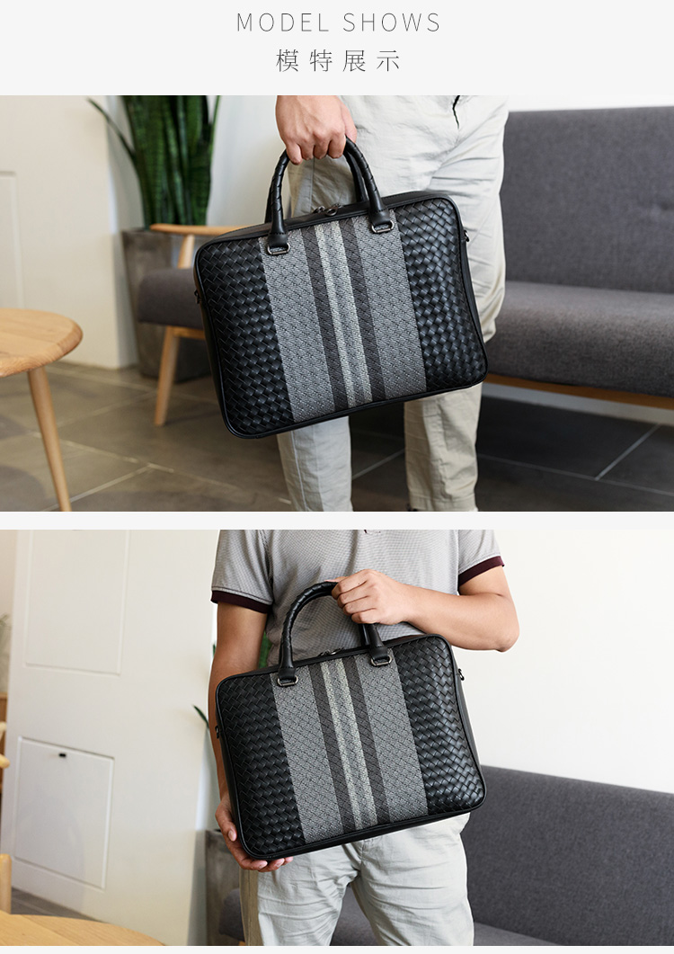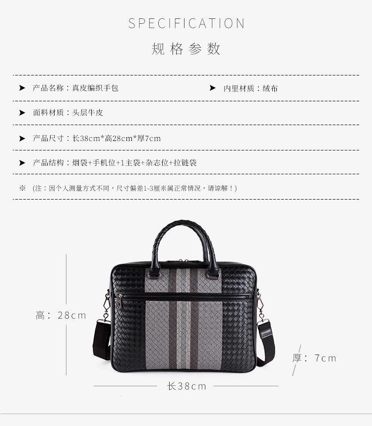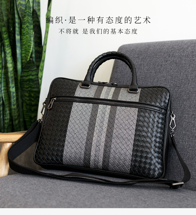 手提包男真皮商务公文包牛皮编织男包单肩斜挎包电脑包男士公文包