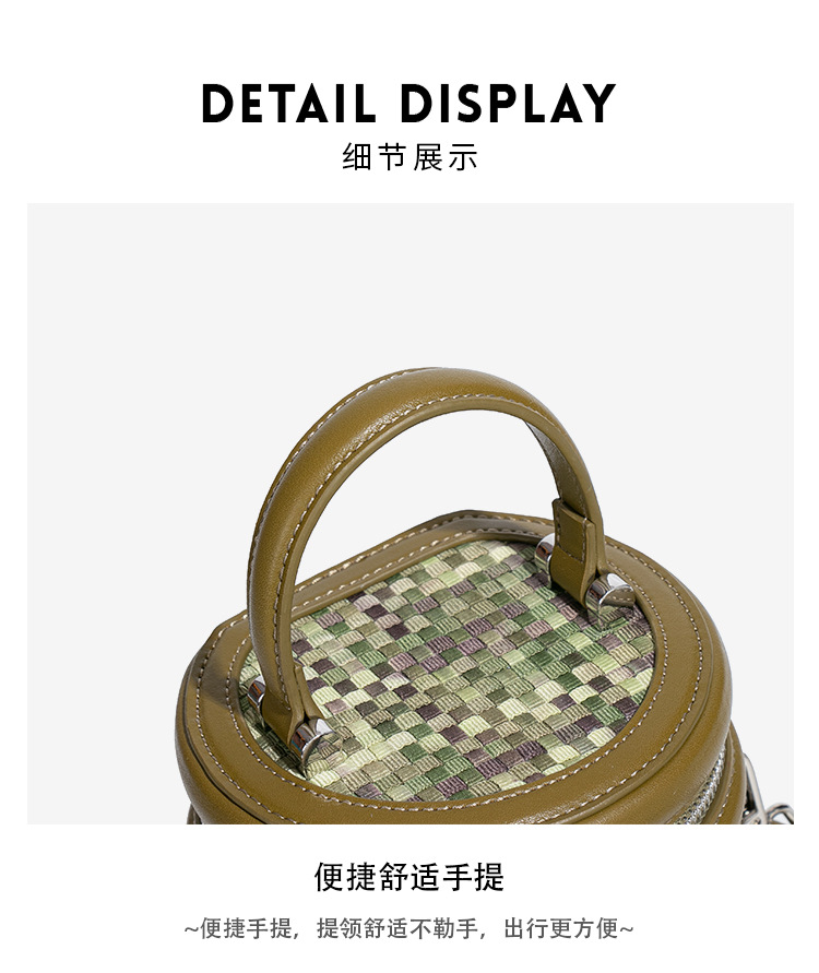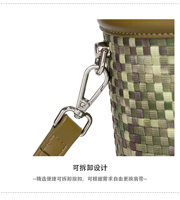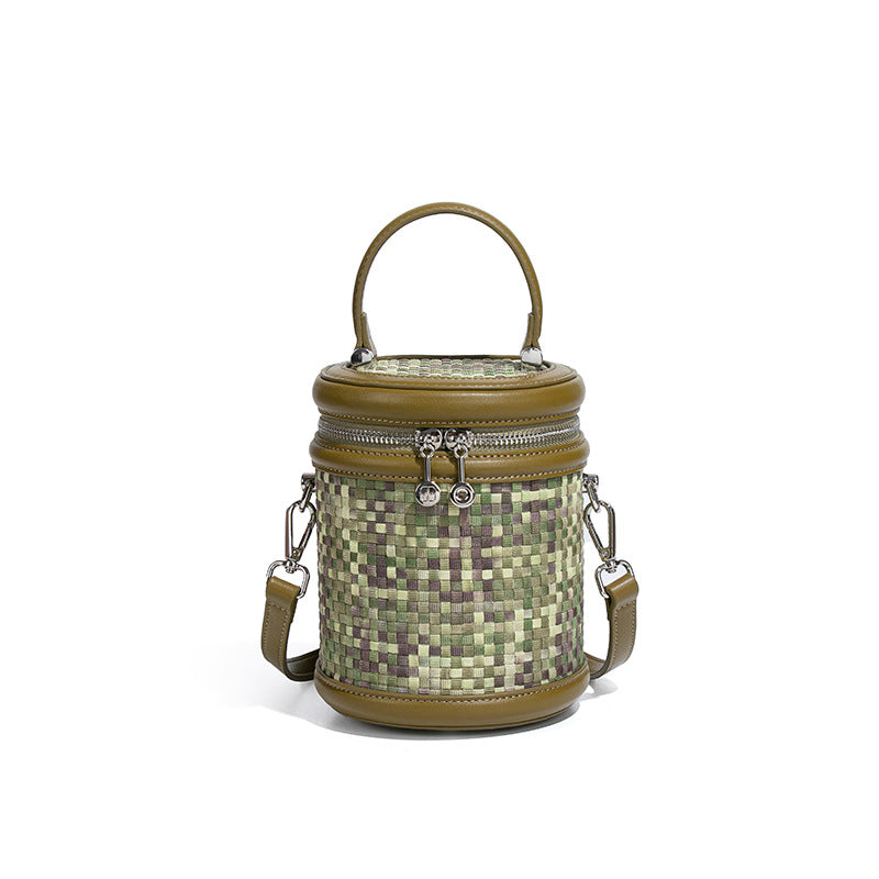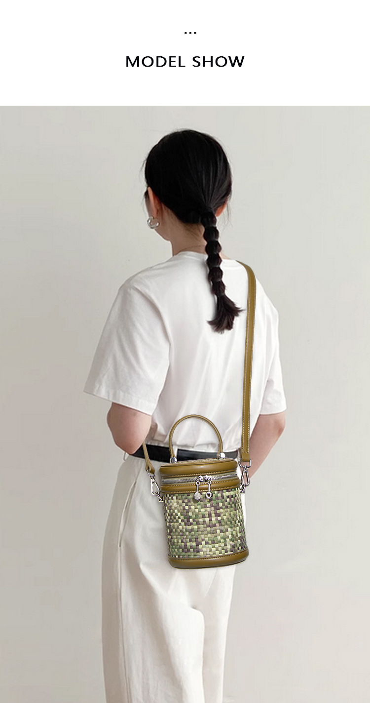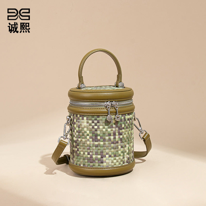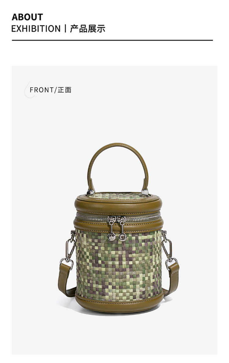 手提水桶包包女撞色新品潮流编织包单肩斜跨化妆包小众百搭圆筒包