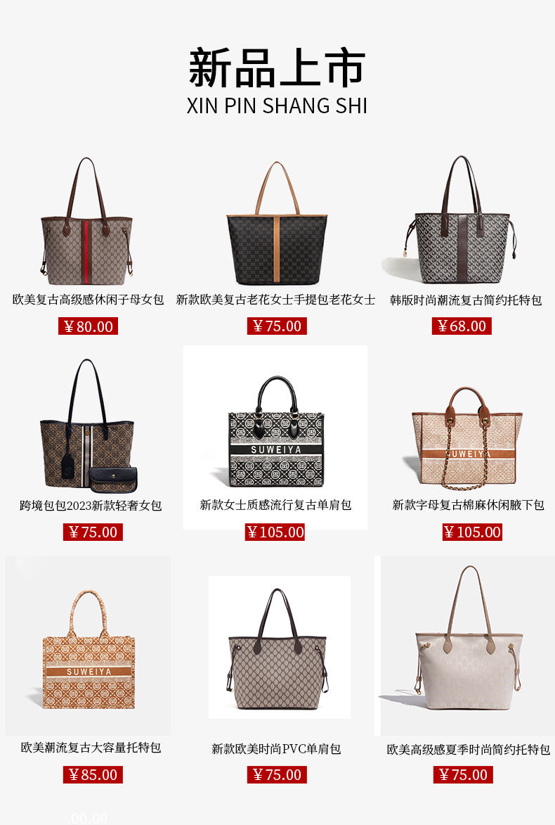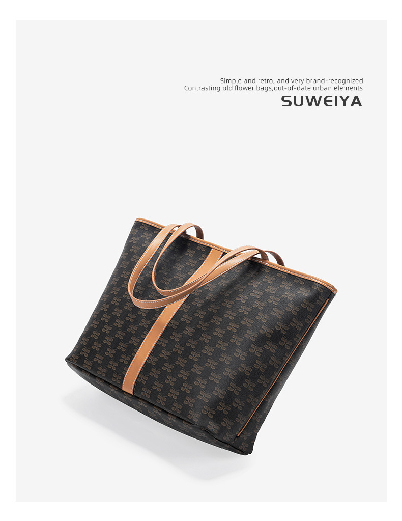 托特包包女2024新款欧美复古手提包老花女士大容量单肩女包时尚