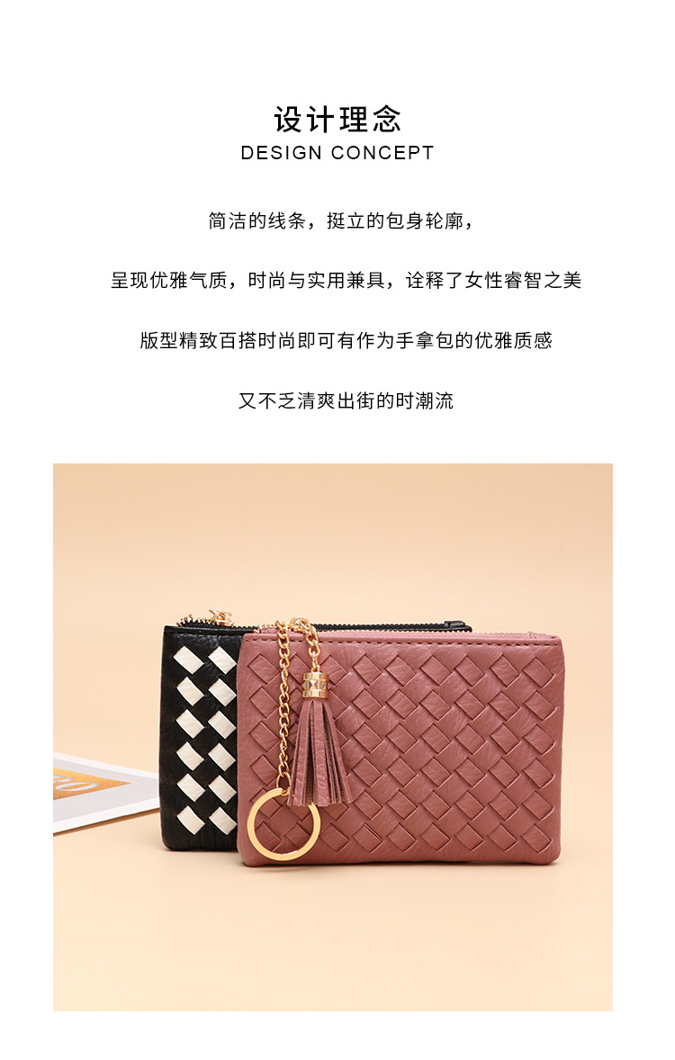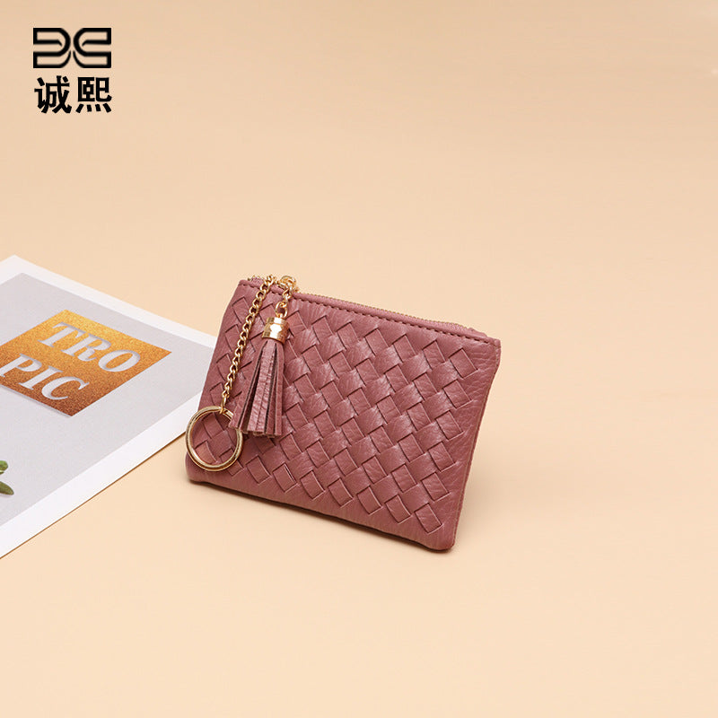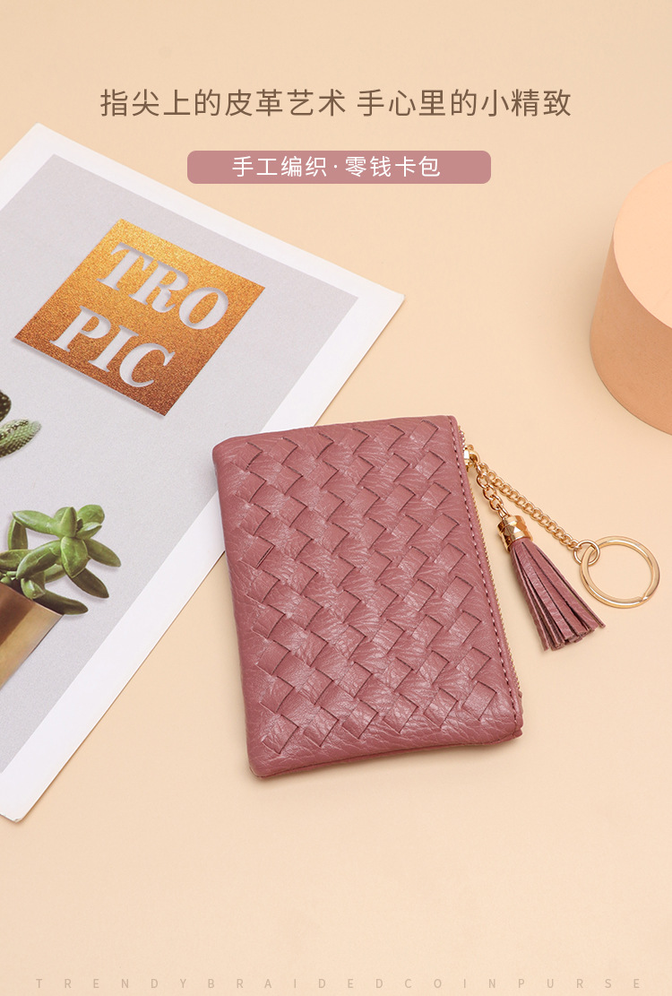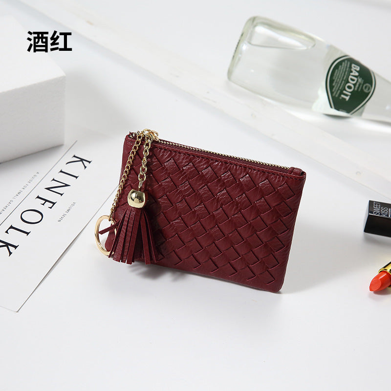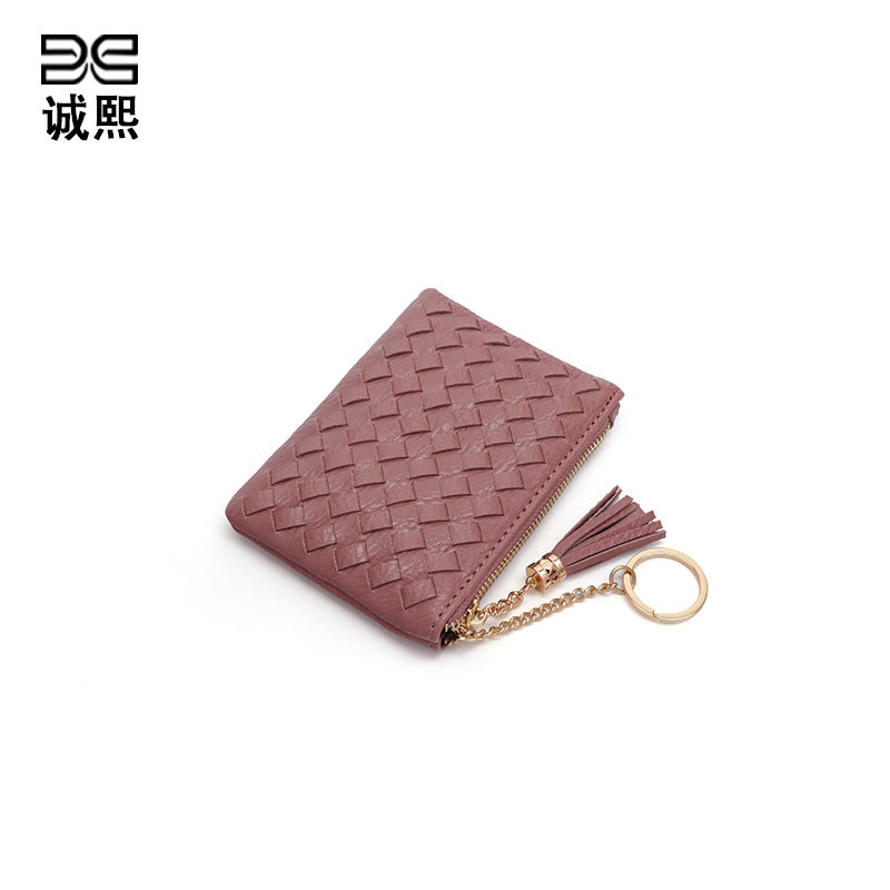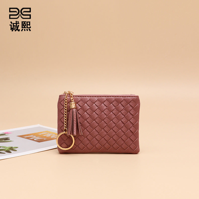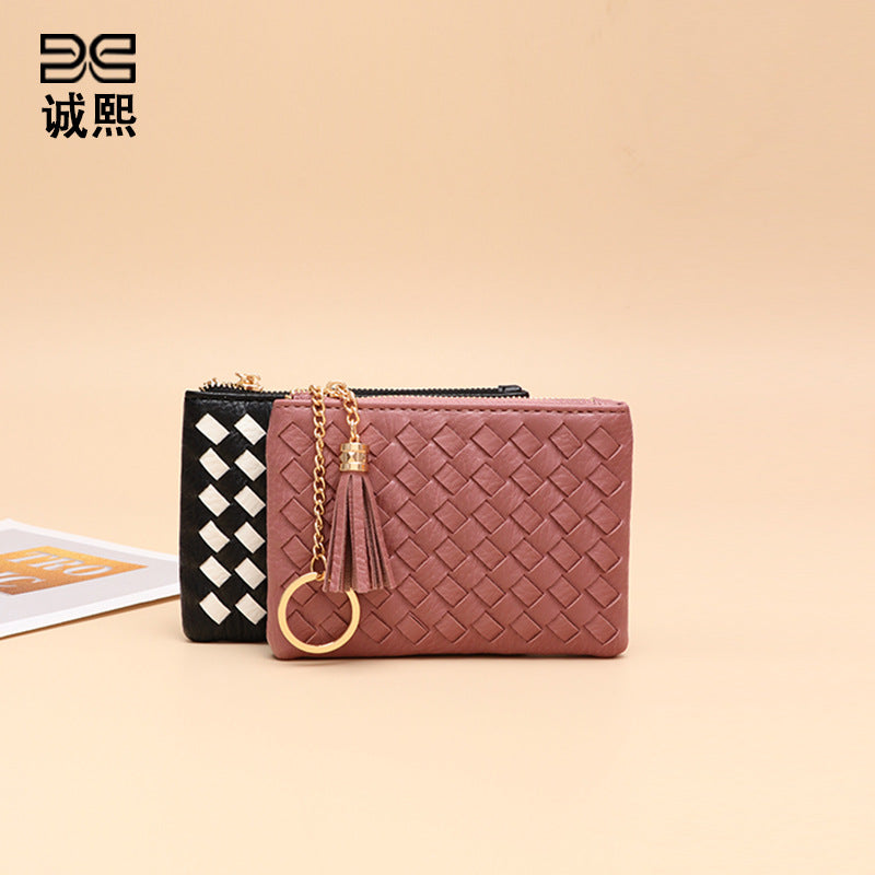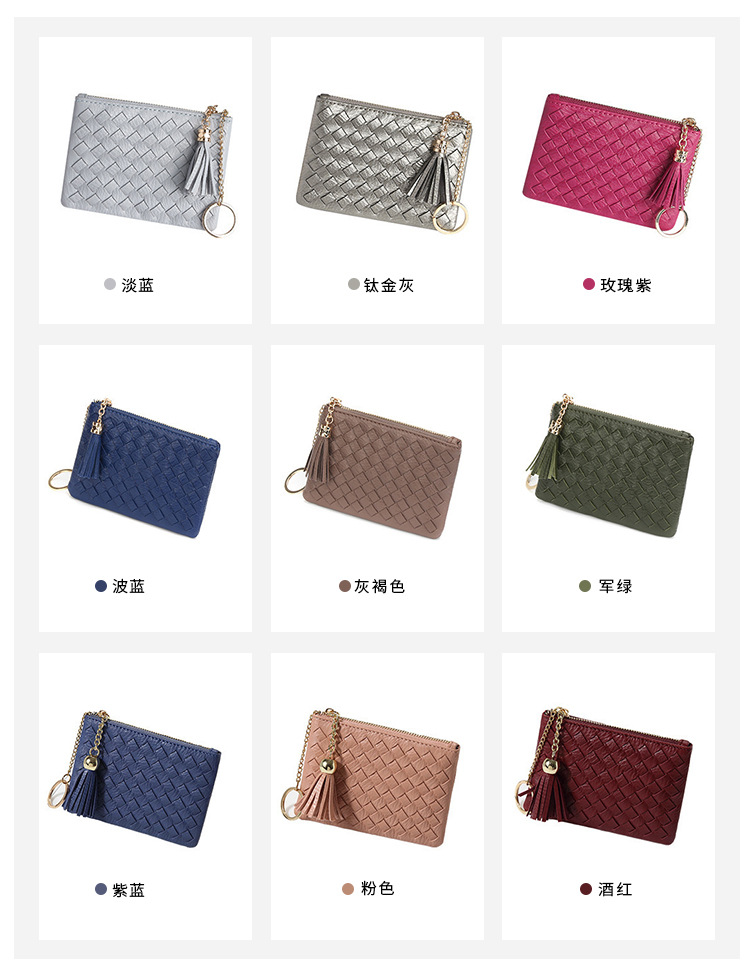 批发定制编织银币零钱包小巧轻便百搭卡包钥匙扣流苏拉链短款钱包