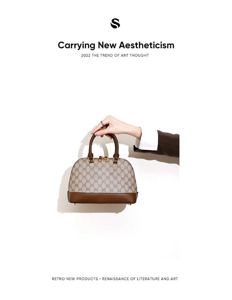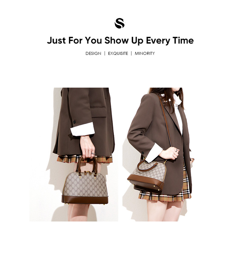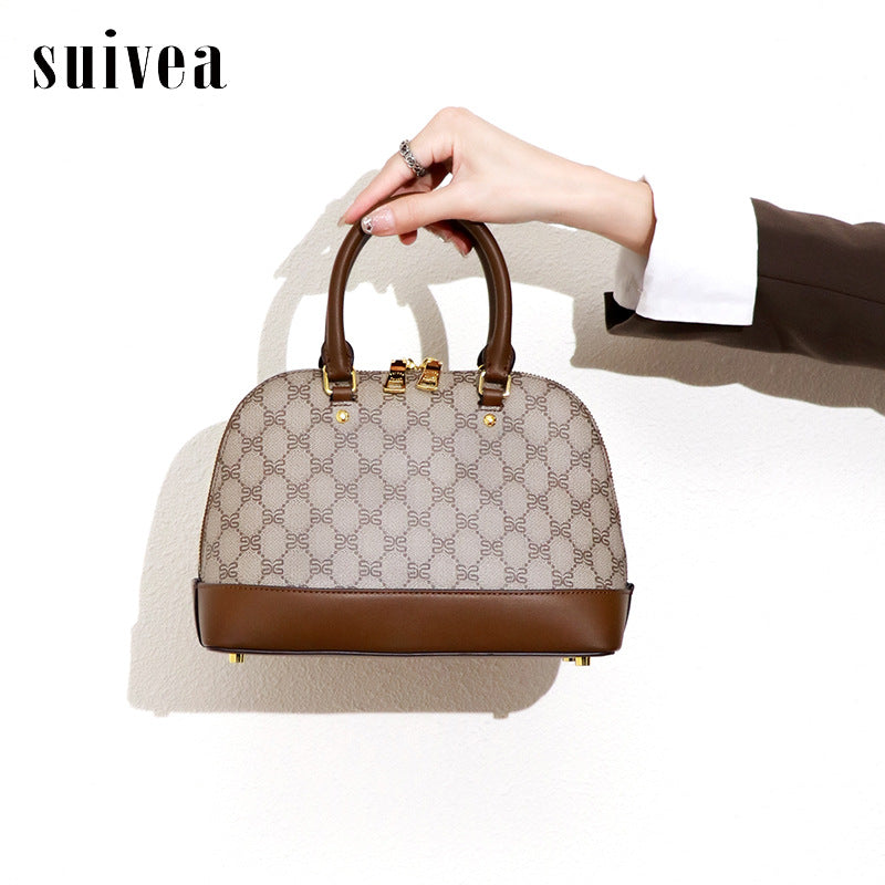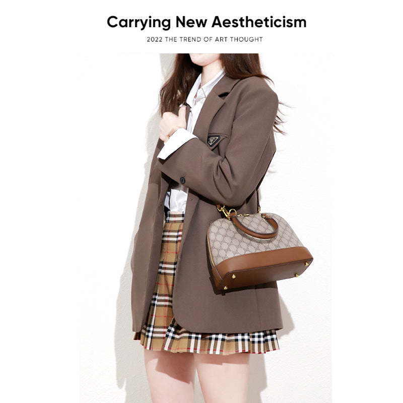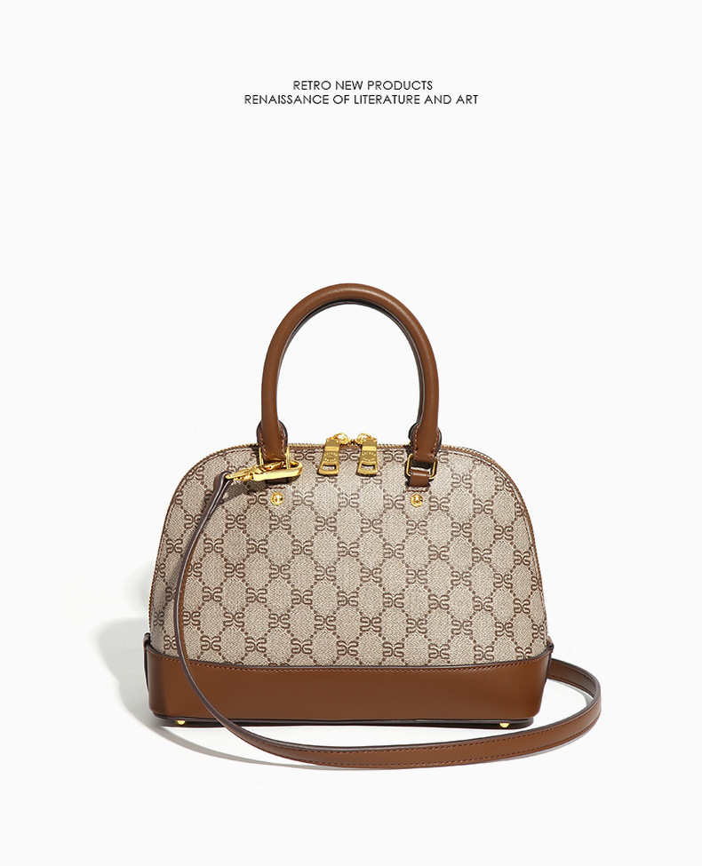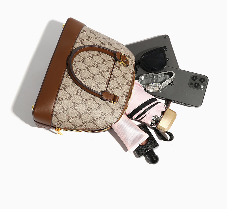 批发经典复古风老花贝壳包2025秋冬新款印花拉链手提单肩斜挎女包
