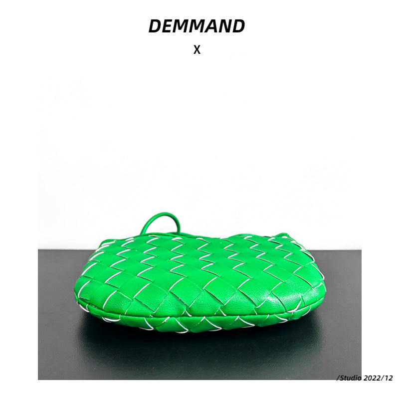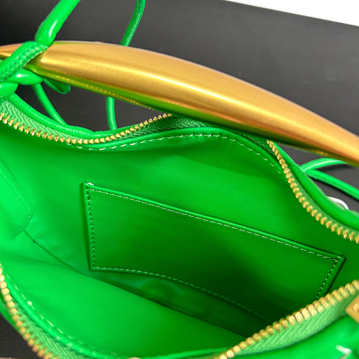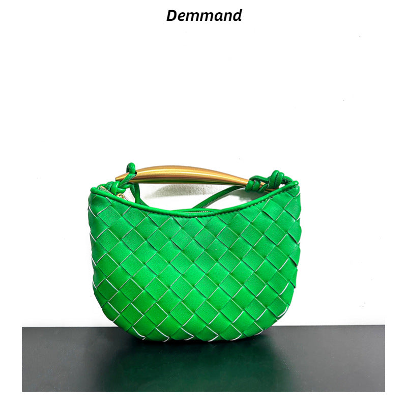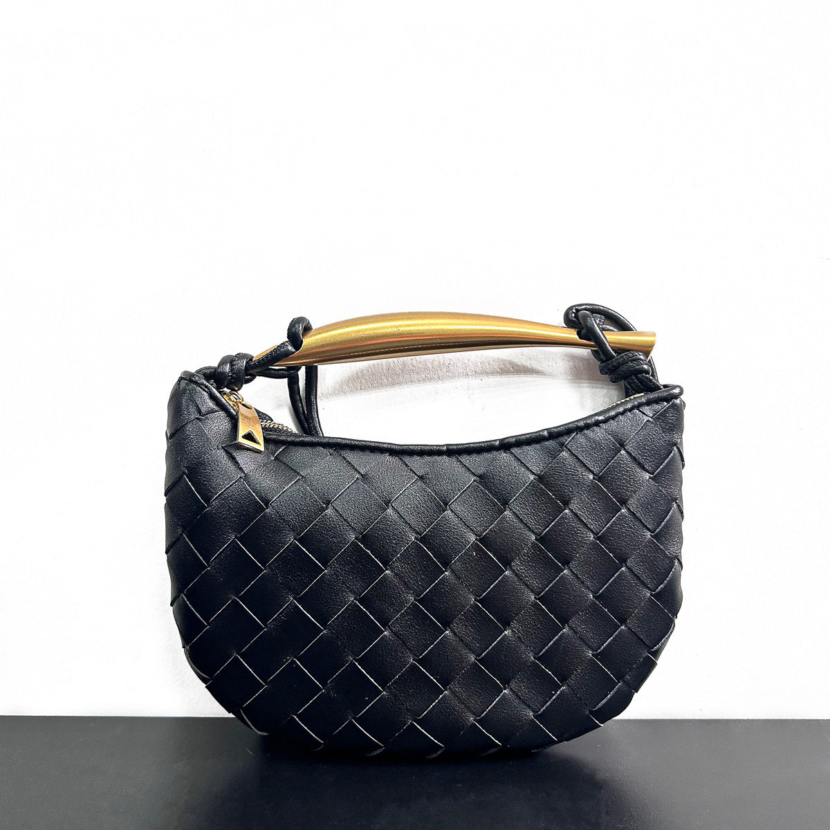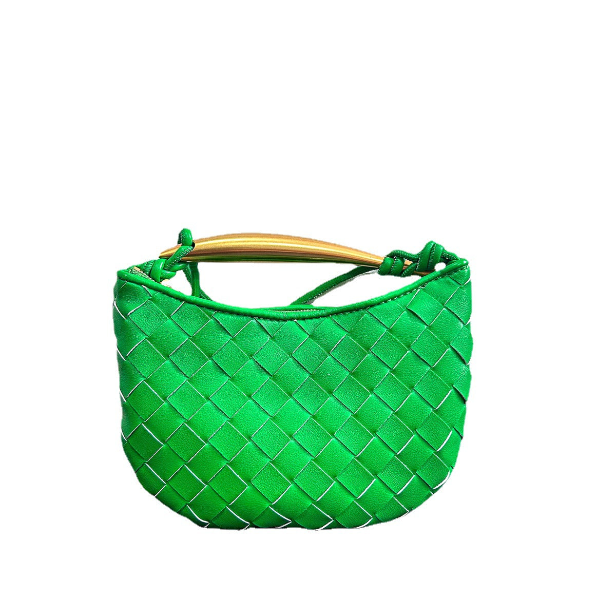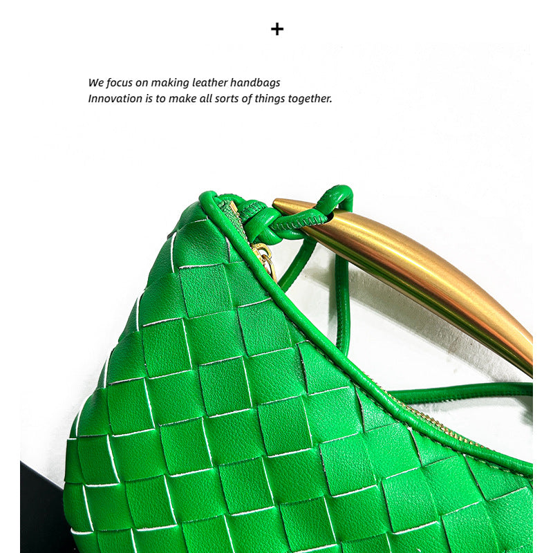 拉链款编织包包2023新款牛皮金属手柄月牙包单肩斜挎手提包时尚