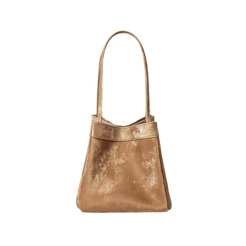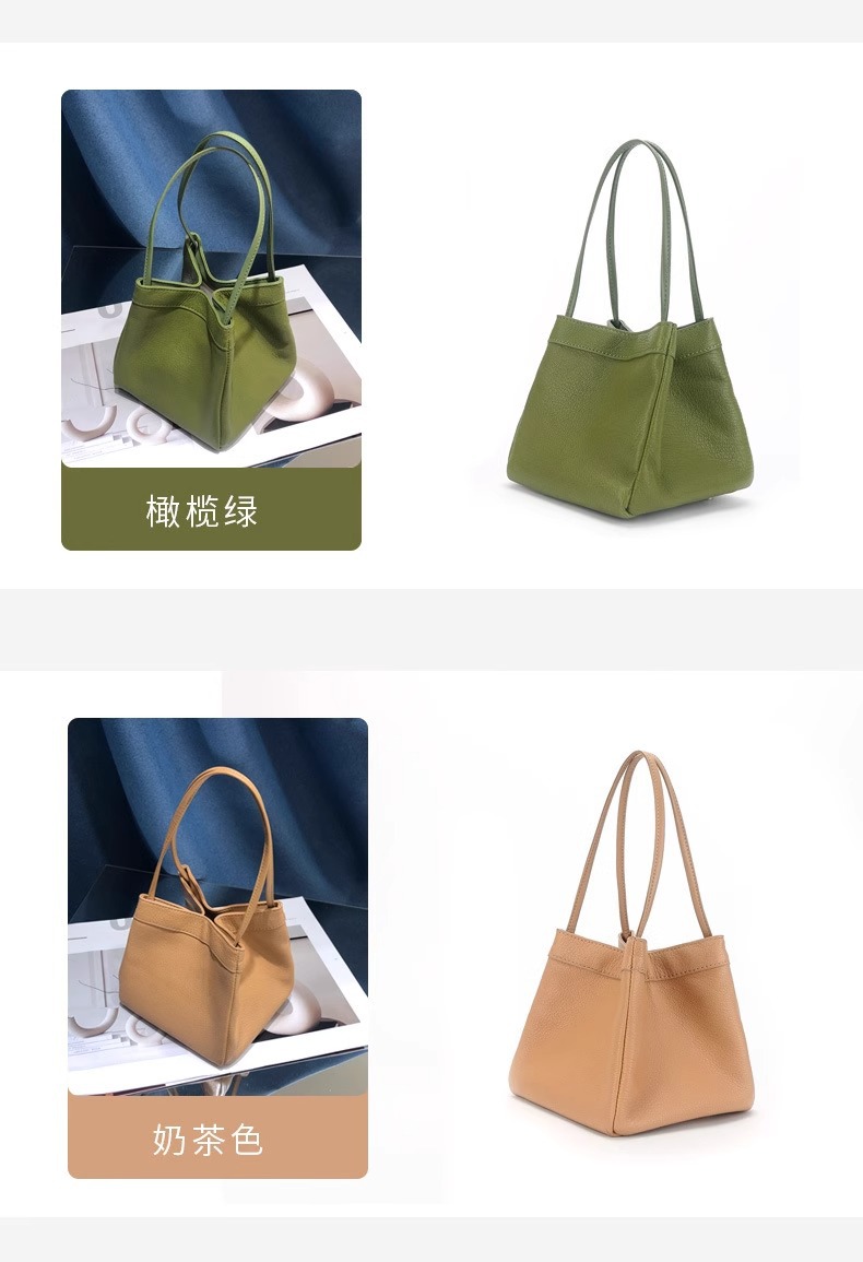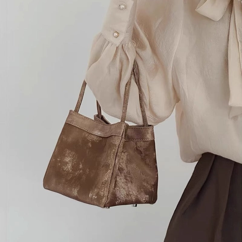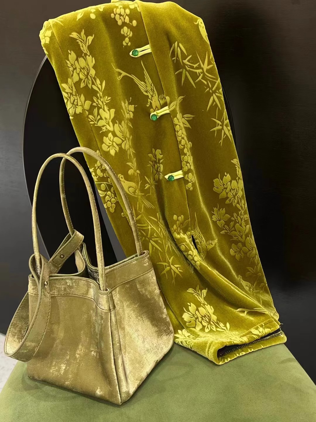 新中式国风晕染菜篮子包牛皮绸缎锦囊包手提包女单肩斜挎包水桶包