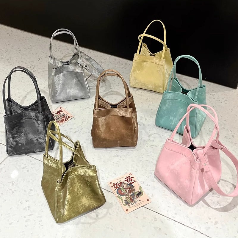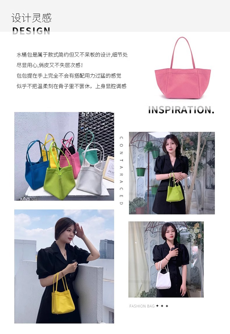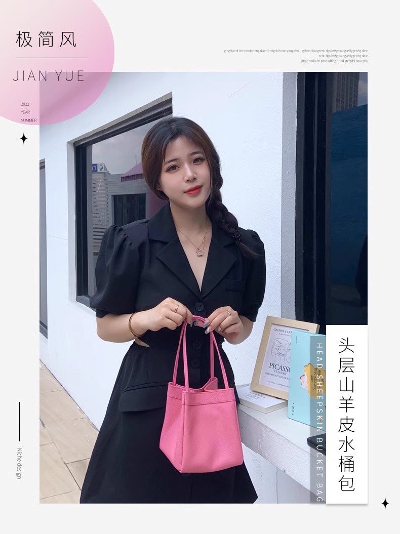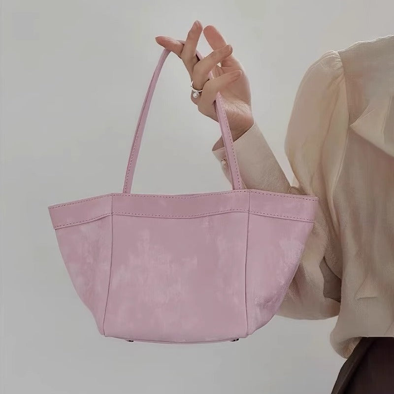 新中式国风晕染菜篮子包牛皮绸缎锦囊包手提包女单肩斜挎包水桶包