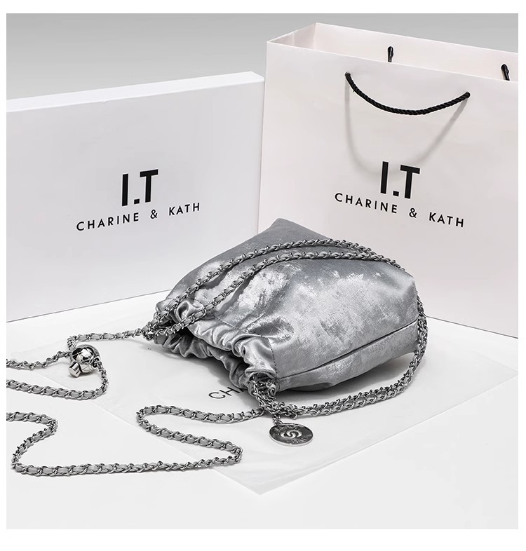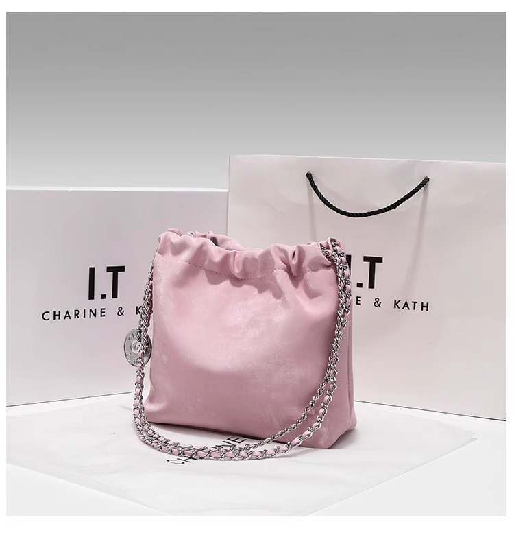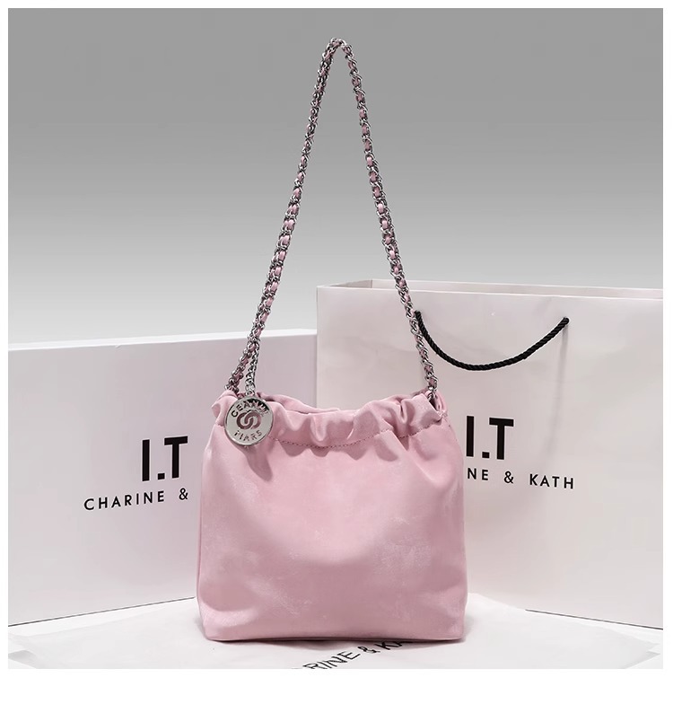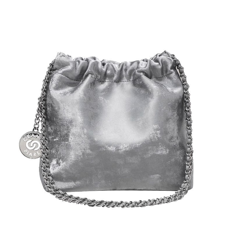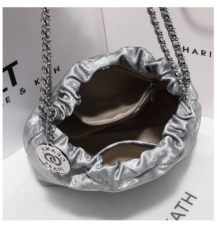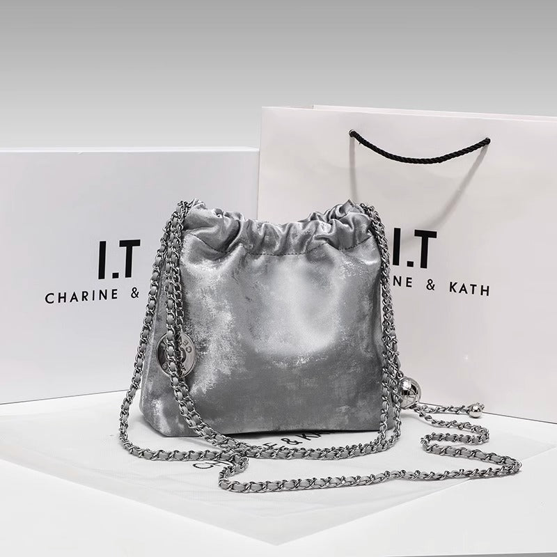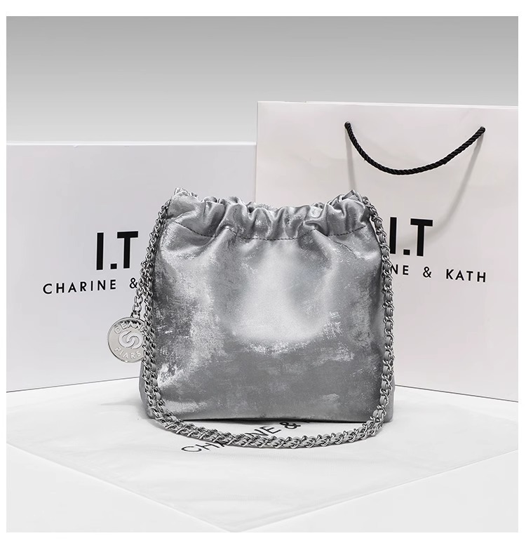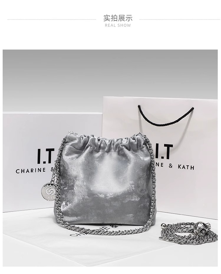 新中式绸牛皮垃圾袋链条包包女包2024新款大容量单肩包斜跨水桶包