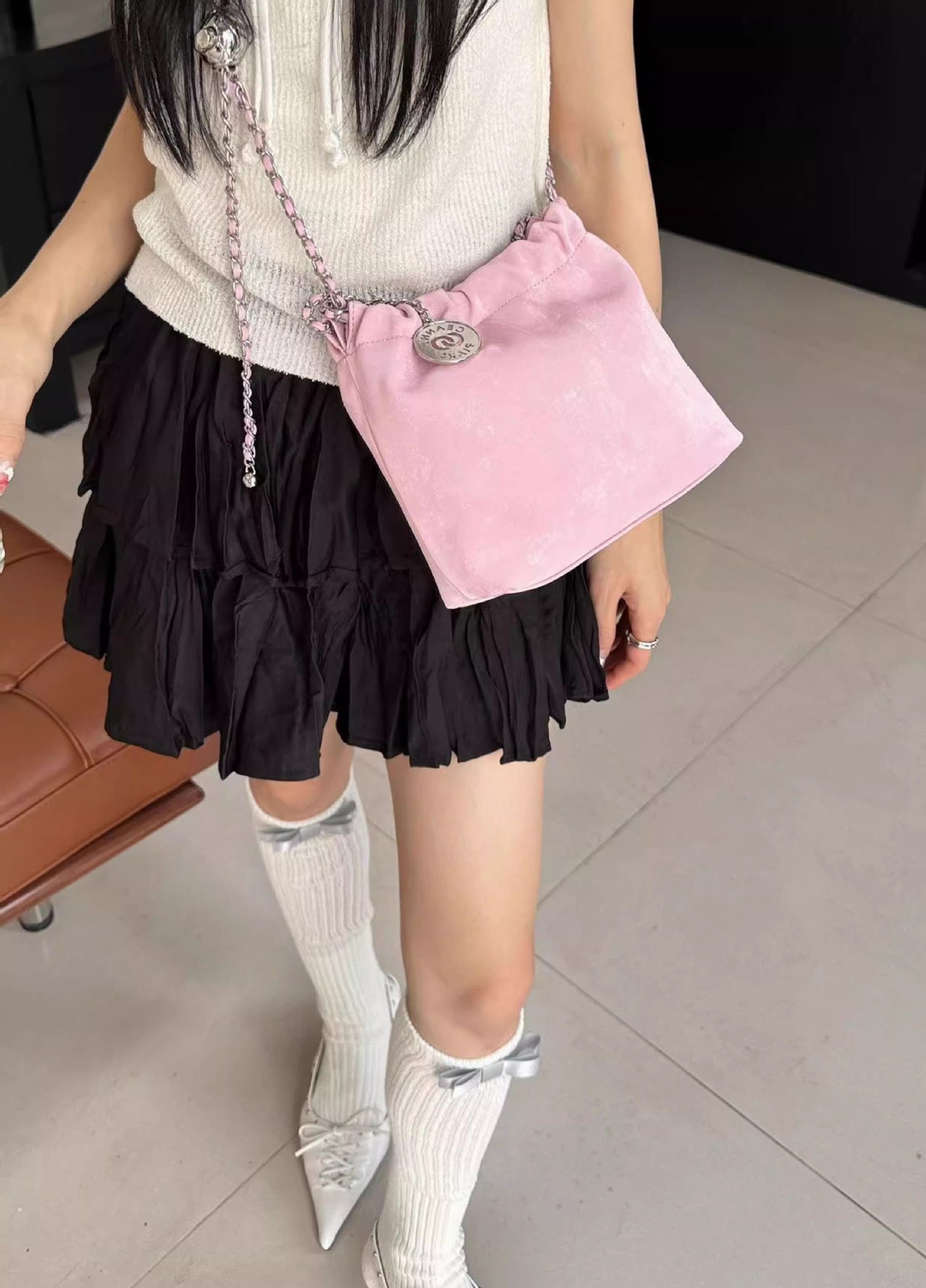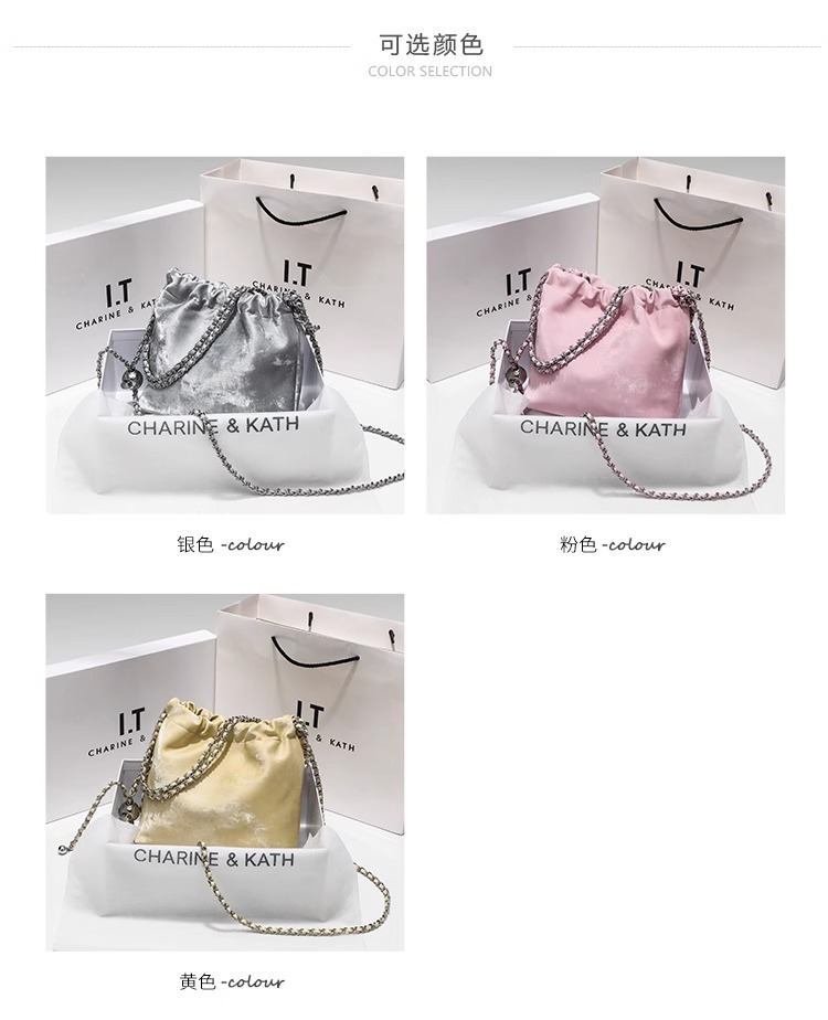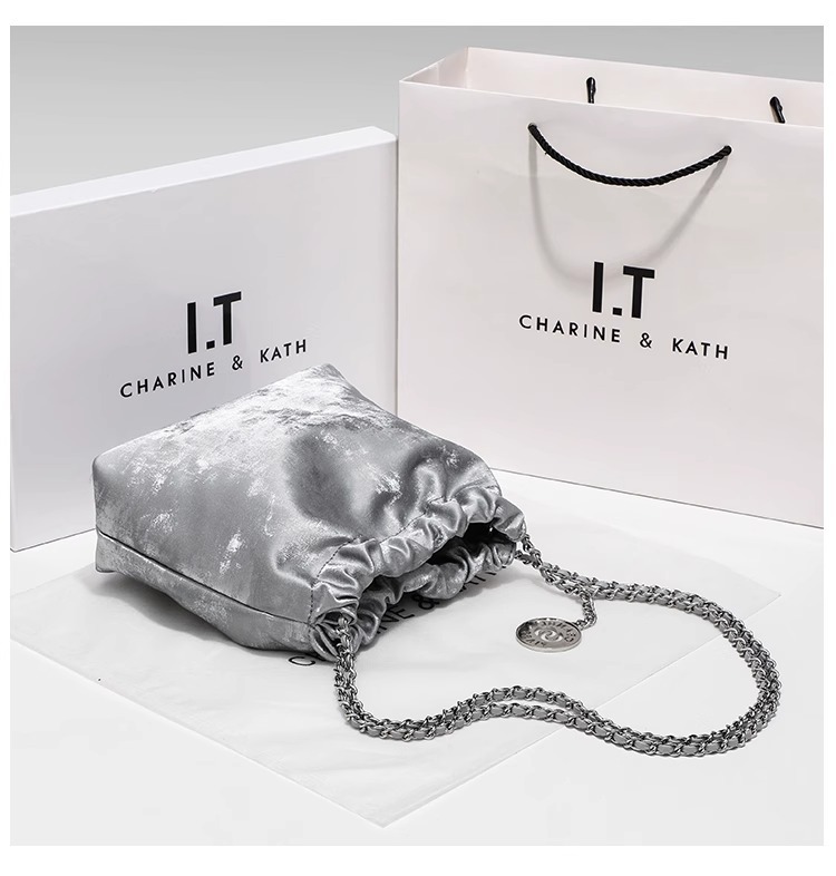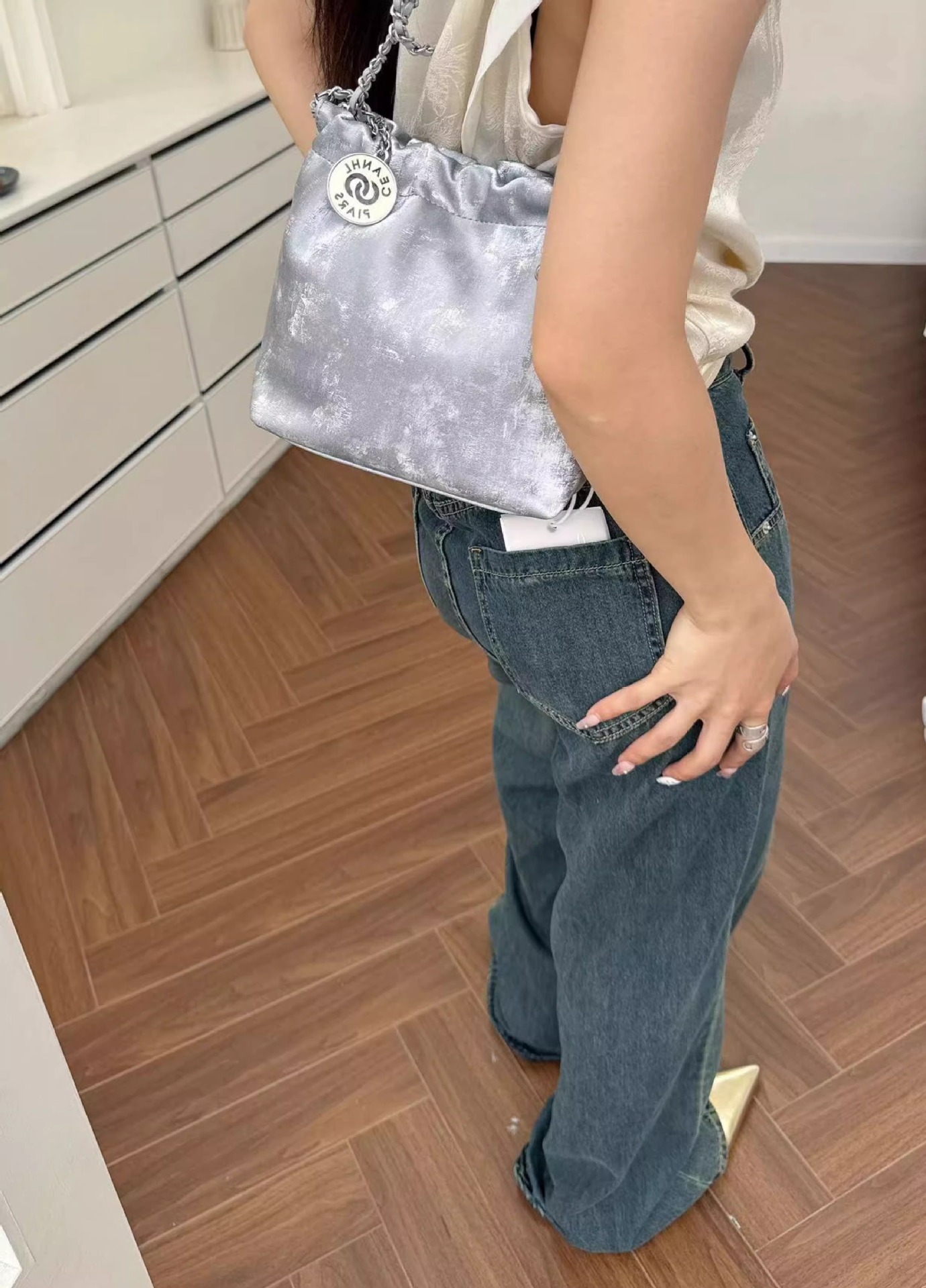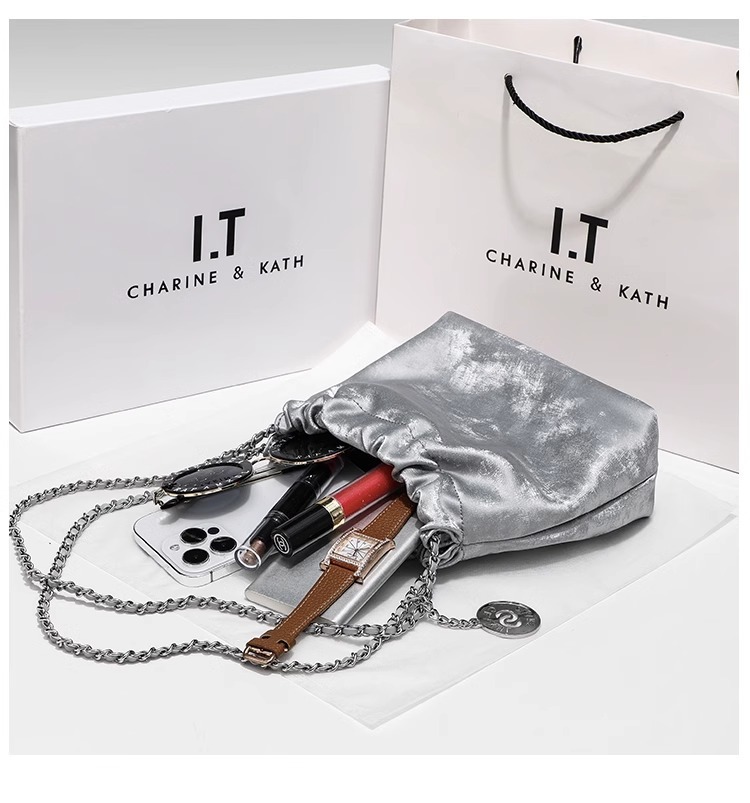 新中式绸牛皮垃圾袋链条包包女包2024新款大容量单肩包斜跨水桶包