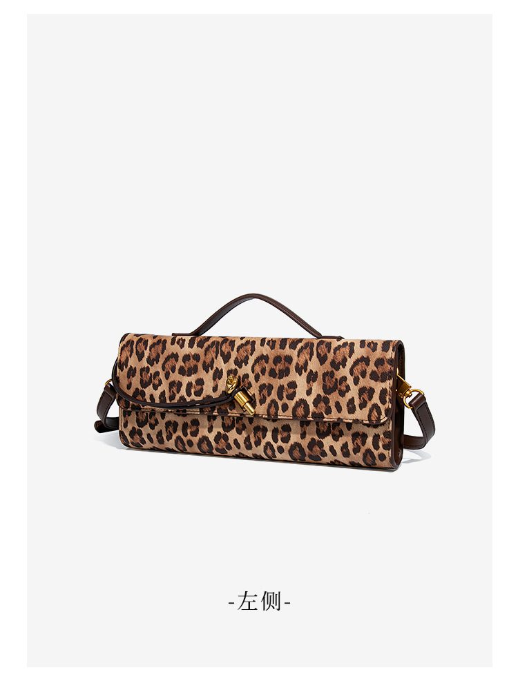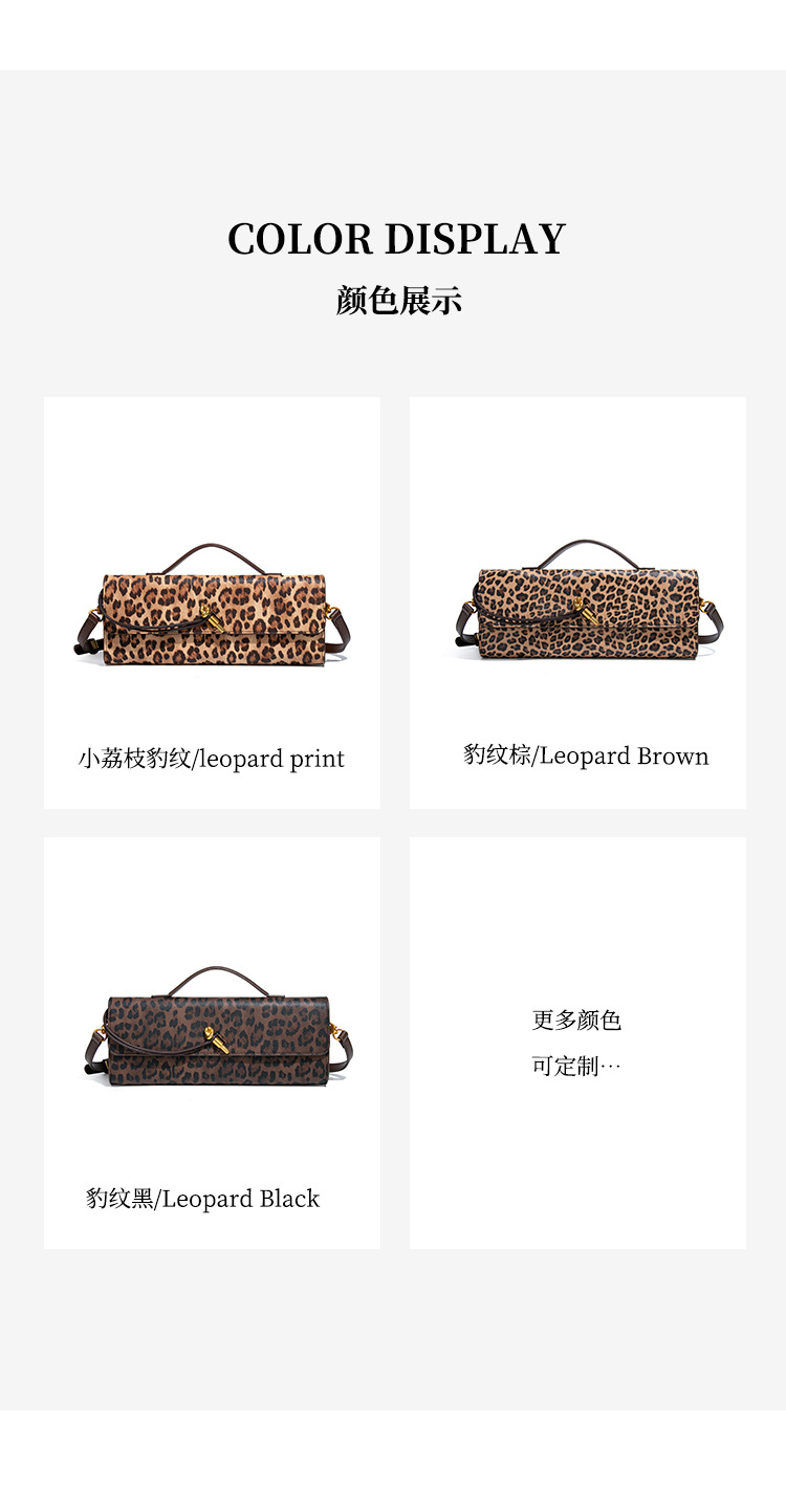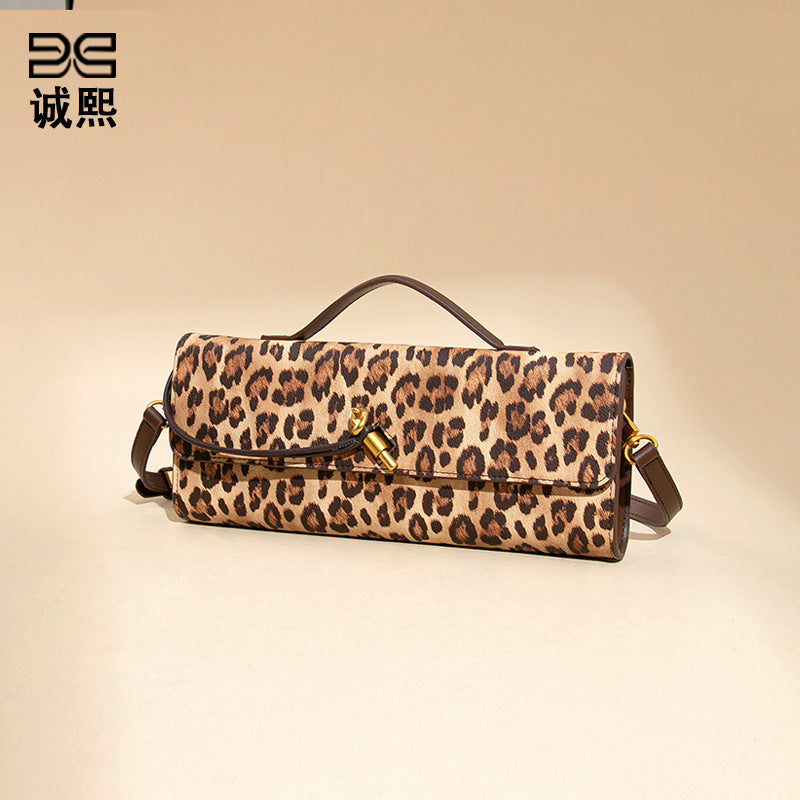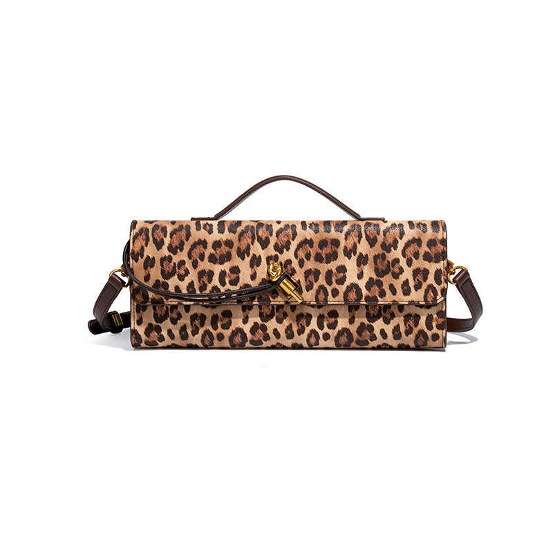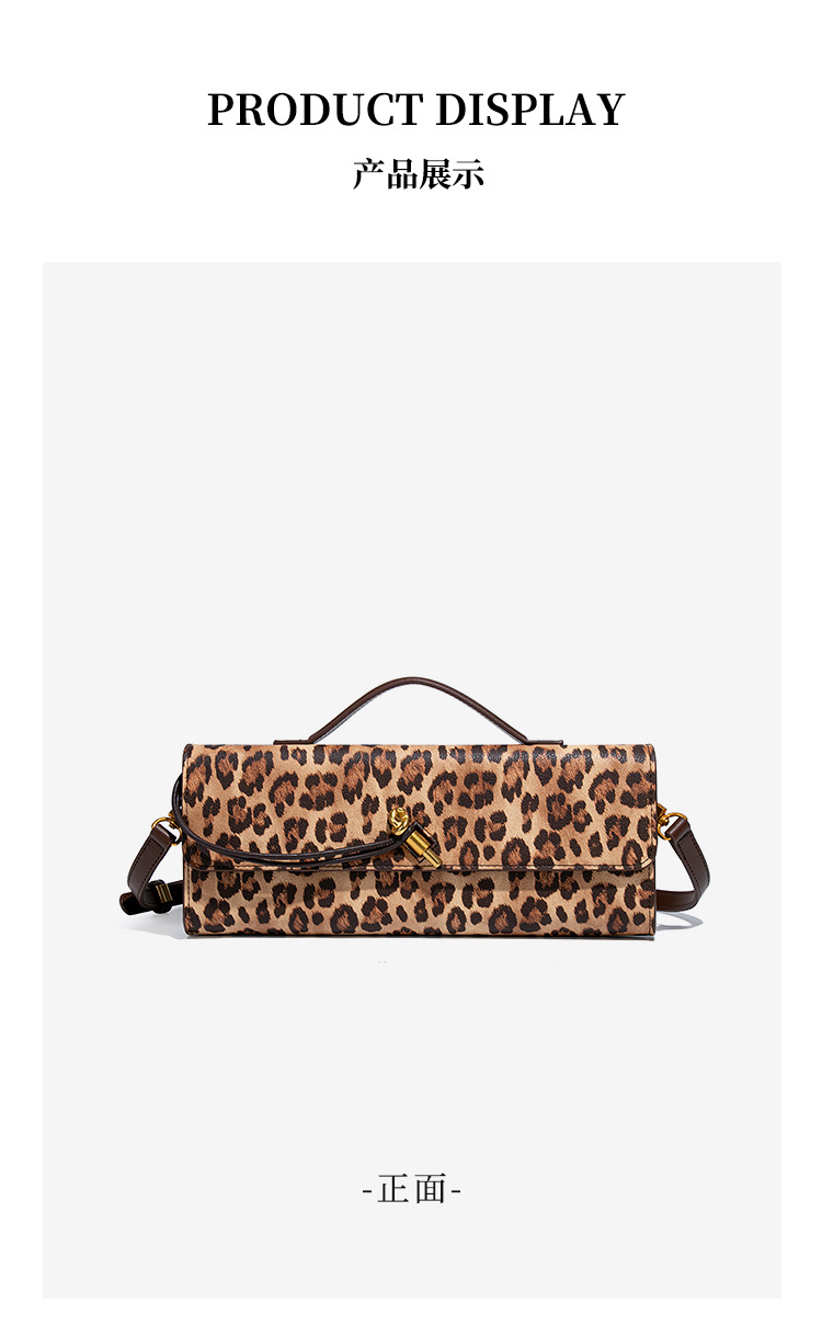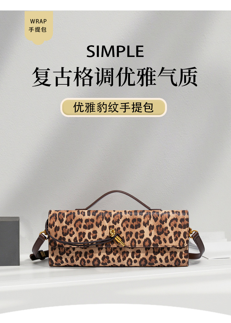 新品风琴横款手拿晚宴包复古豹纹潮流手拎女包单肩斜挎中古法棍包