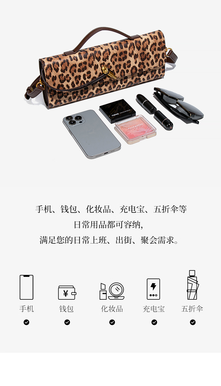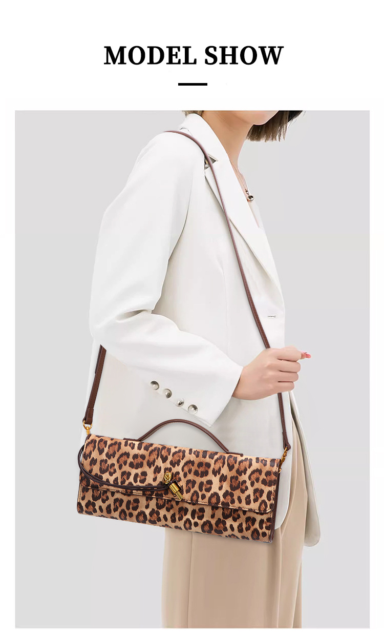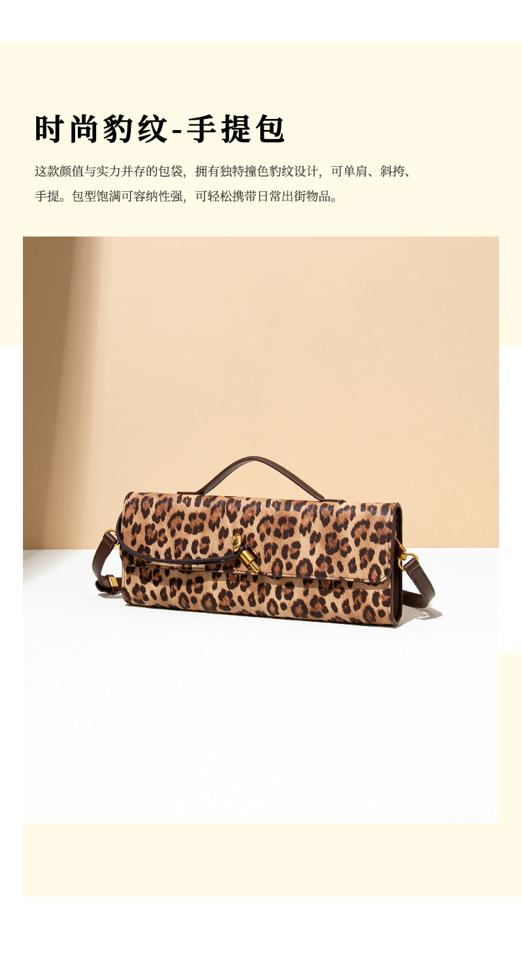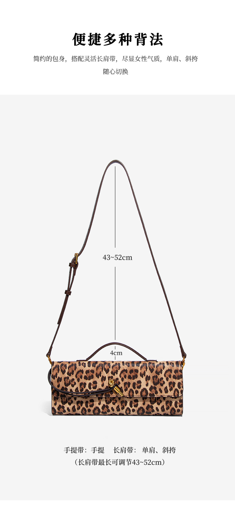 新品风琴横款手拿晚宴包复古豹纹潮流手拎女包单肩斜挎中古法棍包