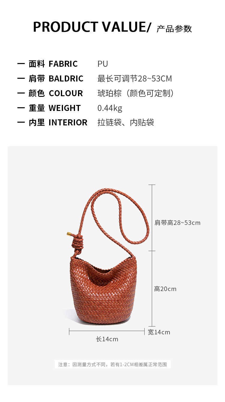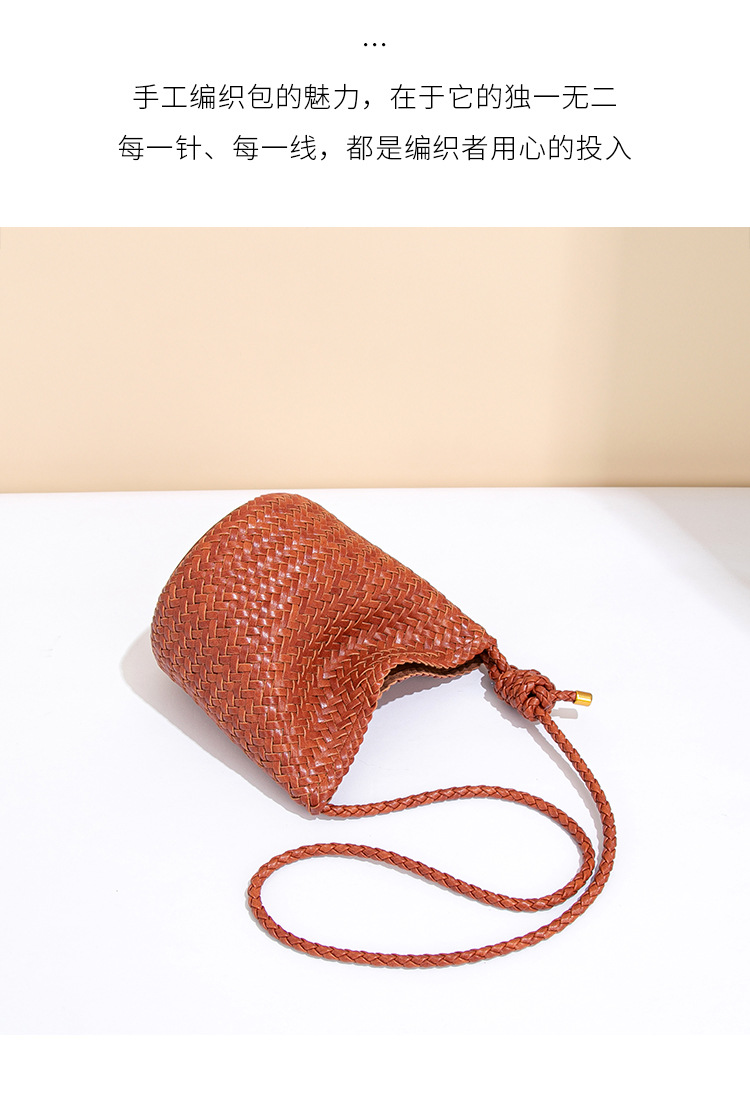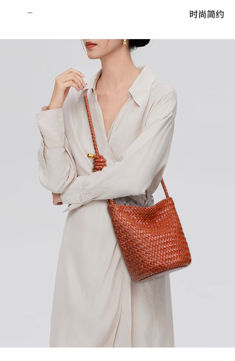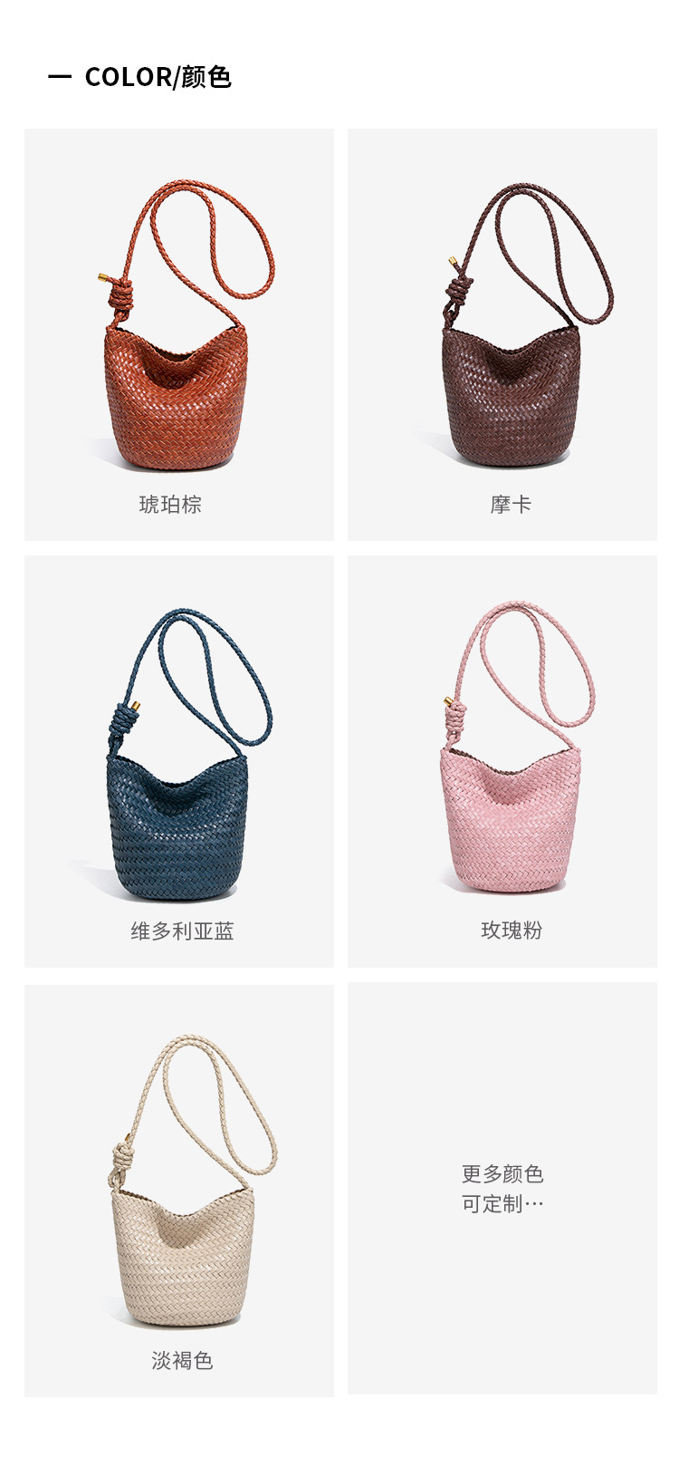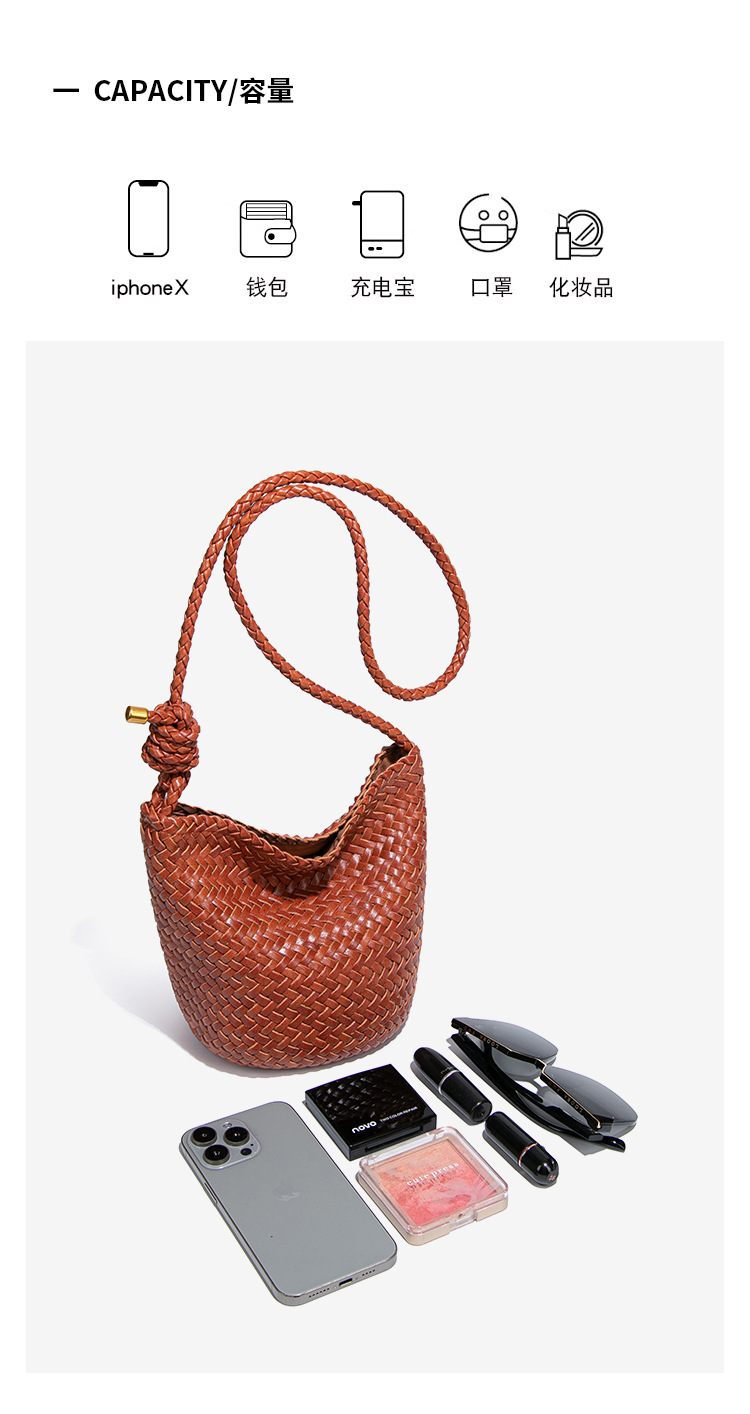 新款复古手工编织包包女时尚潮流单肩斜跨包小众设计高级感水桶包