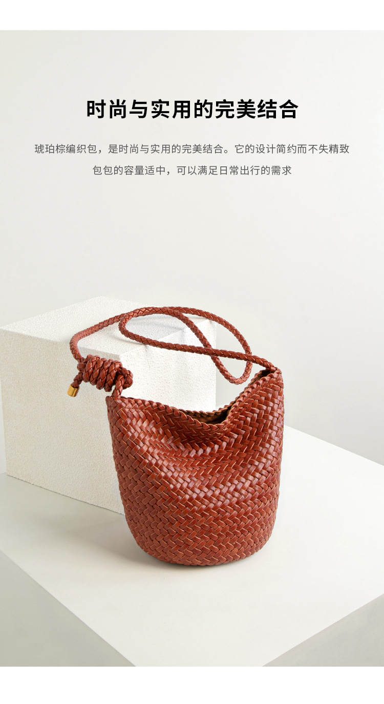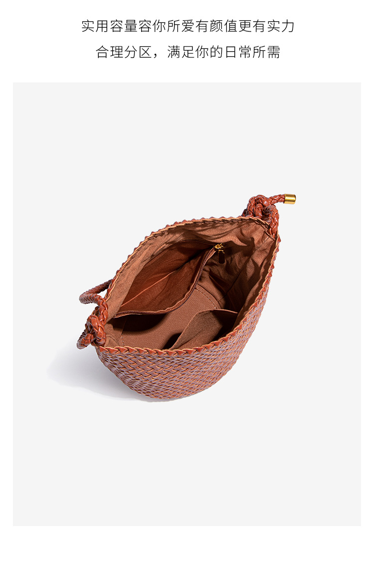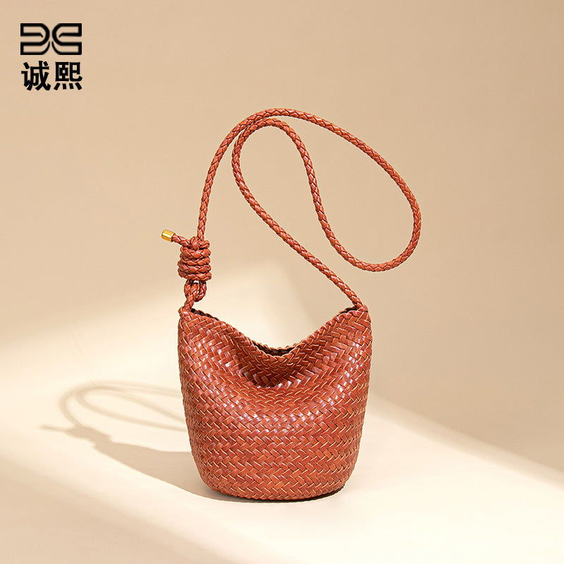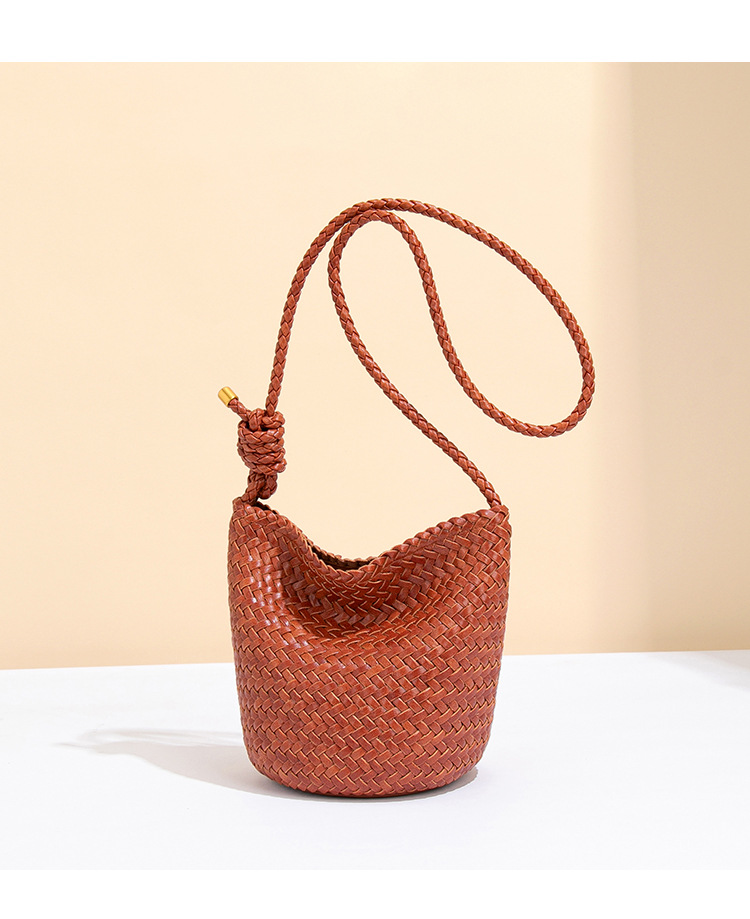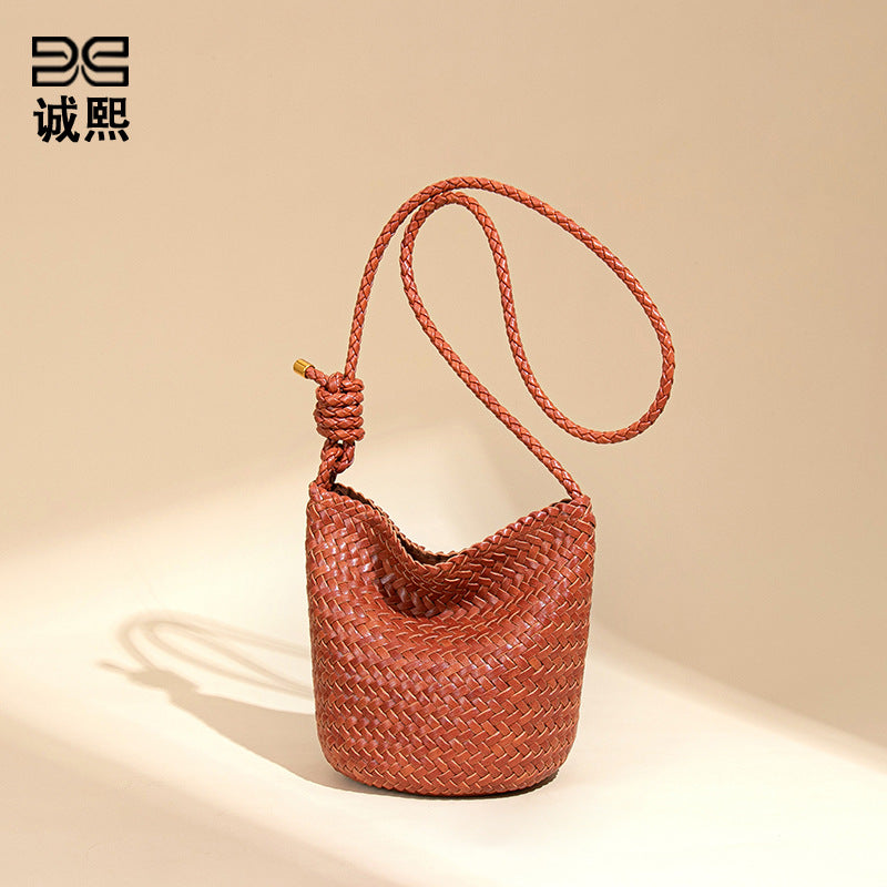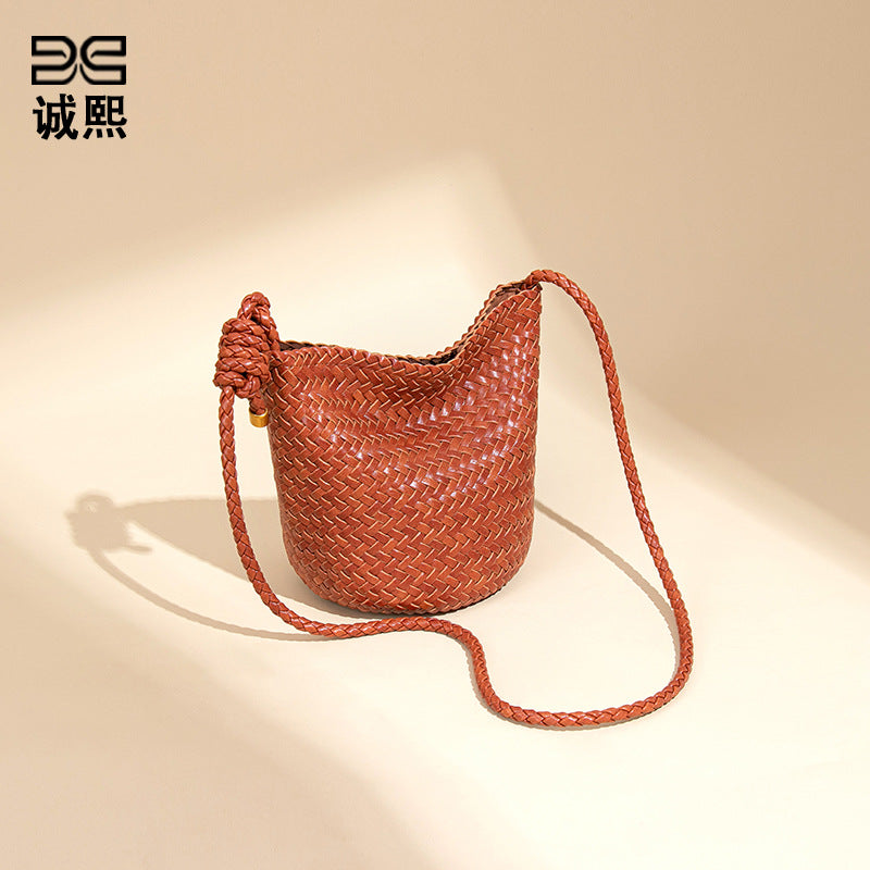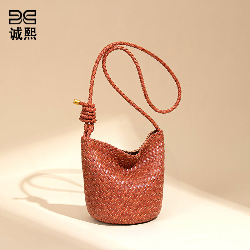 新款复古手工编织包包女时尚潮流单肩斜跨包小众设计高级感水桶包
