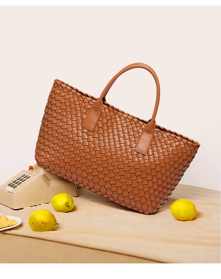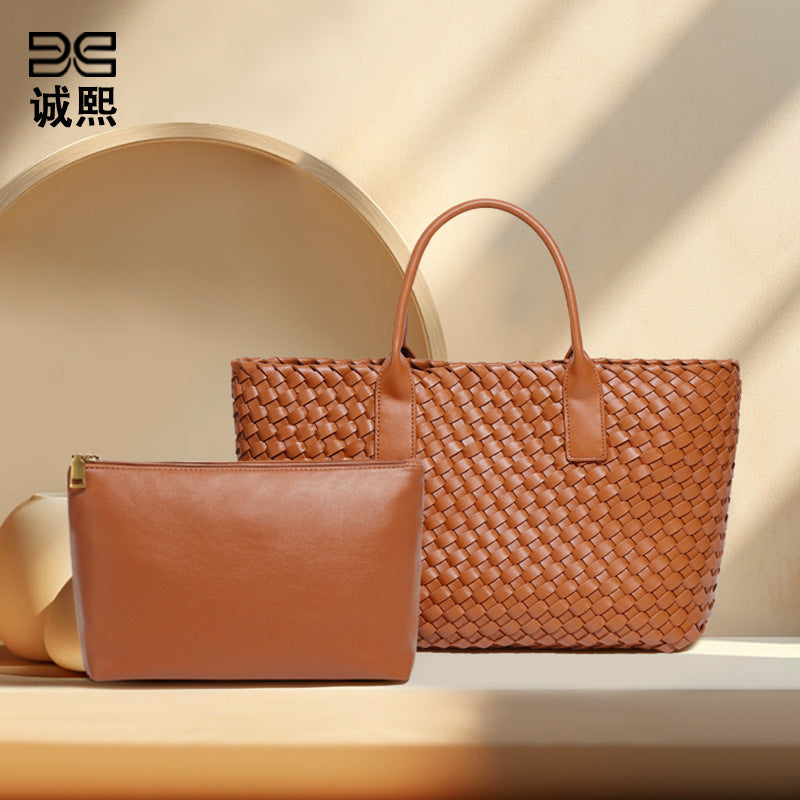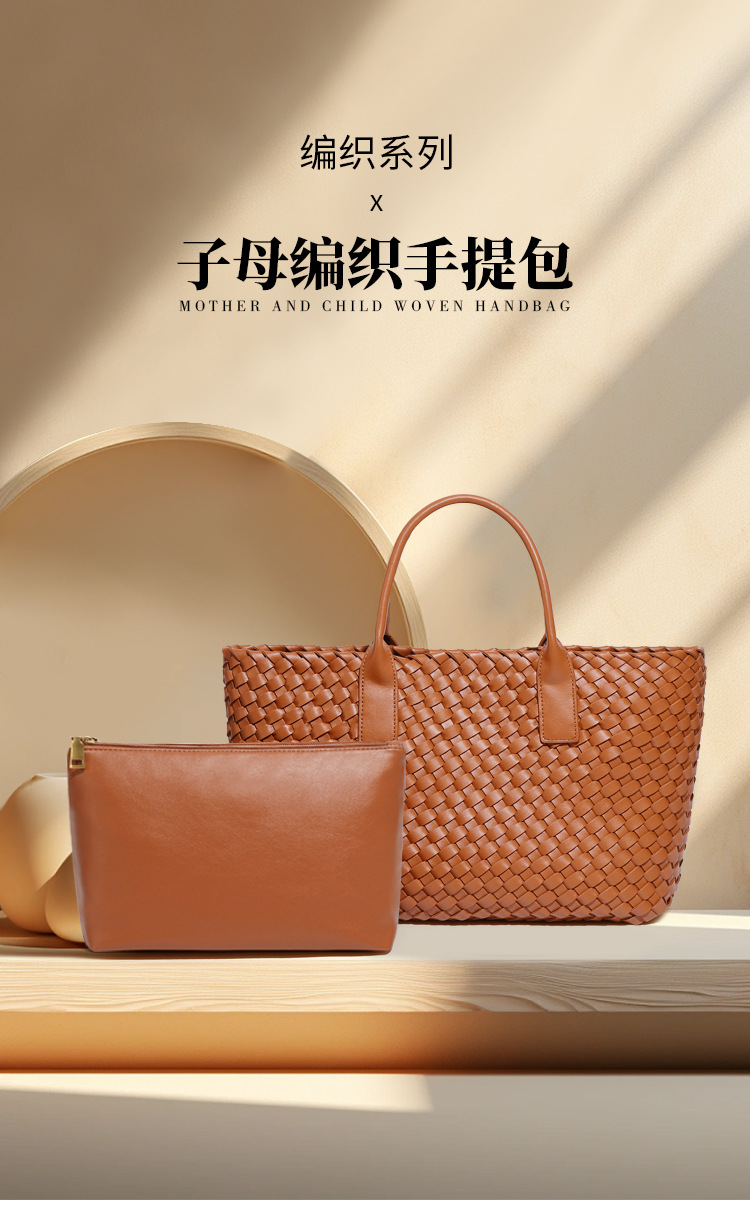 新款女士手提包高级感大容量百搭子母包通勤百搭简约手工编织包包