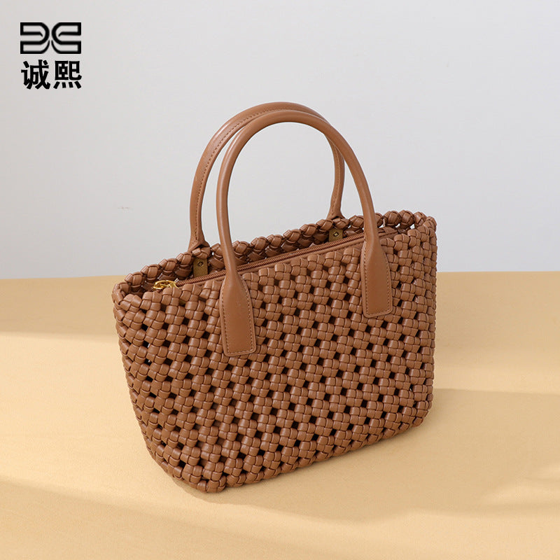 新款小众手提菜篮子女包个性风车结手工编织包复古休闲百搭子母包