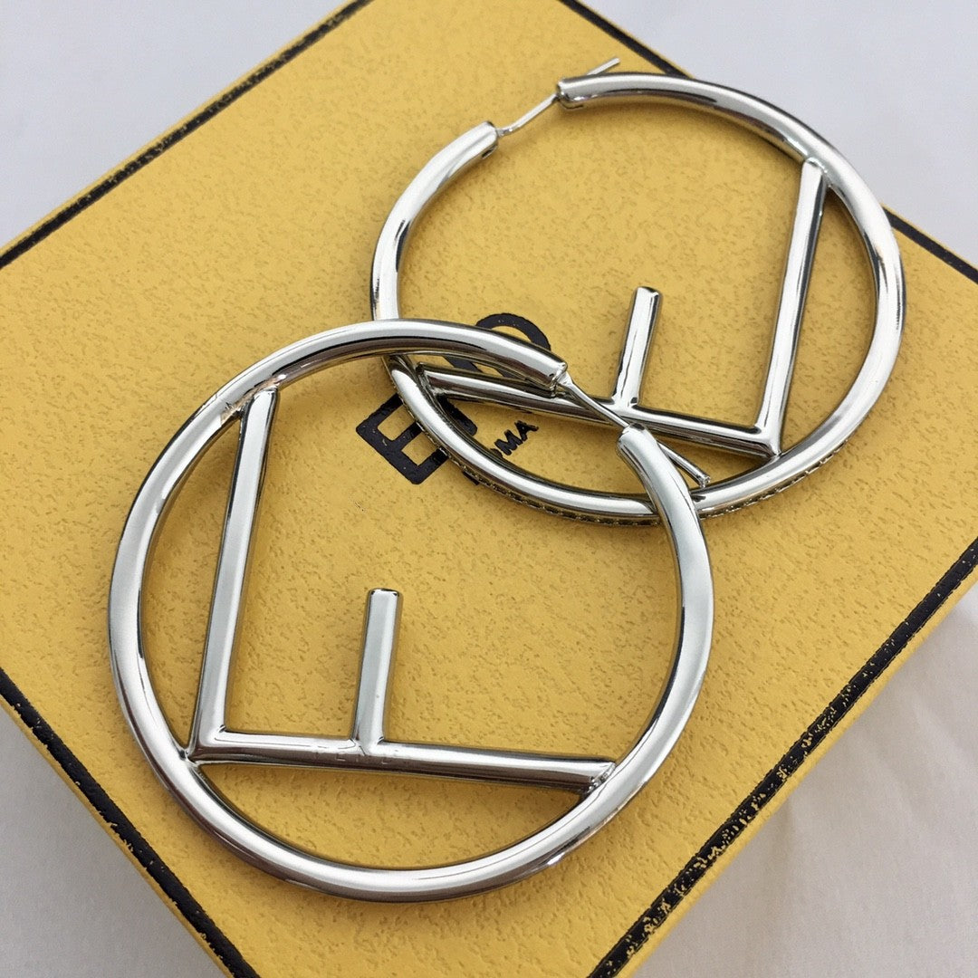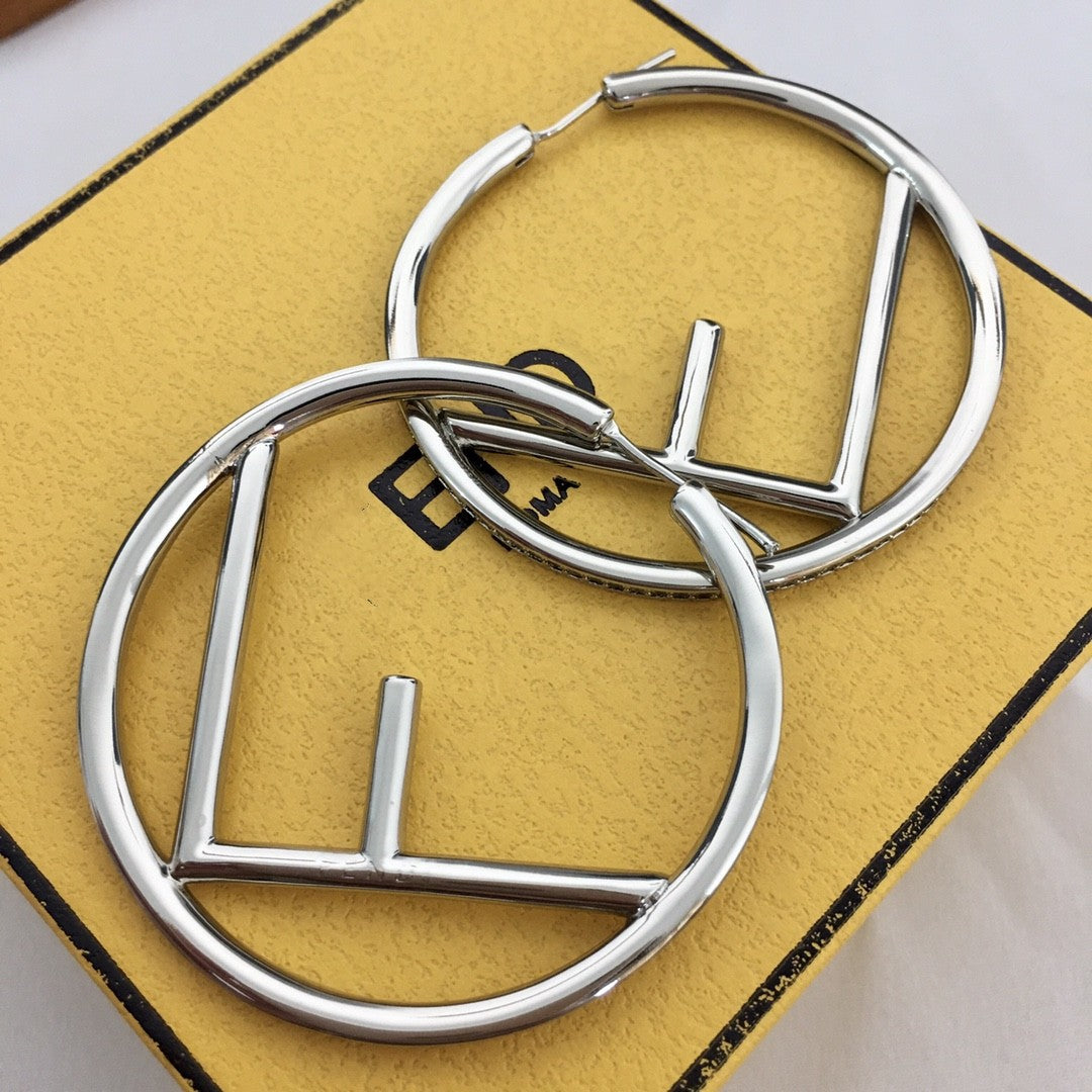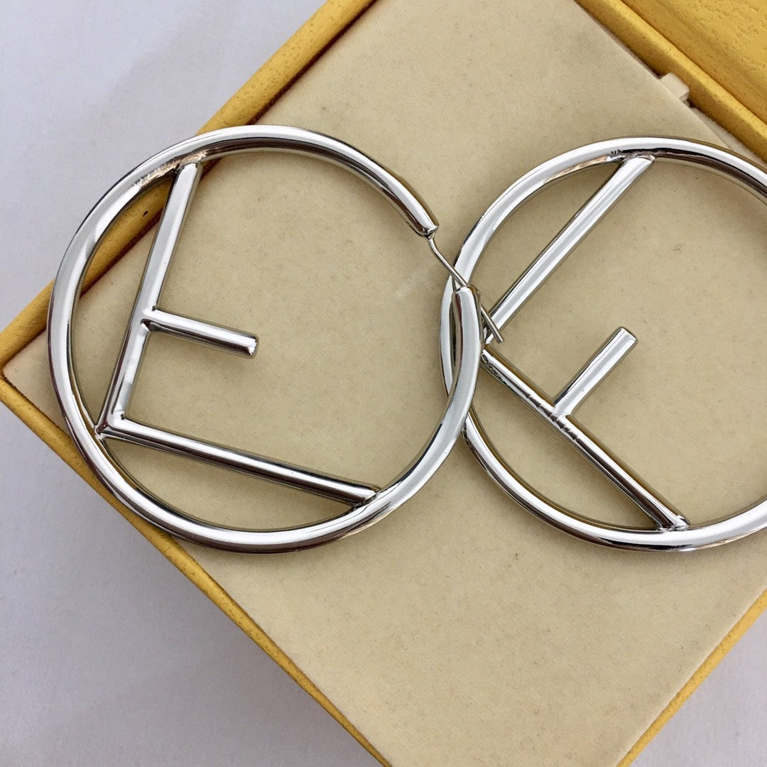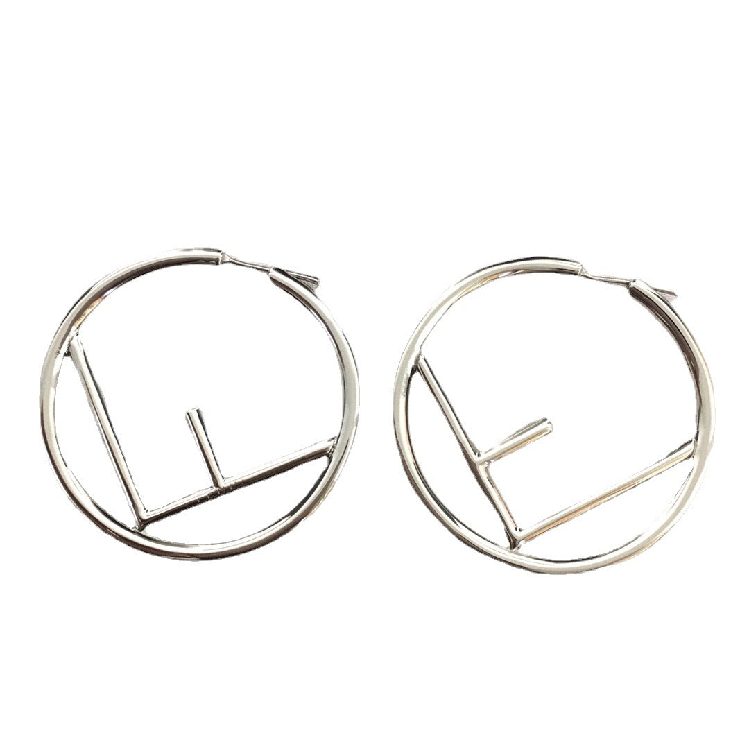 新款小众设计F字母圆圈耳环女高级感个性气质欧美风镶钻耳圈批发