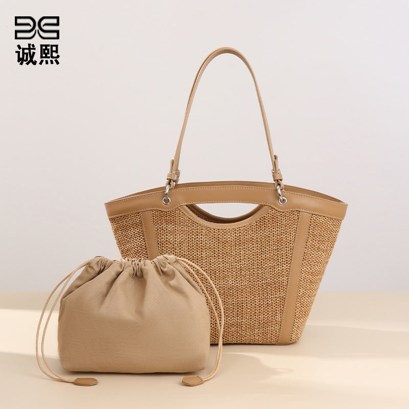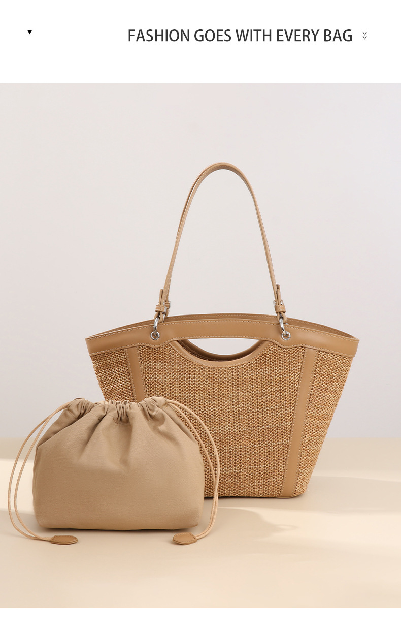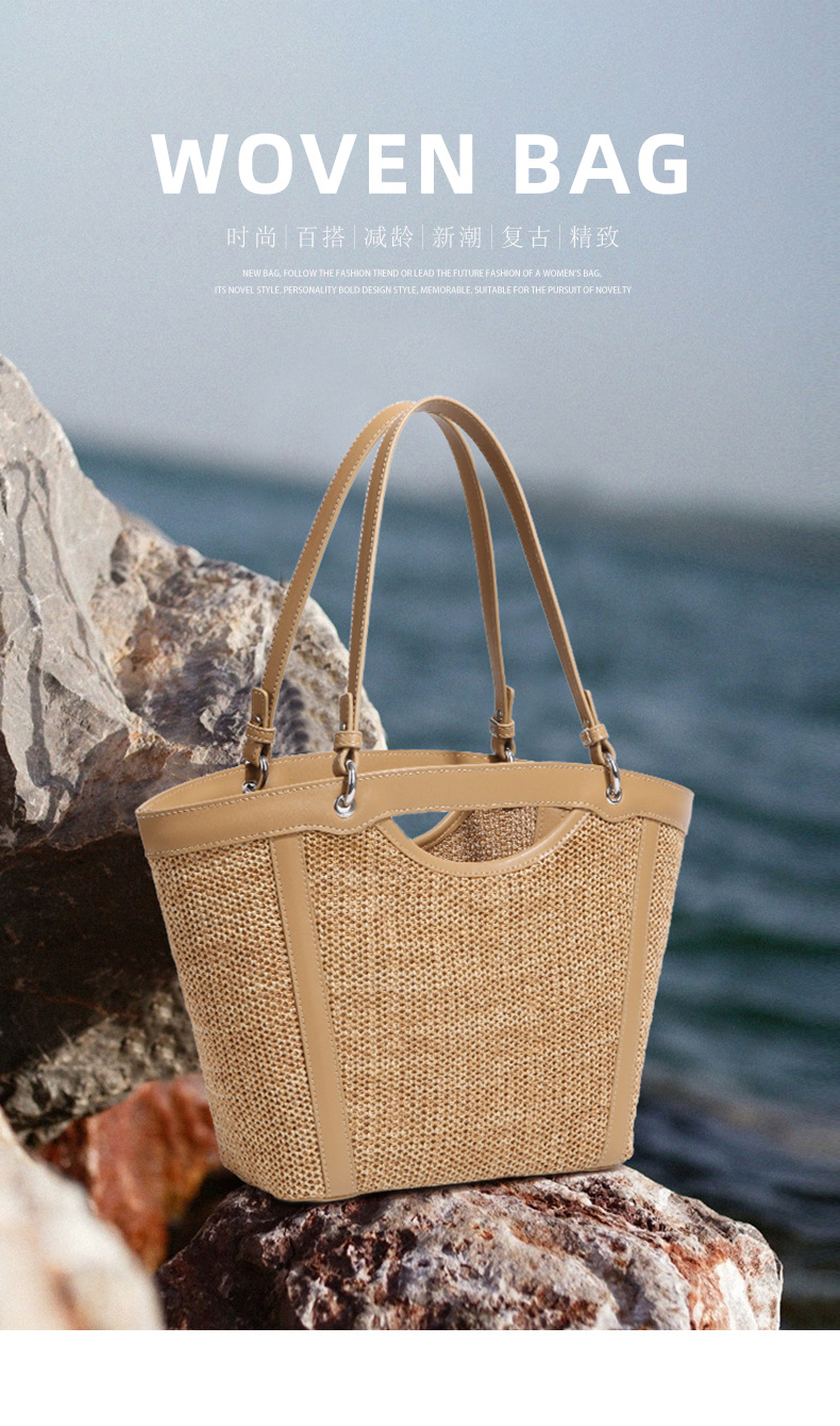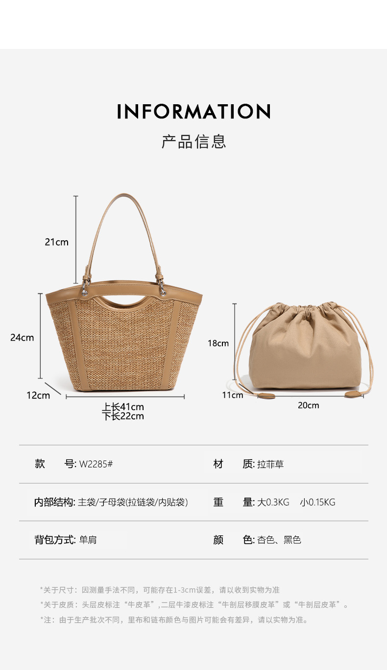 新款度假沙滩子母包草编菜篮子单肩女包时尚腋下包手拎编织托特包
