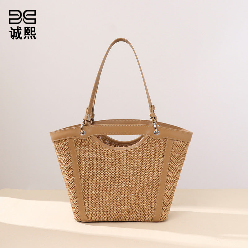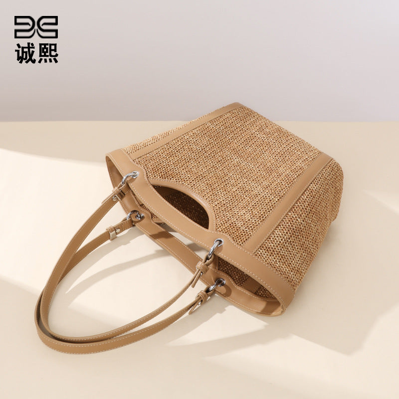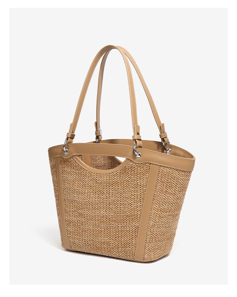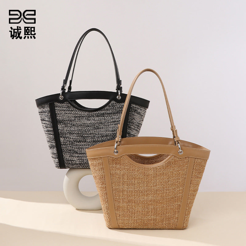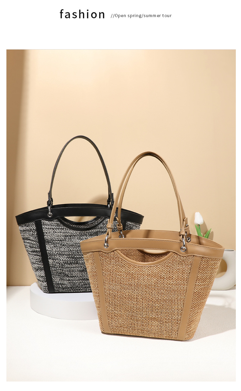 新款度假沙滩子母包草编菜篮子单肩女包时尚腋下包手拎编织托特包