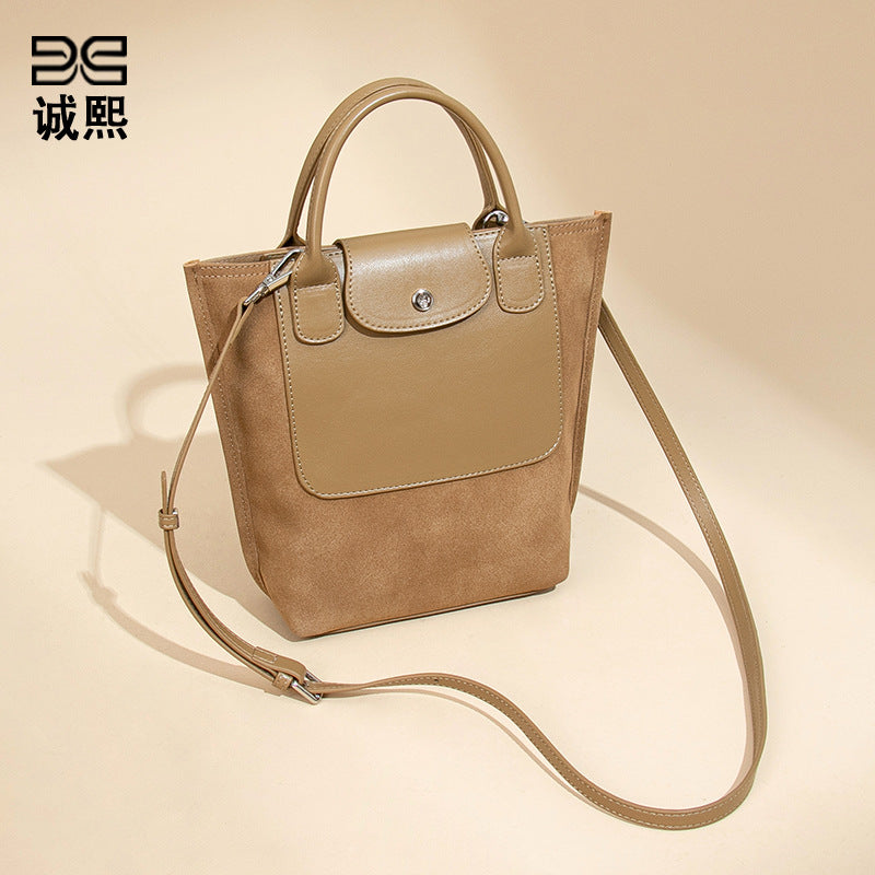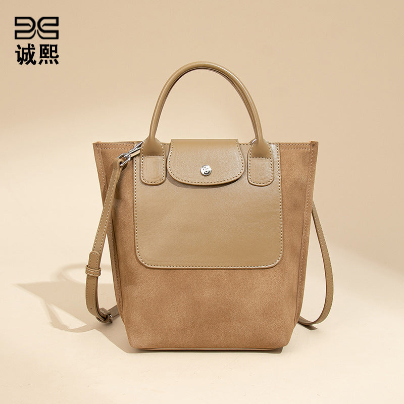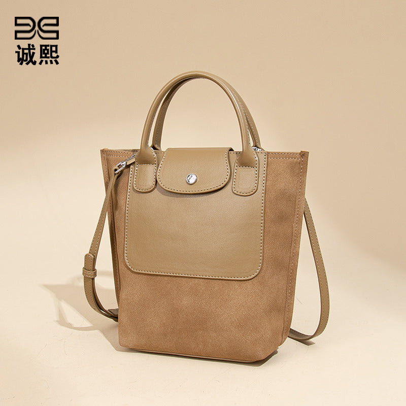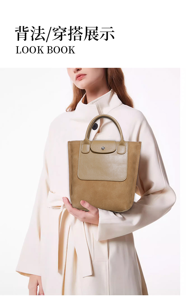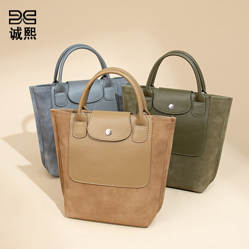 新款拼接磨砂麂皮绒手提女包时尚单肩斜跨包休闲百搭大容量托特包