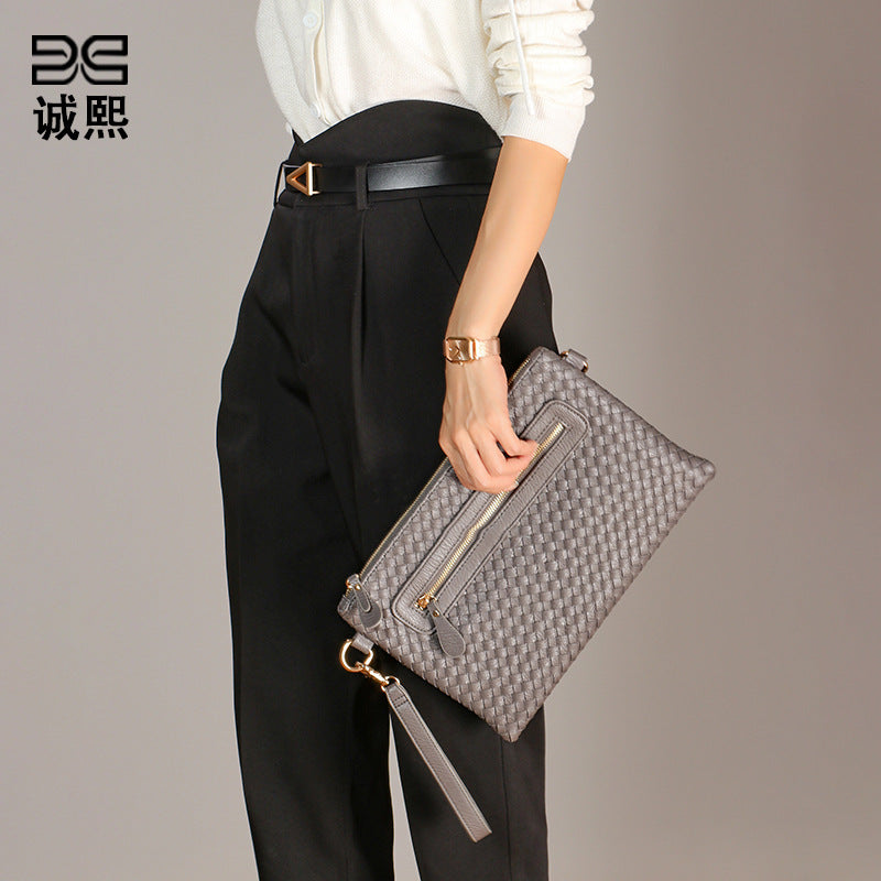 新款欧美时尚手拿编织女包大容量pu软皮信封包单肩斜跨包直播货源