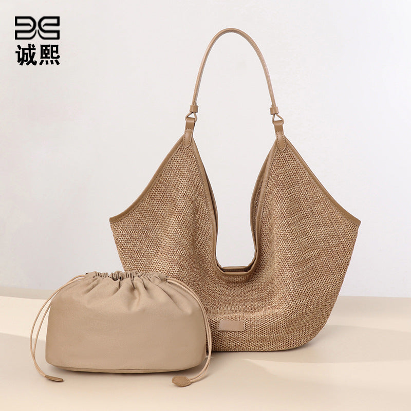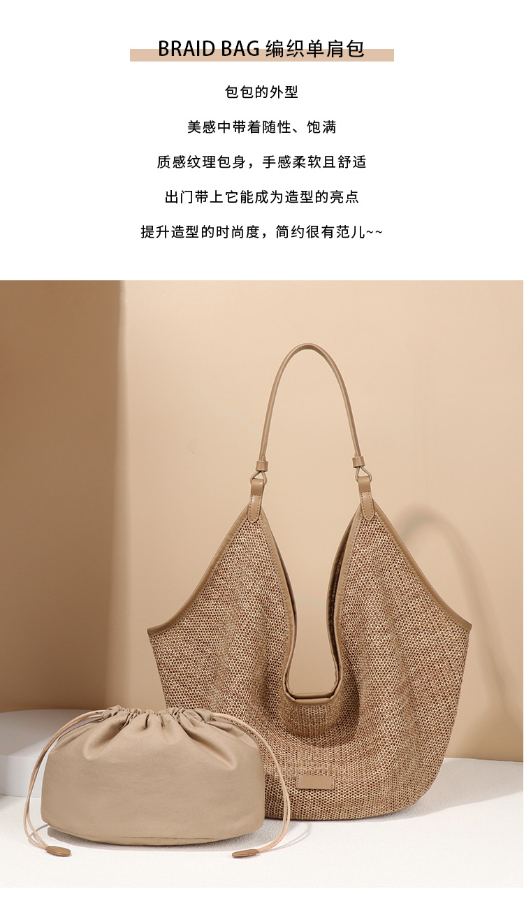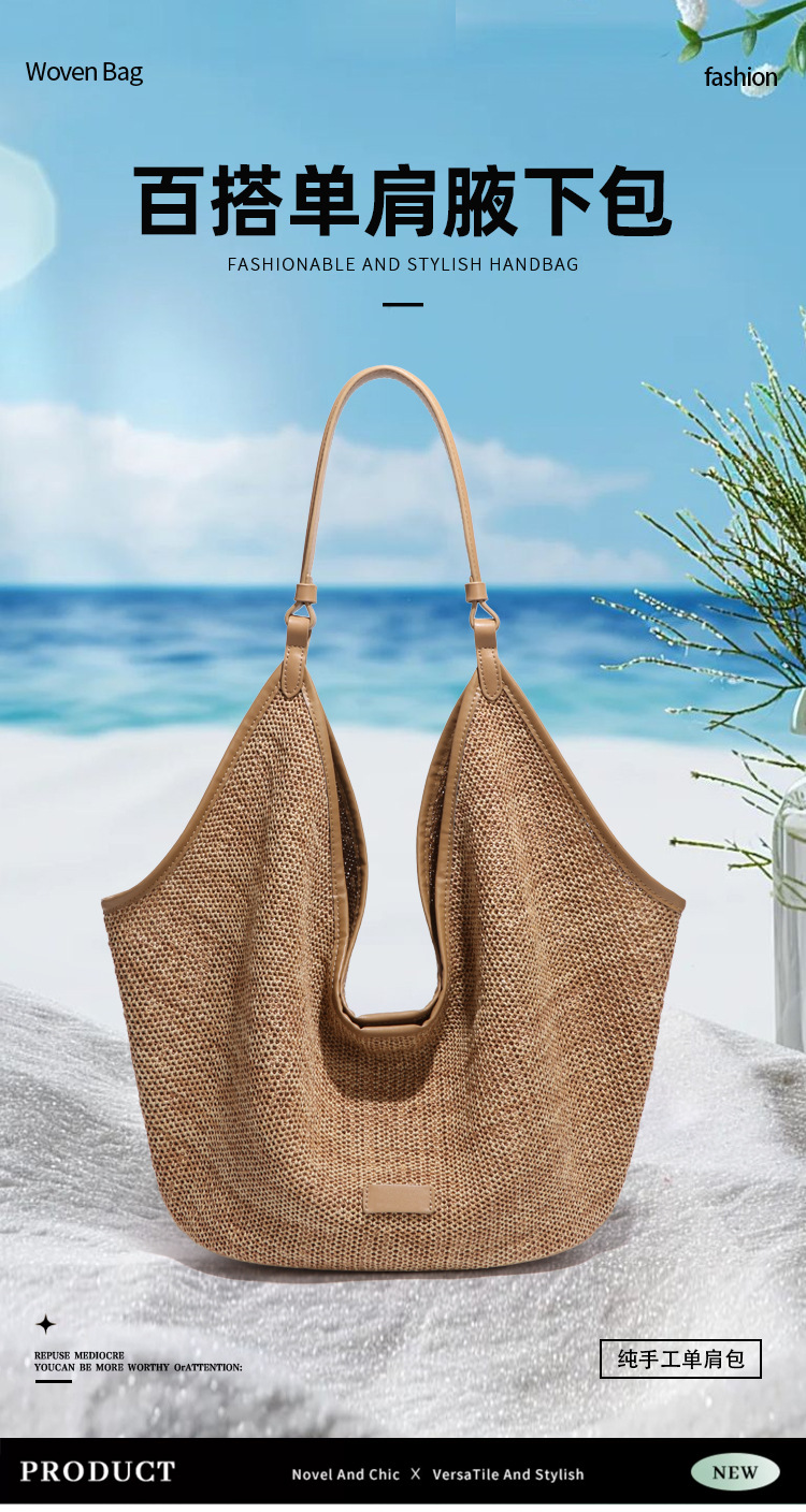 新款沙滩包草编女包复古单肩腋下手提包大容量慵懒风子母托特包包