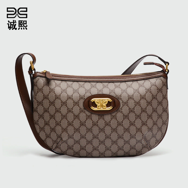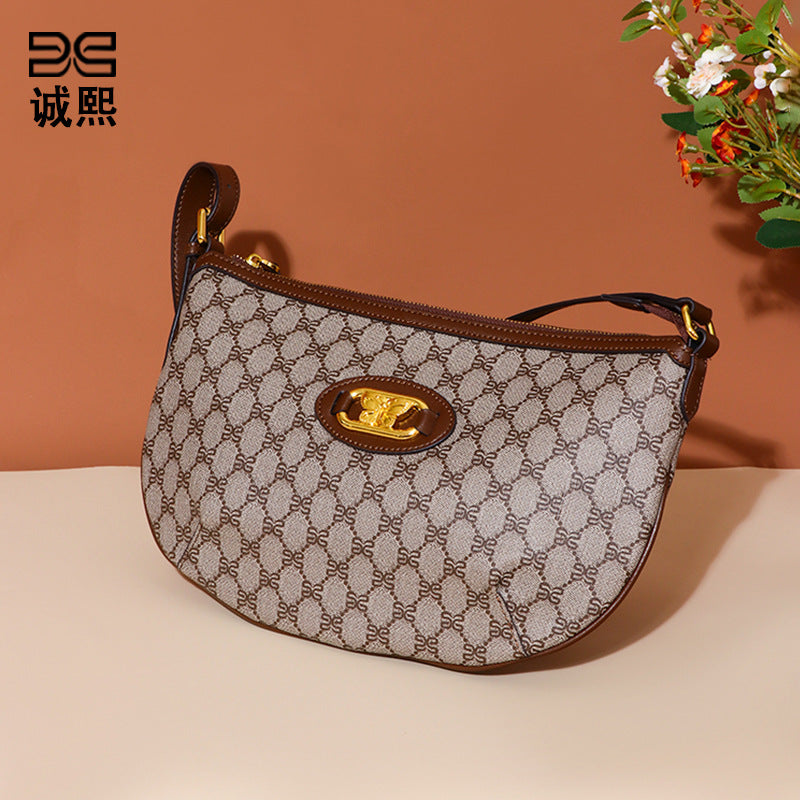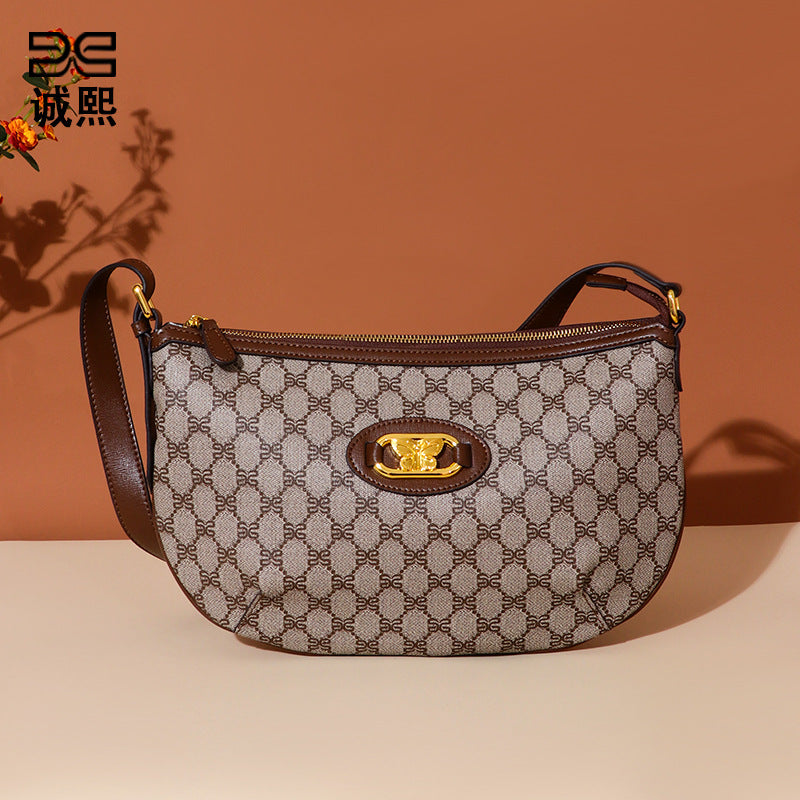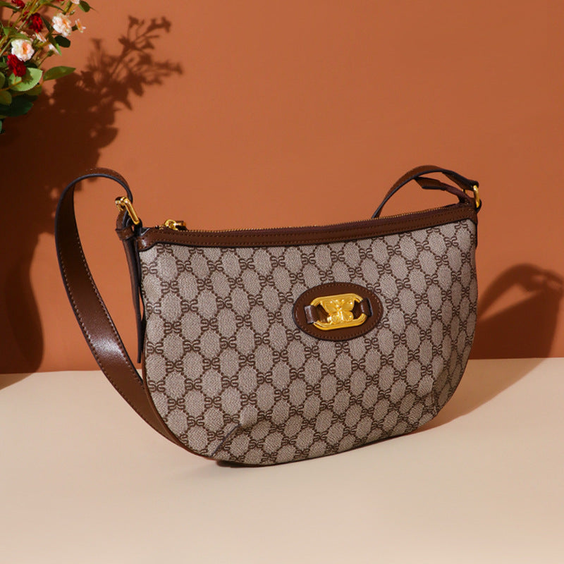 新款港风都市简约休闲百搭半月包复古高级感女士大容量单肩斜跨包