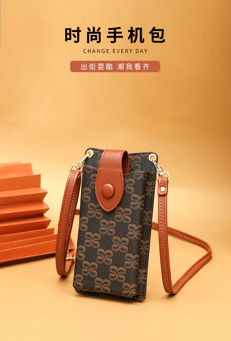 新款潮流印花竖款手机包时尚百搭小巧硬币零钱包轻便单肩斜挎卡包