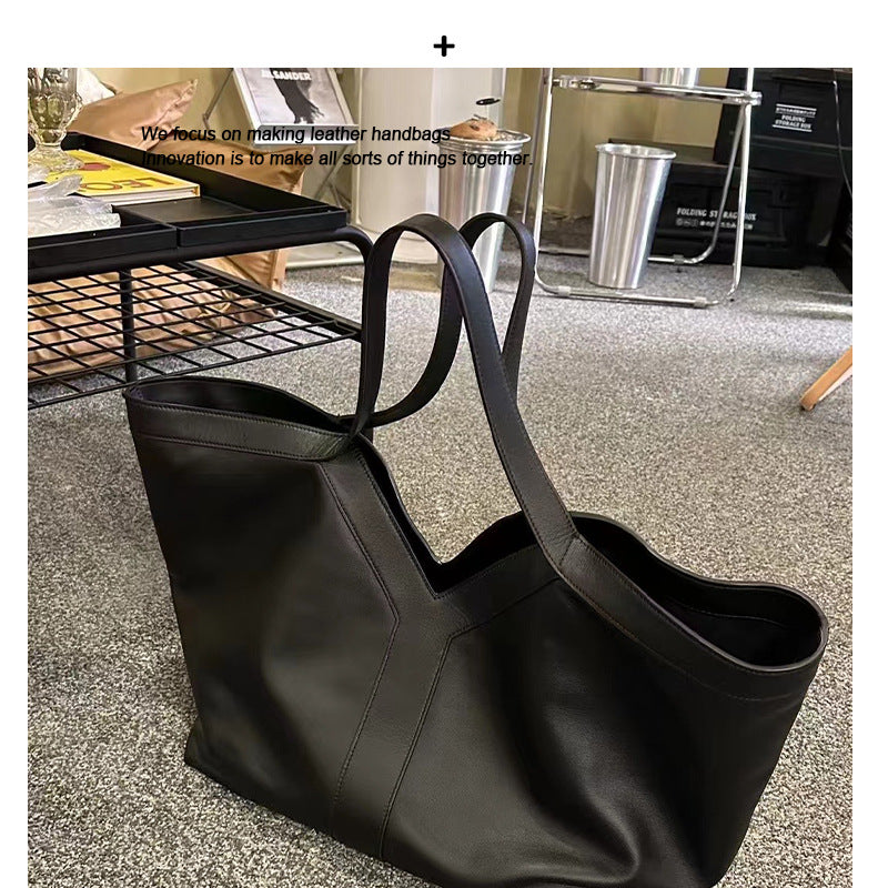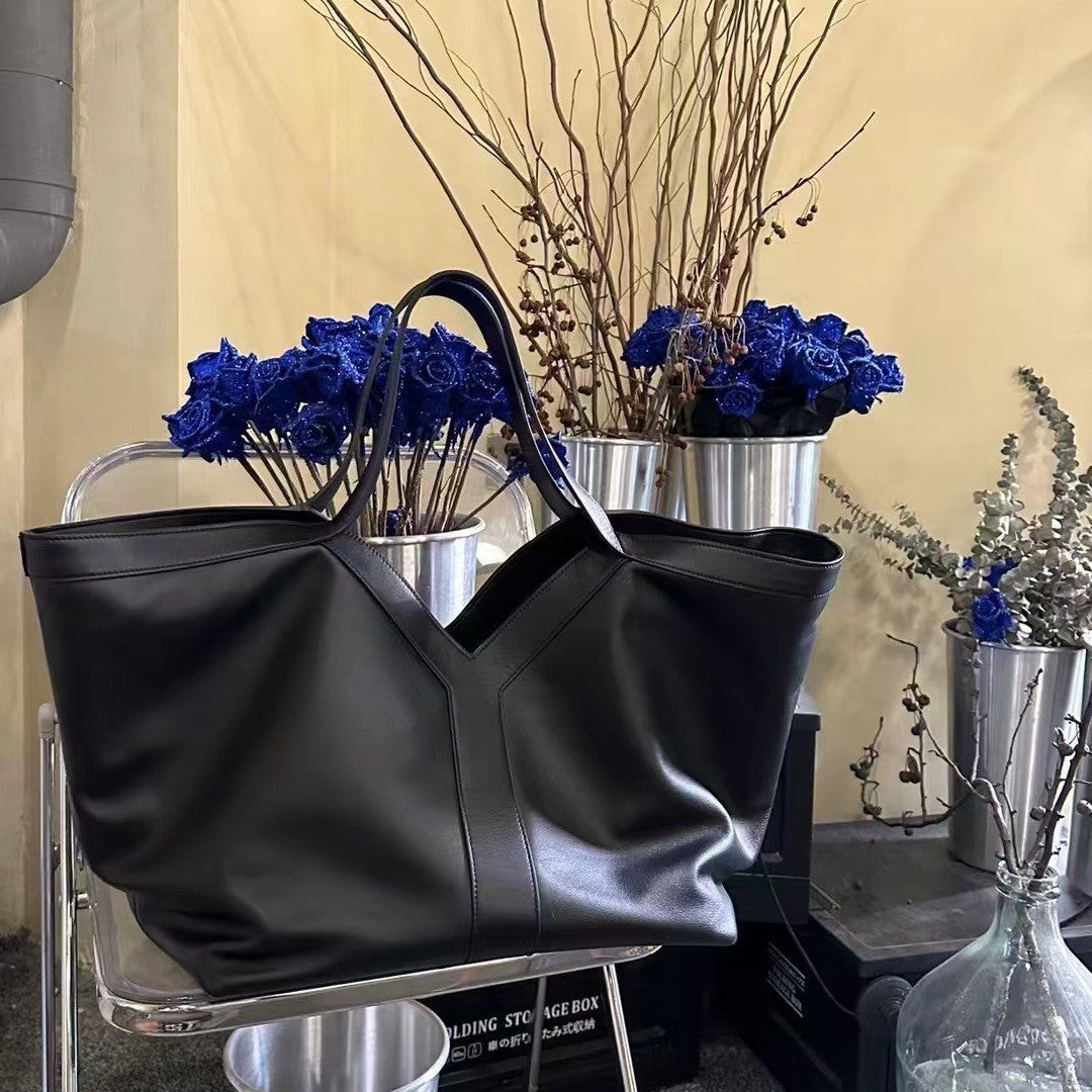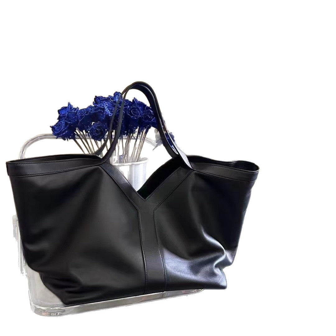 新款潮流牛皮Y字简约托特包大容量单肩腋下手提进口皮料时尚女包