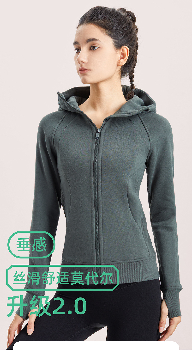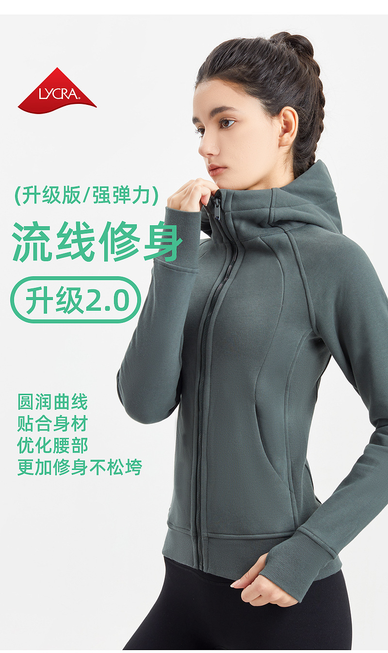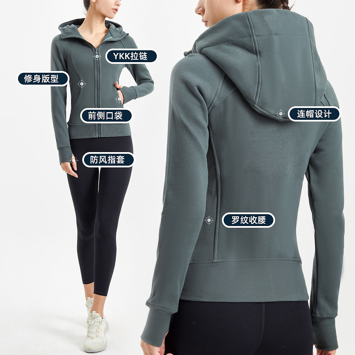 新款瑜伽服外套秋冬女透气抑菌拉链户外运动健身弹力连帽卫衣上衣
