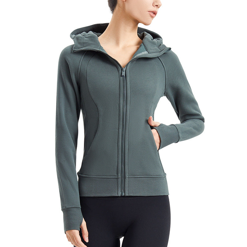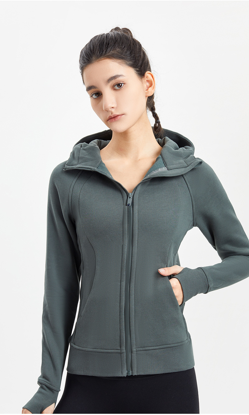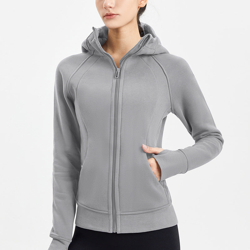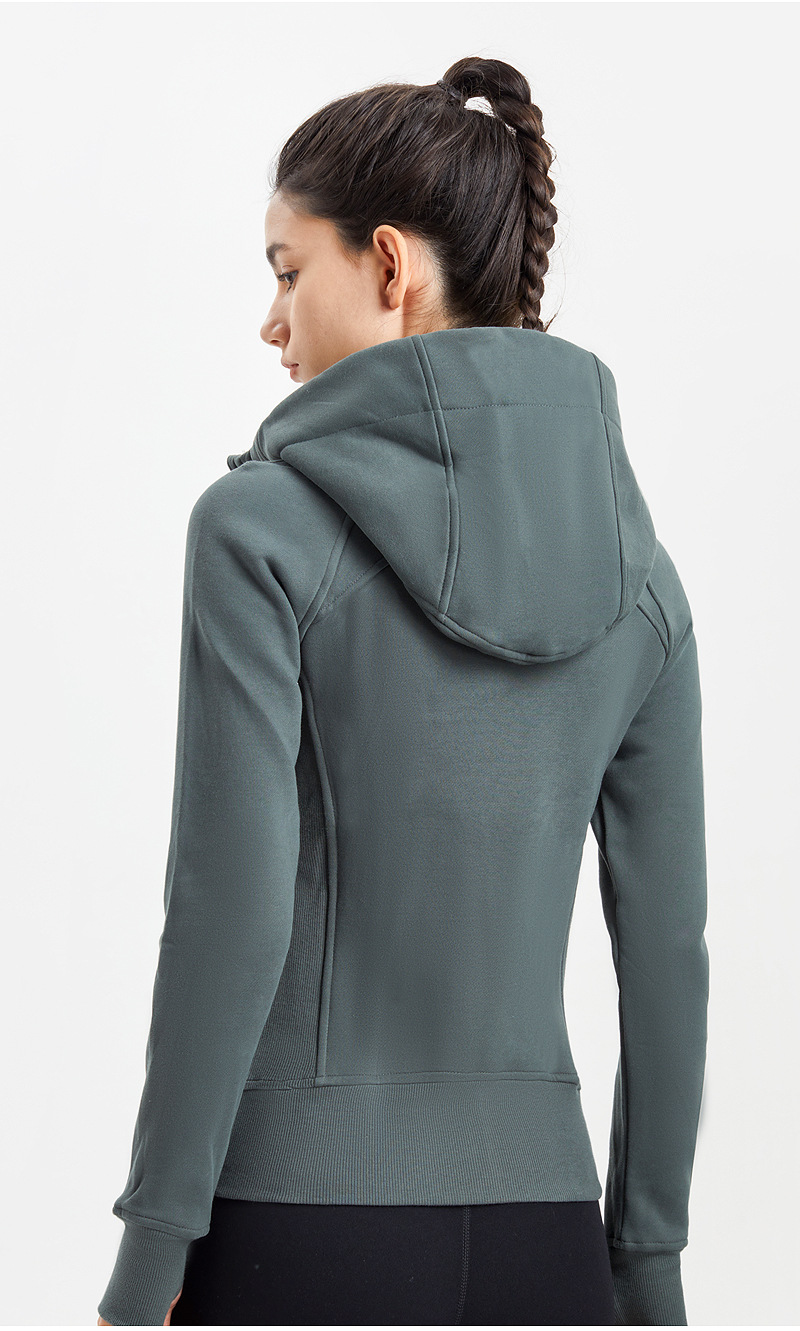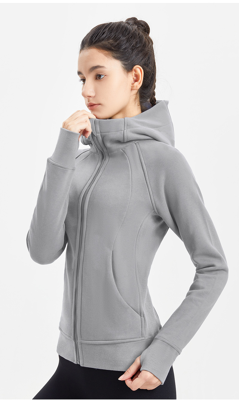 新款瑜伽服外套秋冬女透气抑菌拉链户外运动健身弹力连帽卫衣上衣