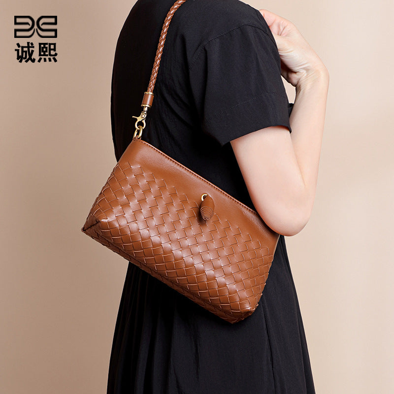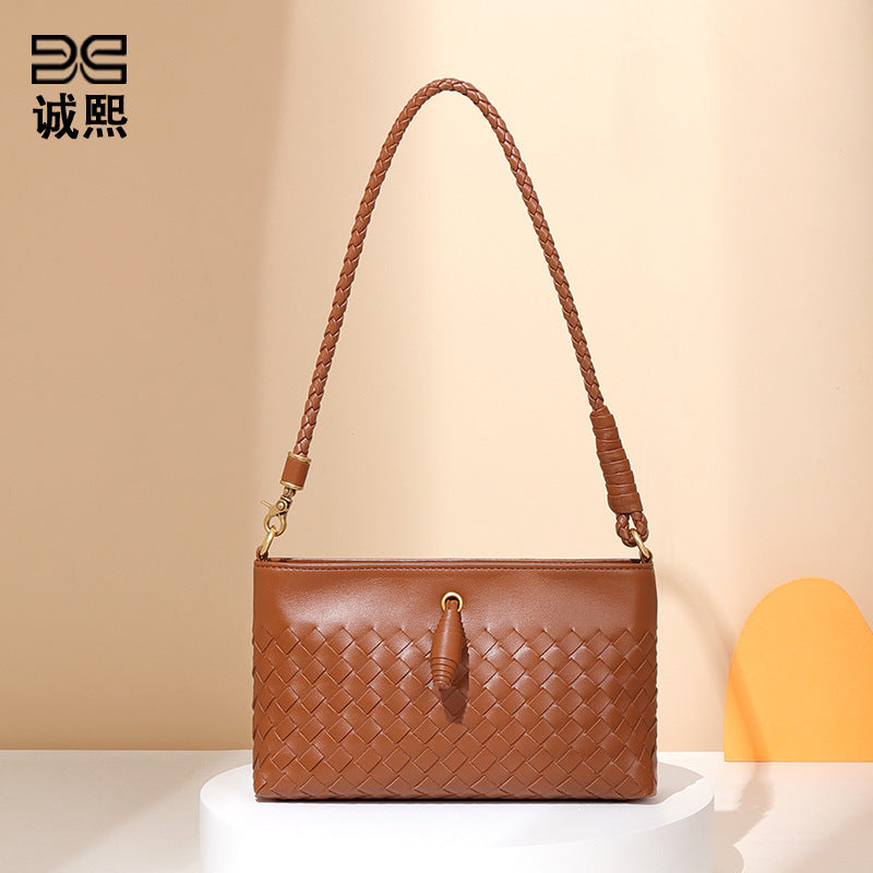 新款百搭手工编织包包简约潮流单肩腋下女包通勤大容量单肩斜挎包