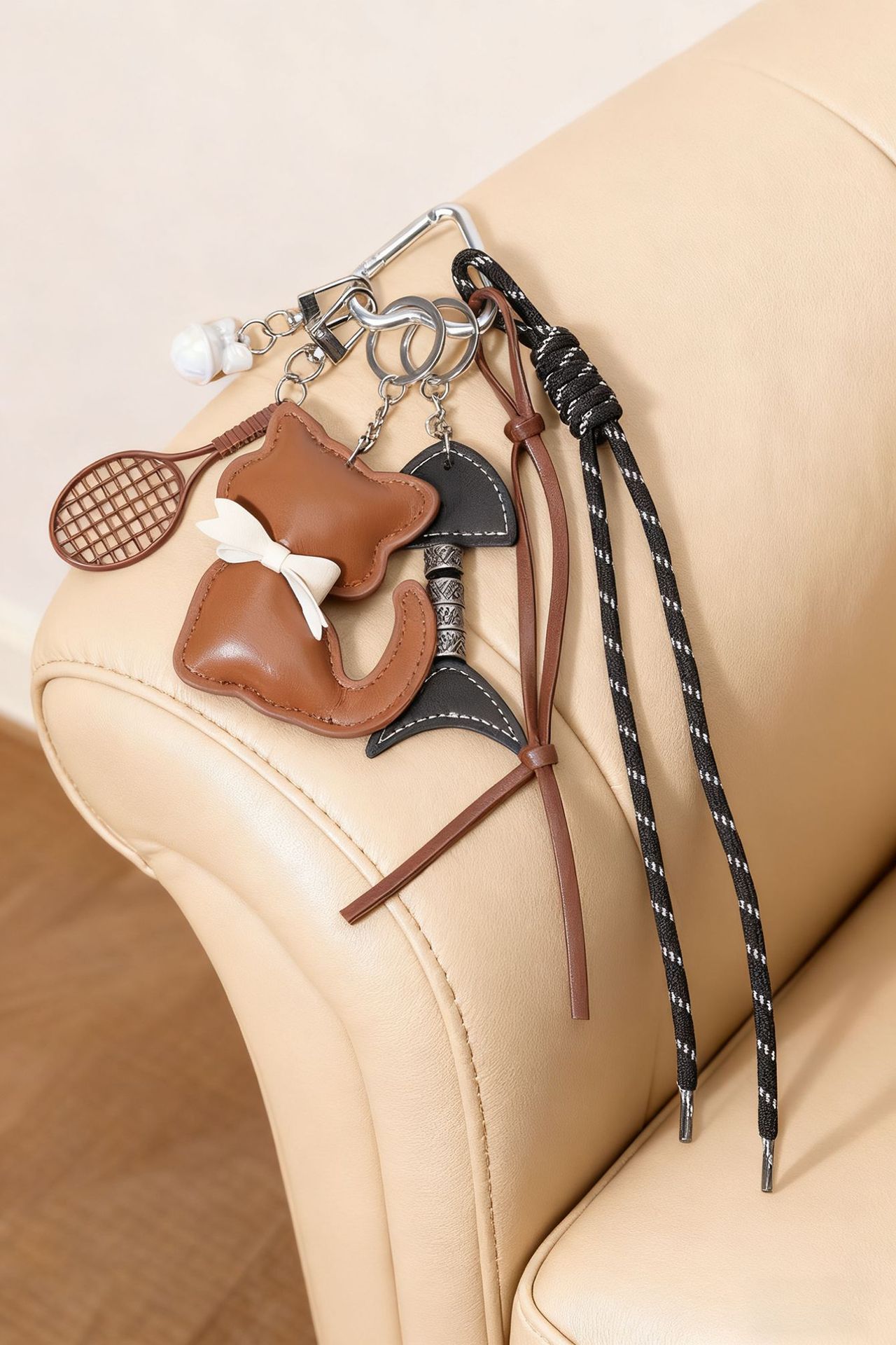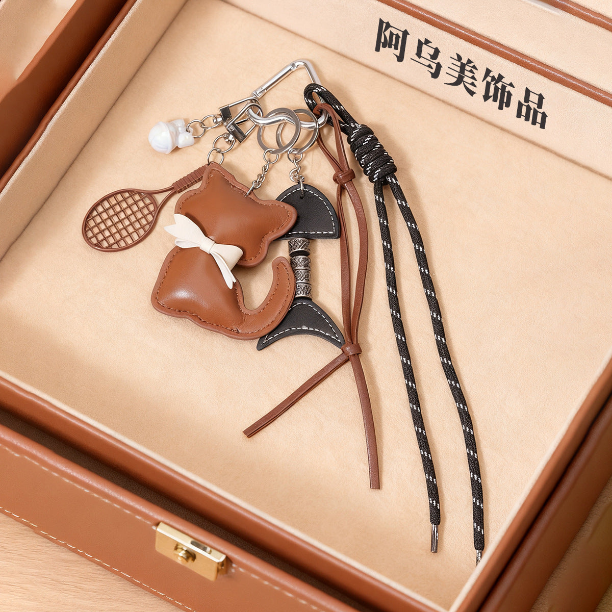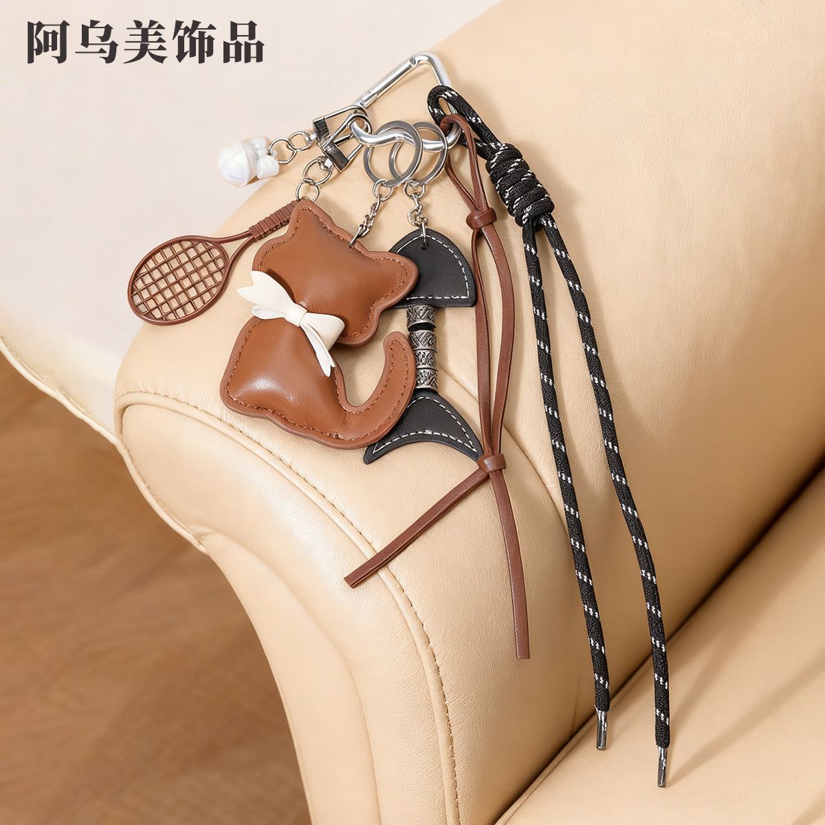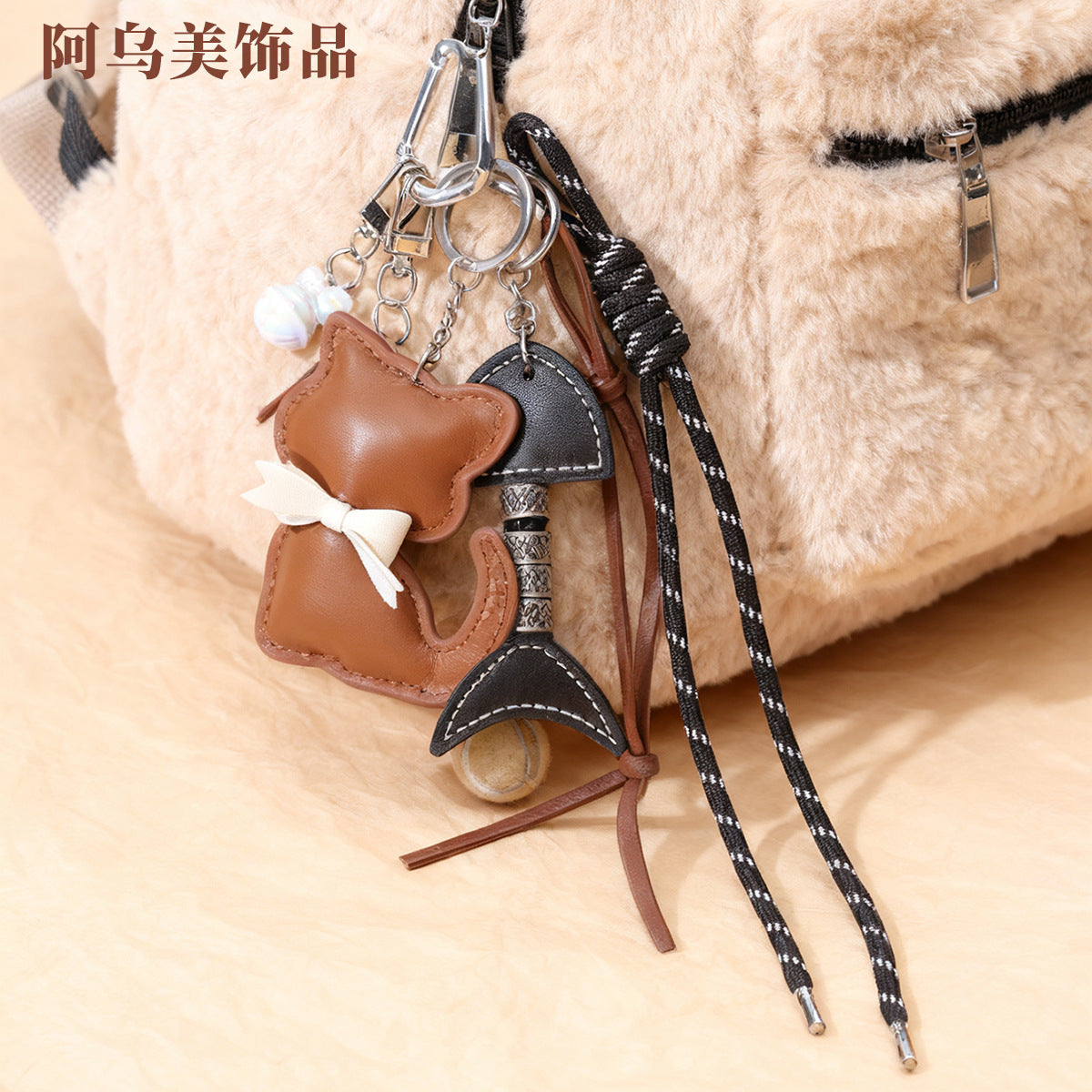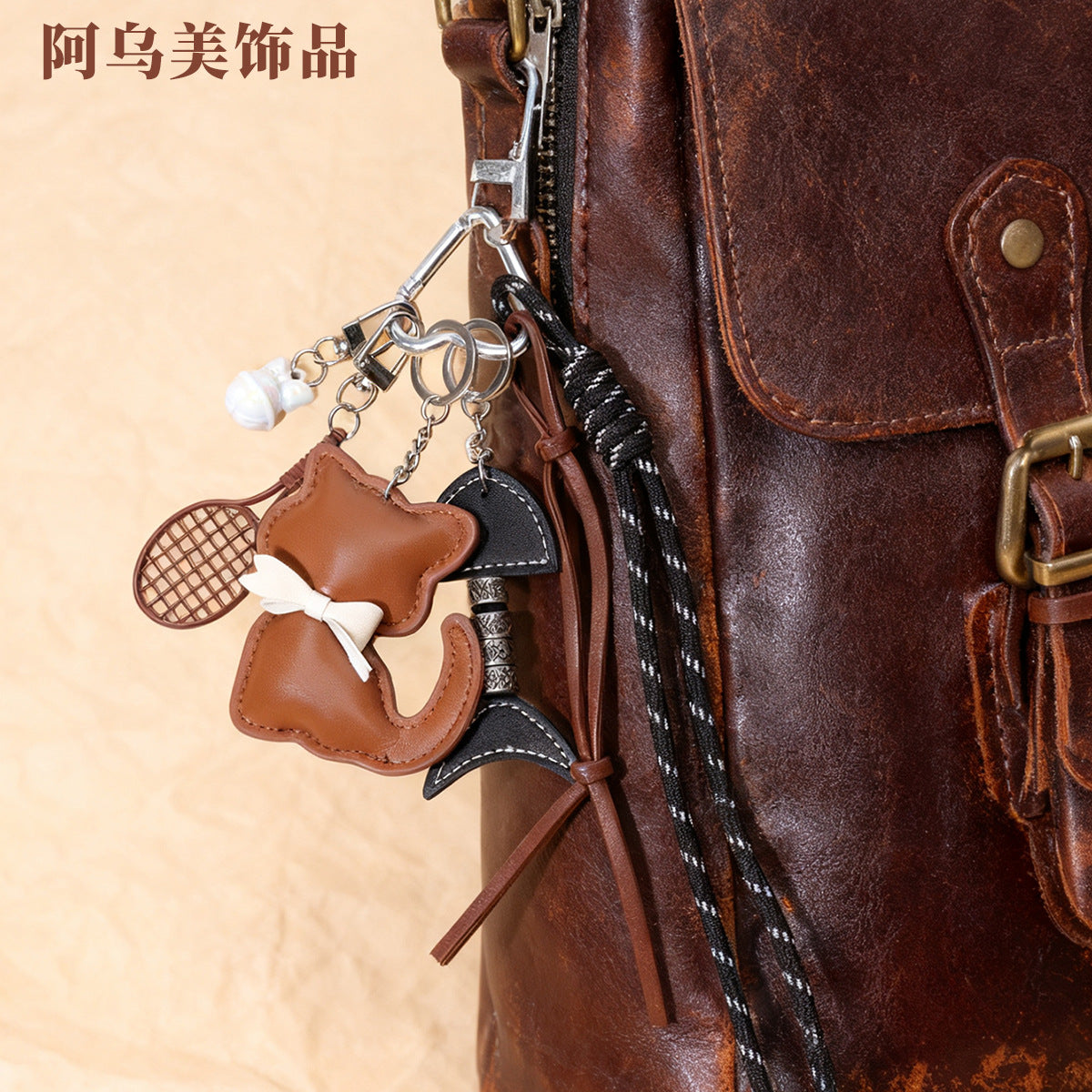 新款皮质小猫咪包包挂件蝴蝶结可爱卡通动物小猫女包挂饰小礼品