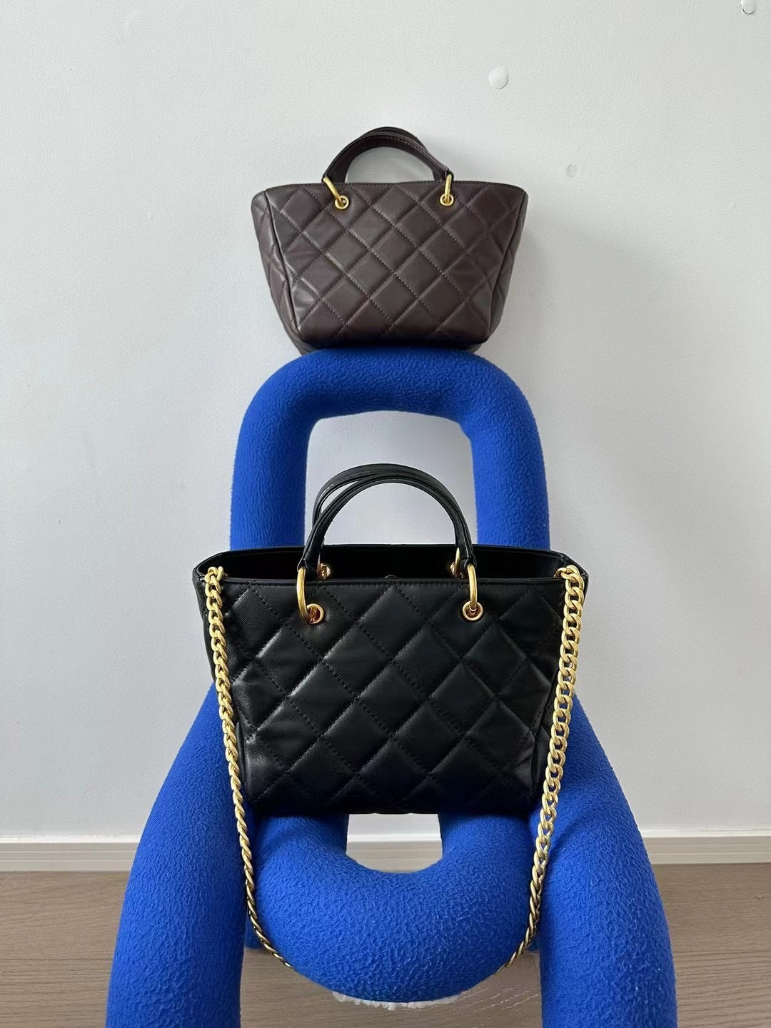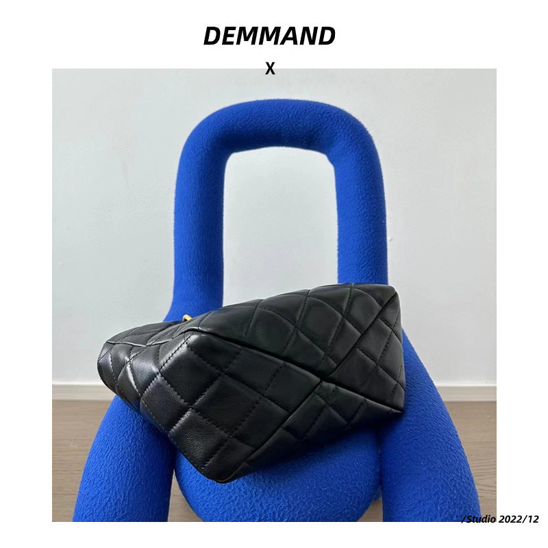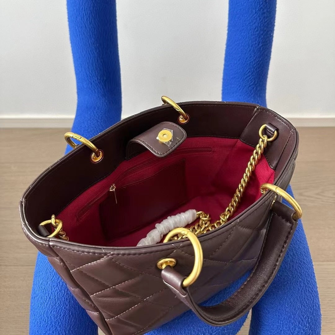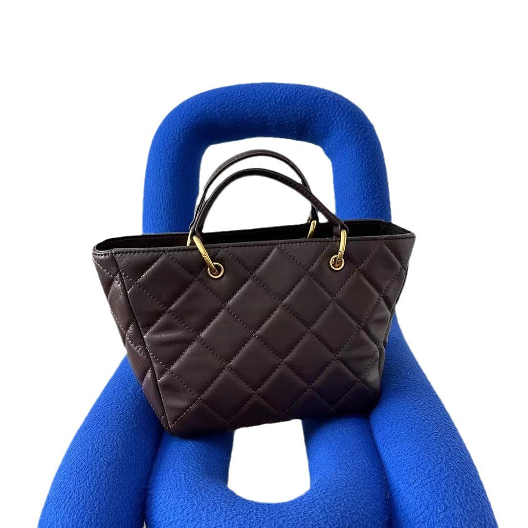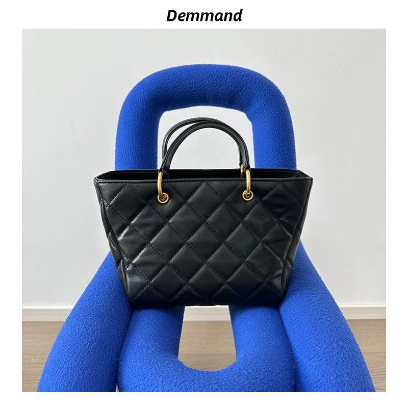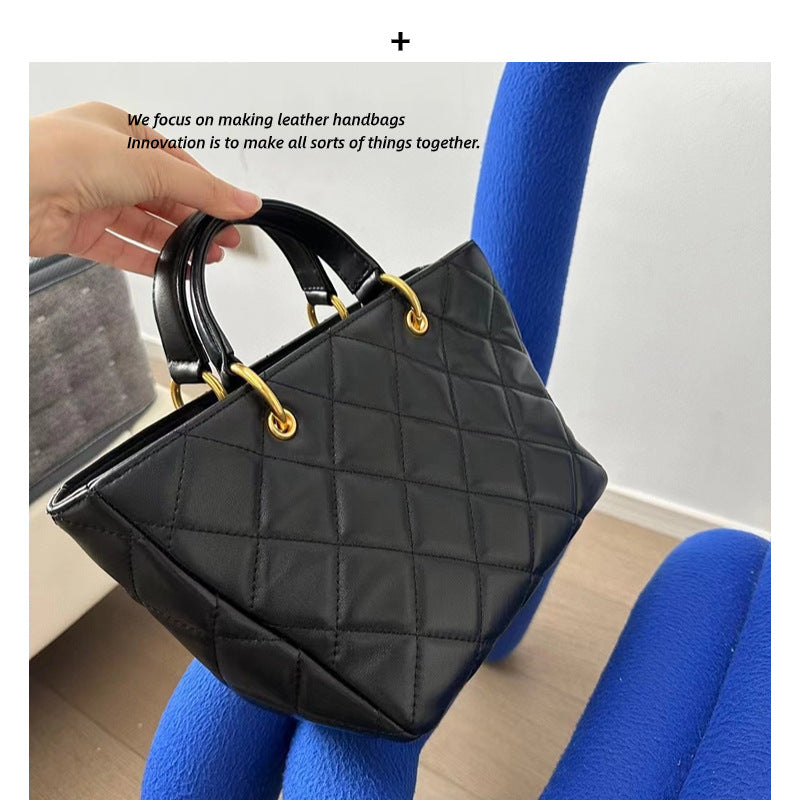 新款真皮菜篮子包时尚复古菱格手提包休闲百搭单肩斜挎托特包女