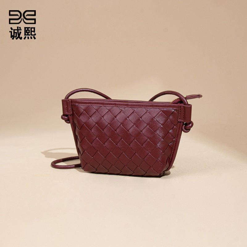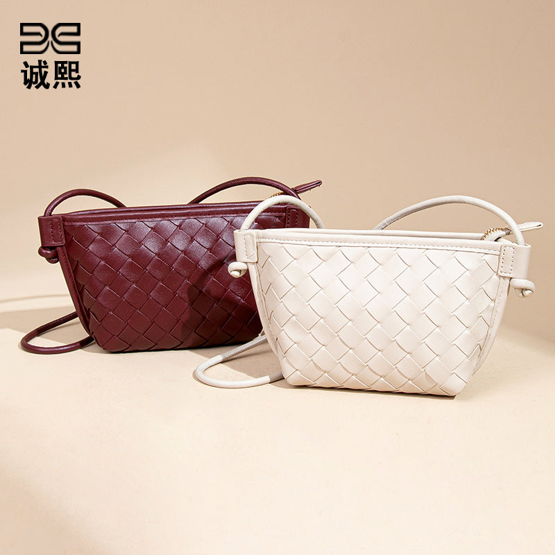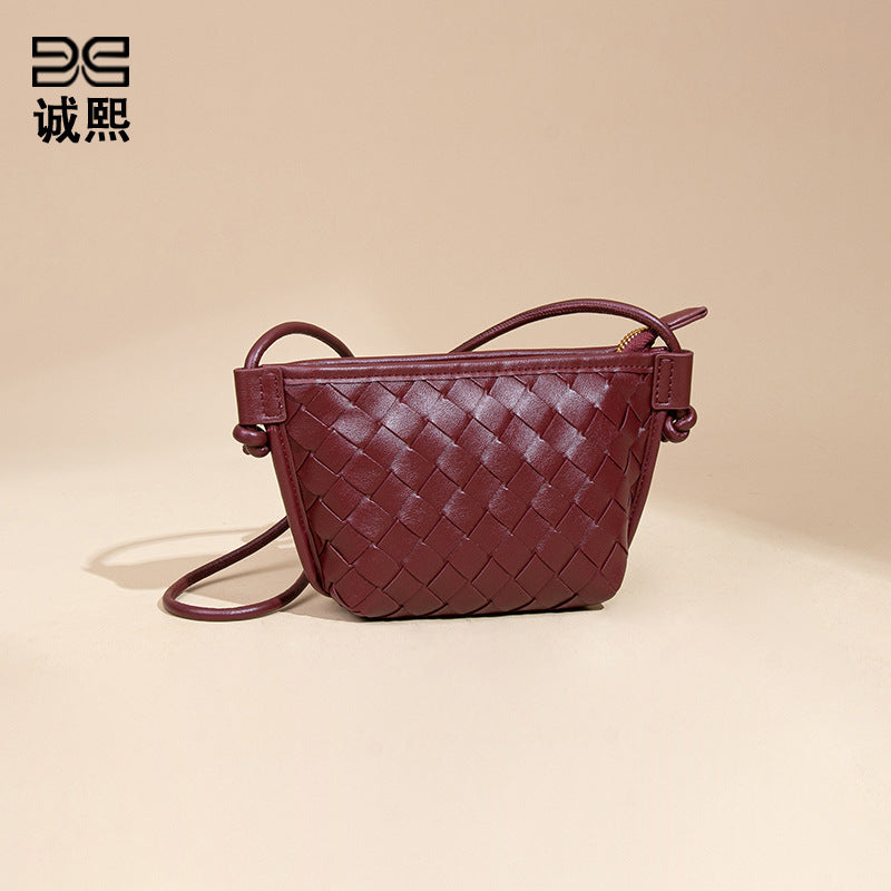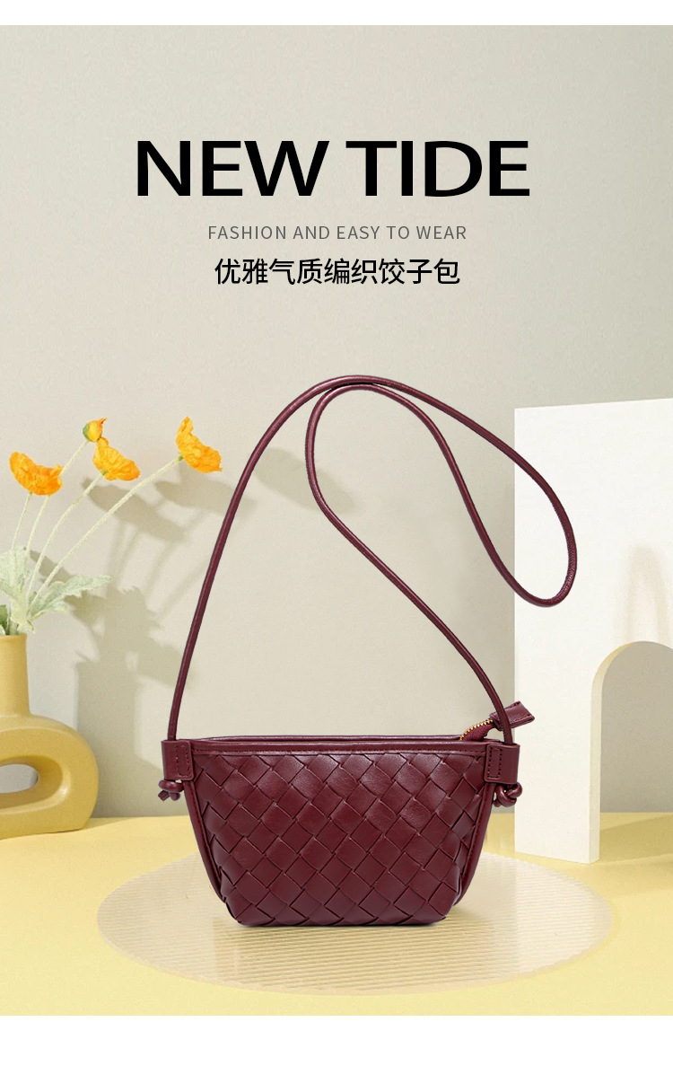 新款纯色百搭斜跨编织女包休闲创意零钱包小巧可爱mini复古饺子包