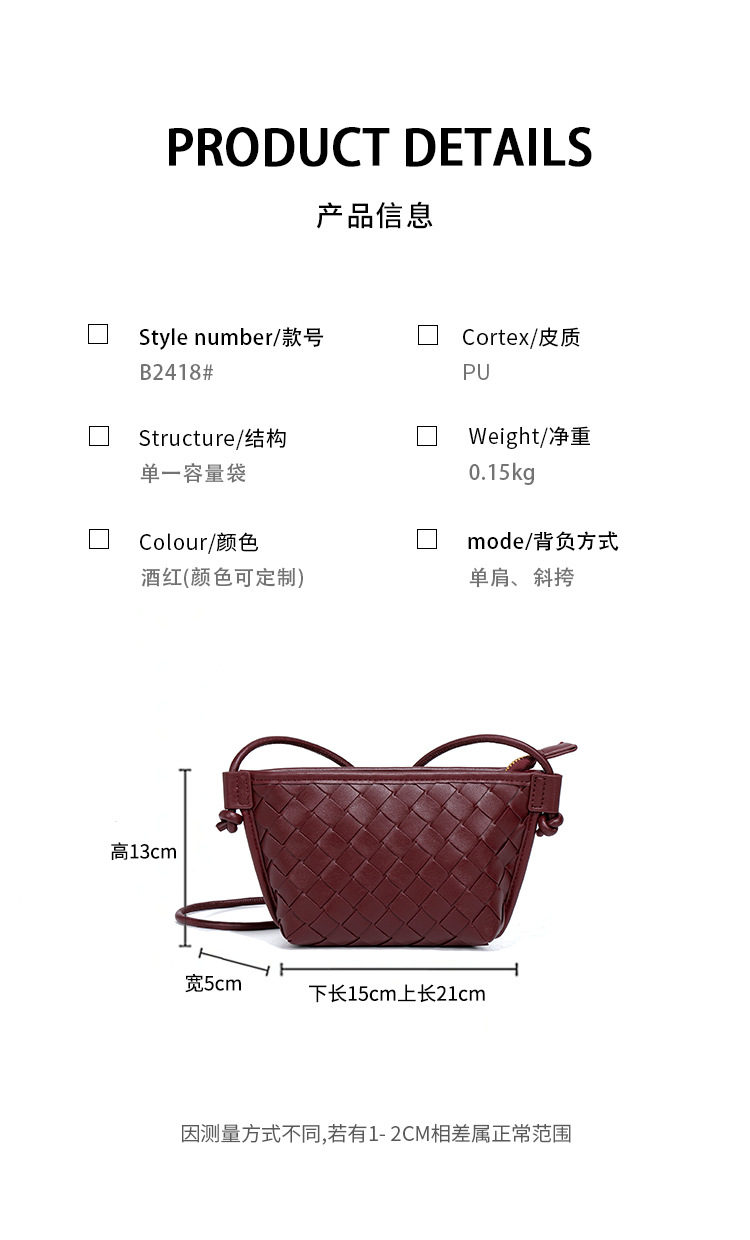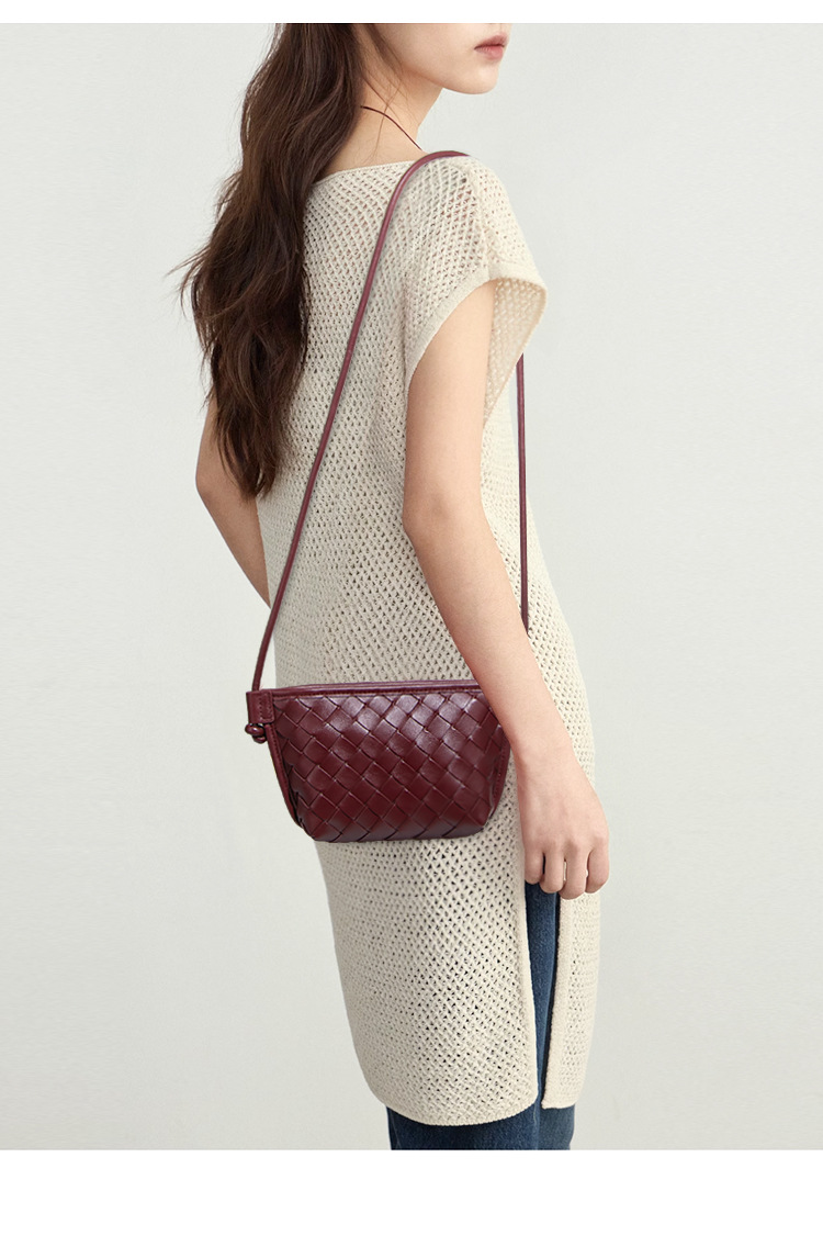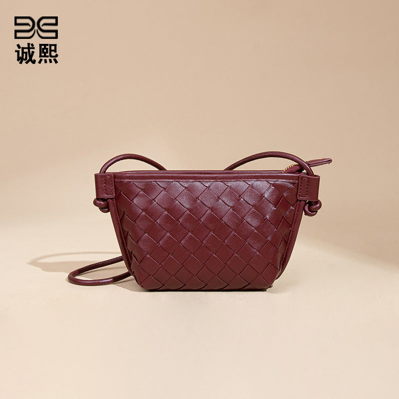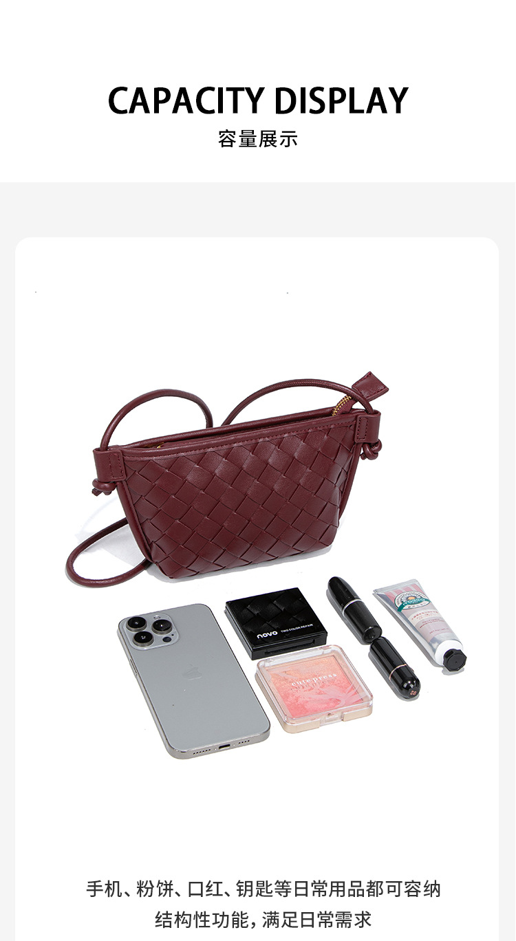 新款纯色百搭斜跨编织女包休闲创意零钱包小巧可爱mini复古饺子包