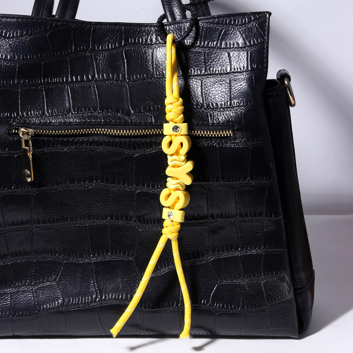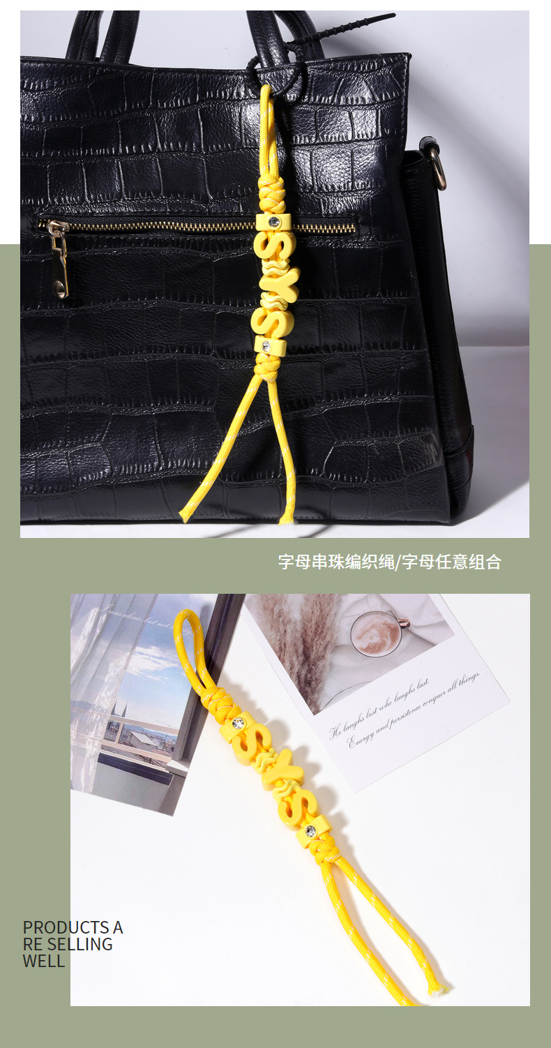 新款纽扣欧美波西米亚风涤纶纯手工编织钥匙扣包包挂件批发字母珠