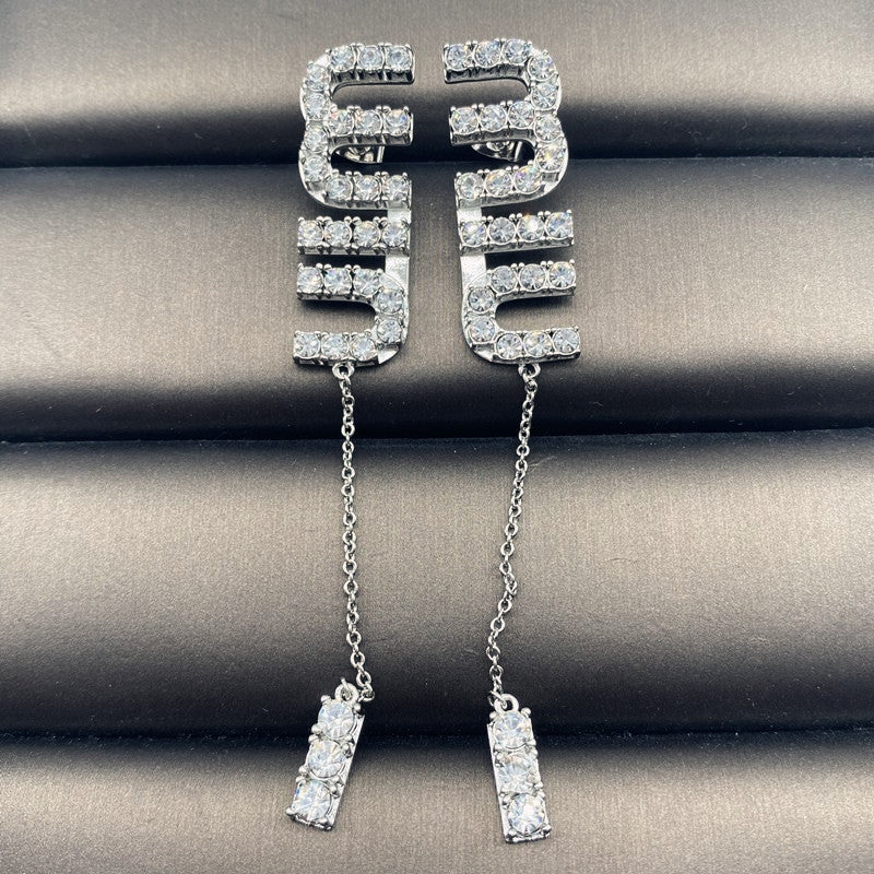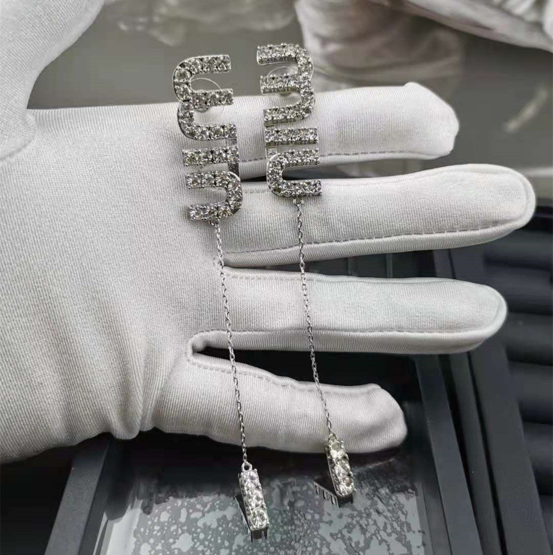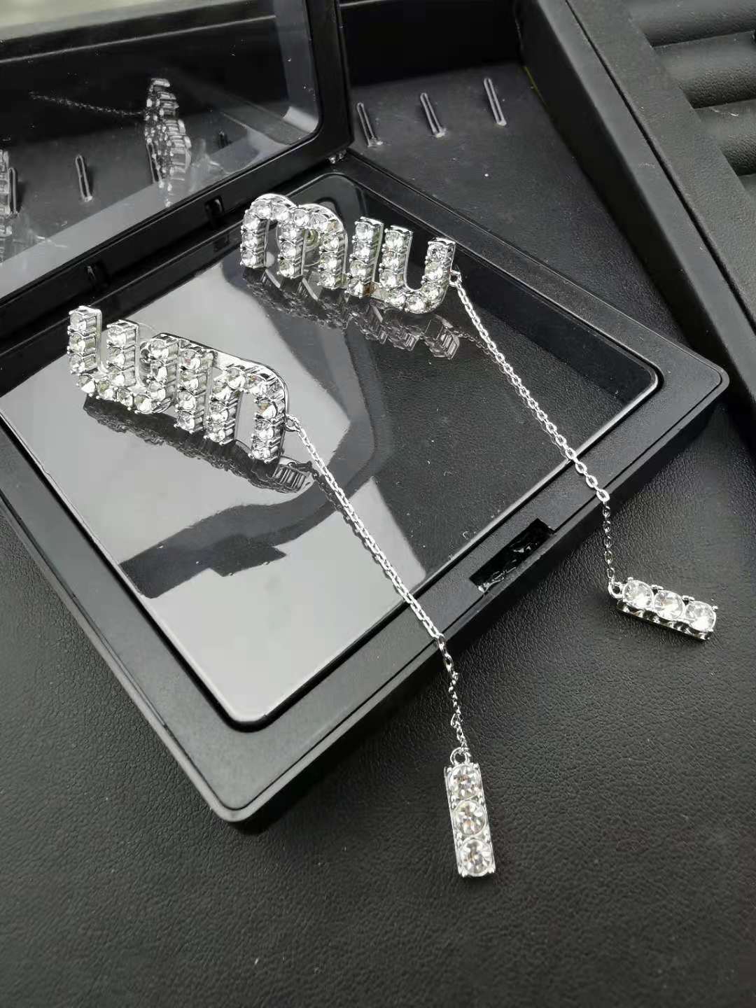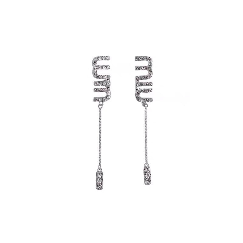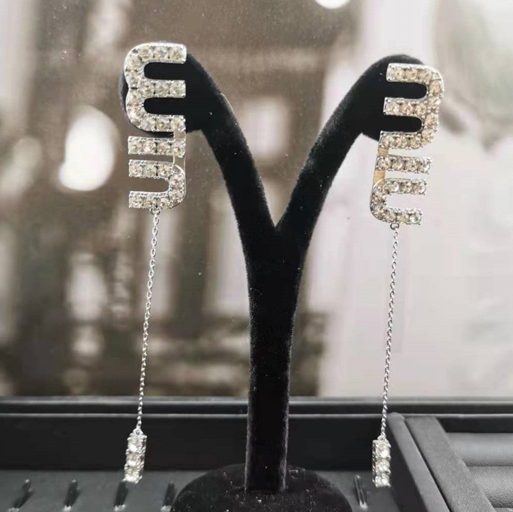新款缪家耳环字母满钻MIU字母水晶女气质时尚水钻耳坠长款耳线