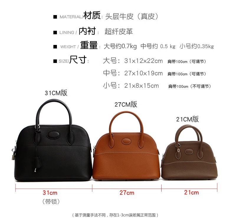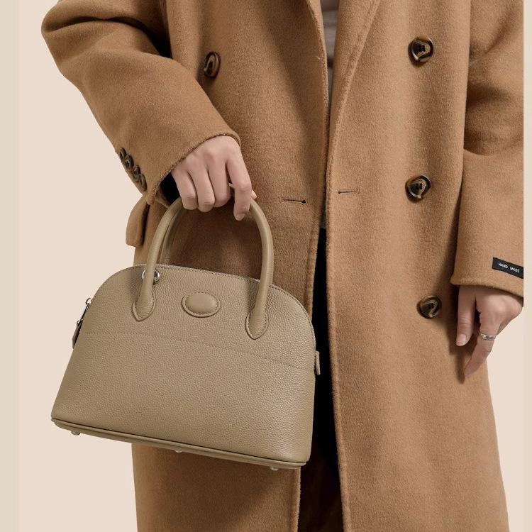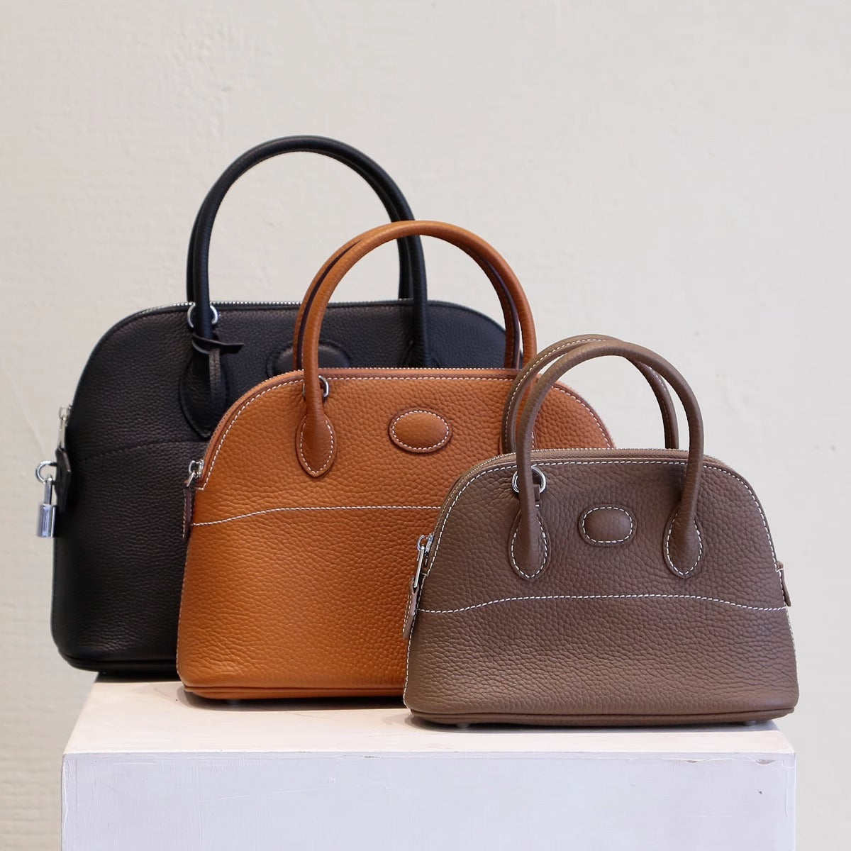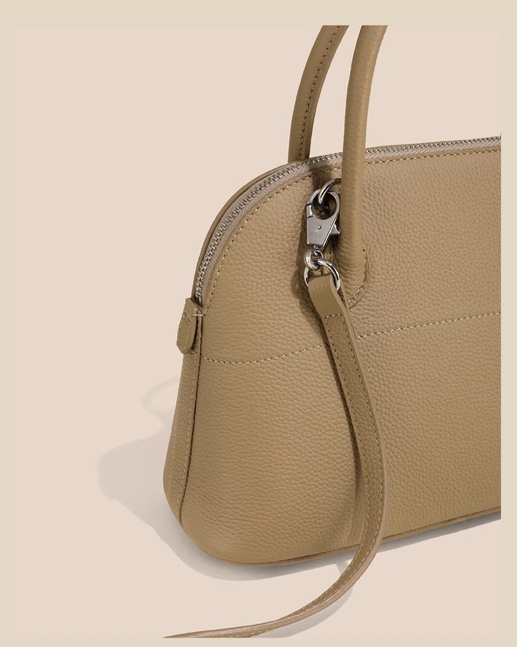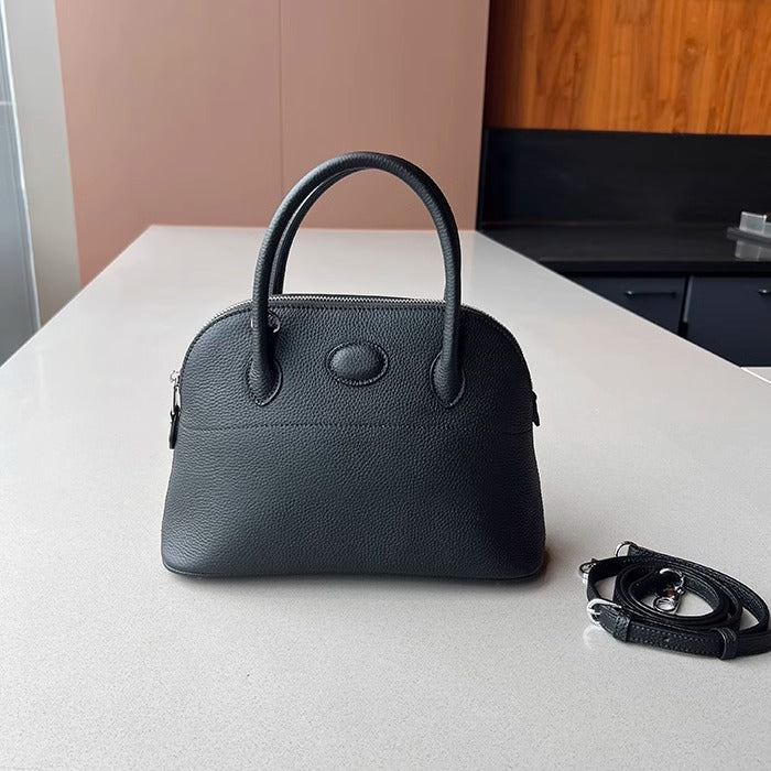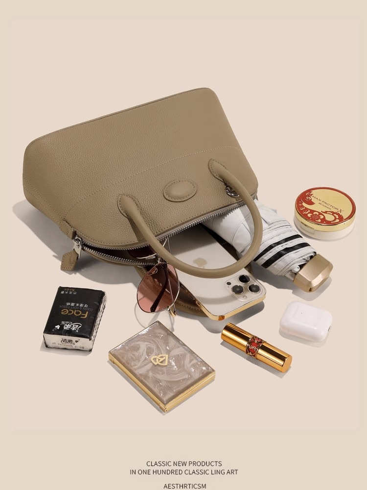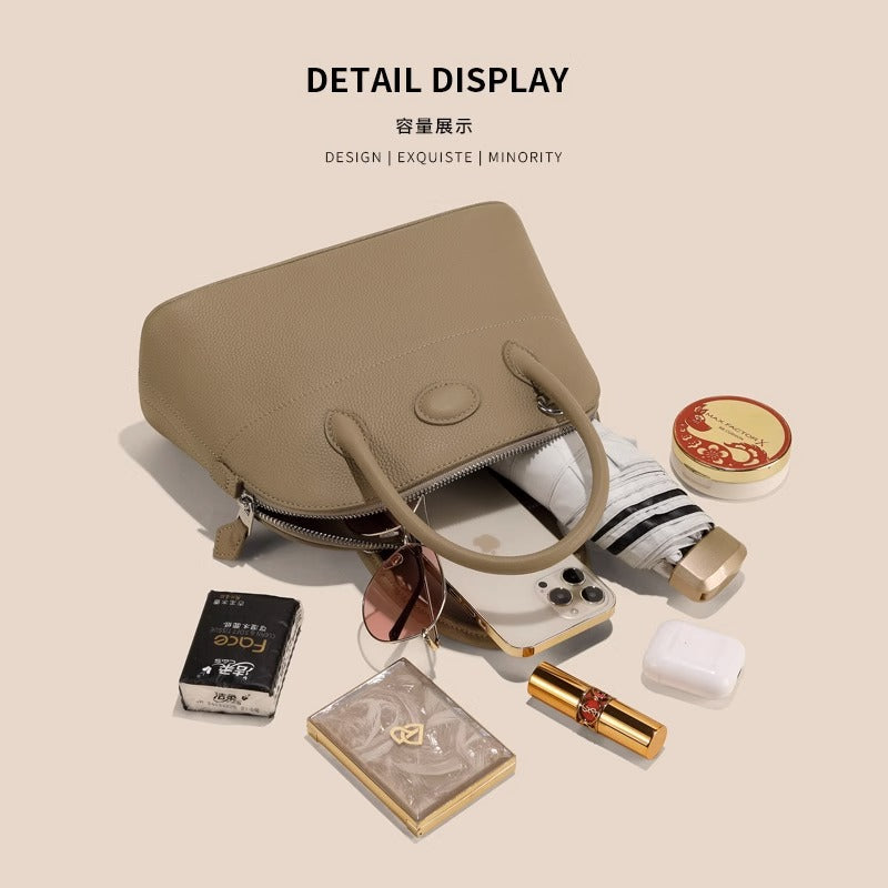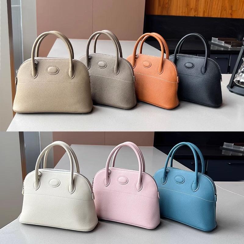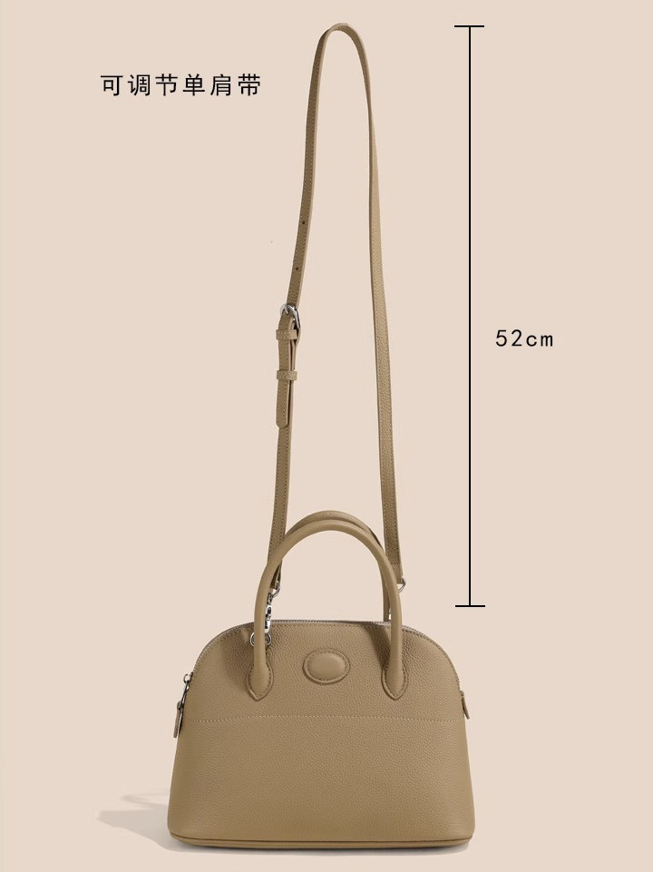 新款荔枝纹真皮贝壳包头层牛皮保龄球手提包拉链大容量通勤女包