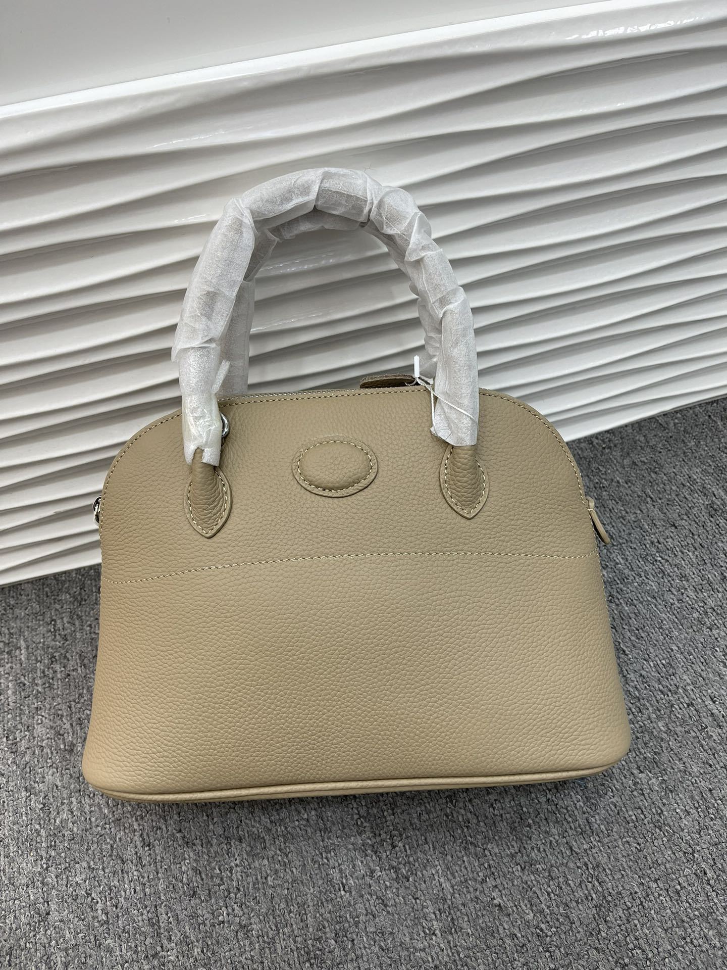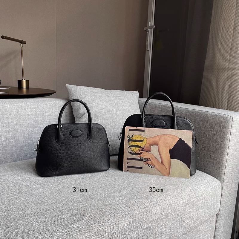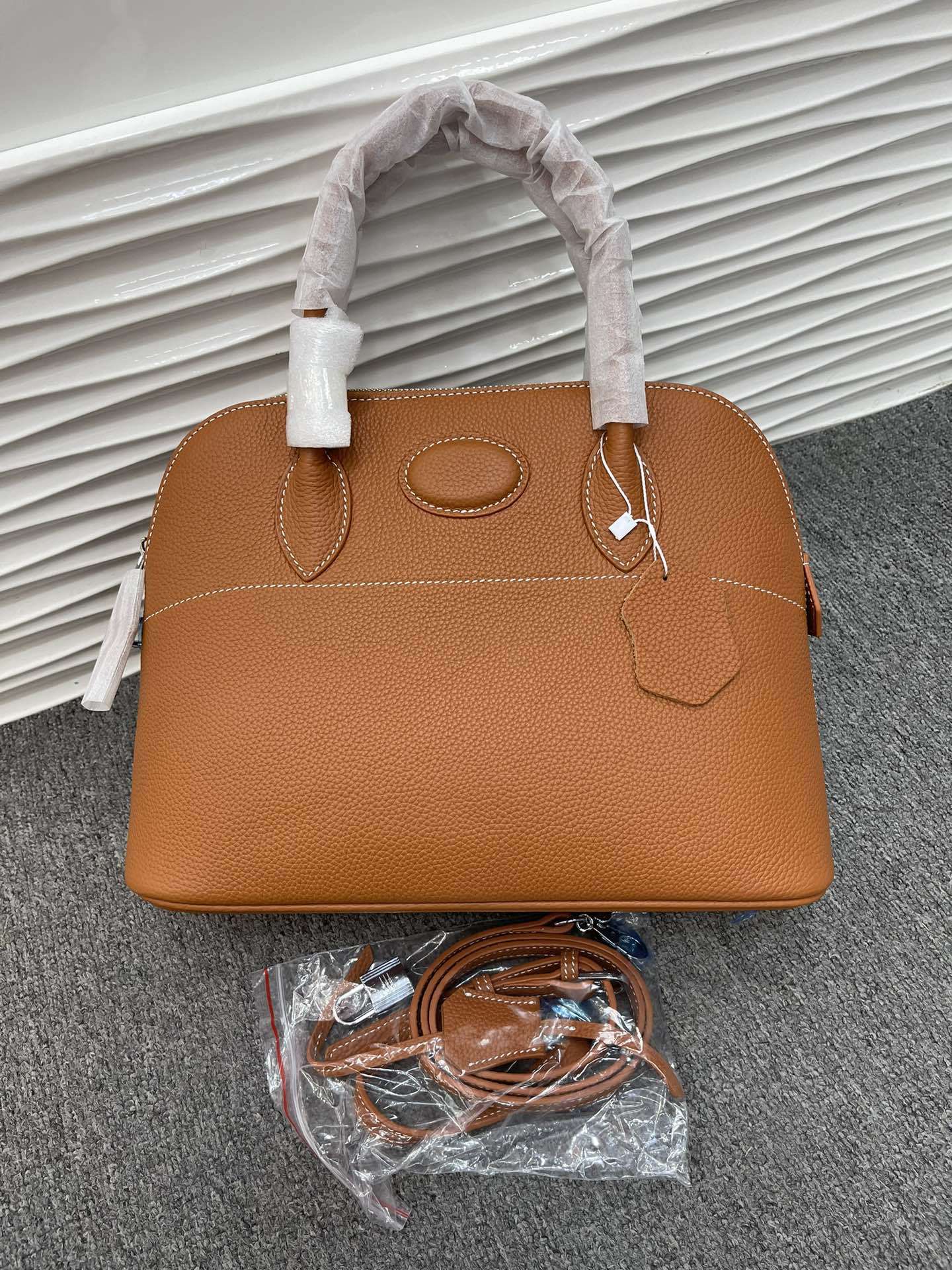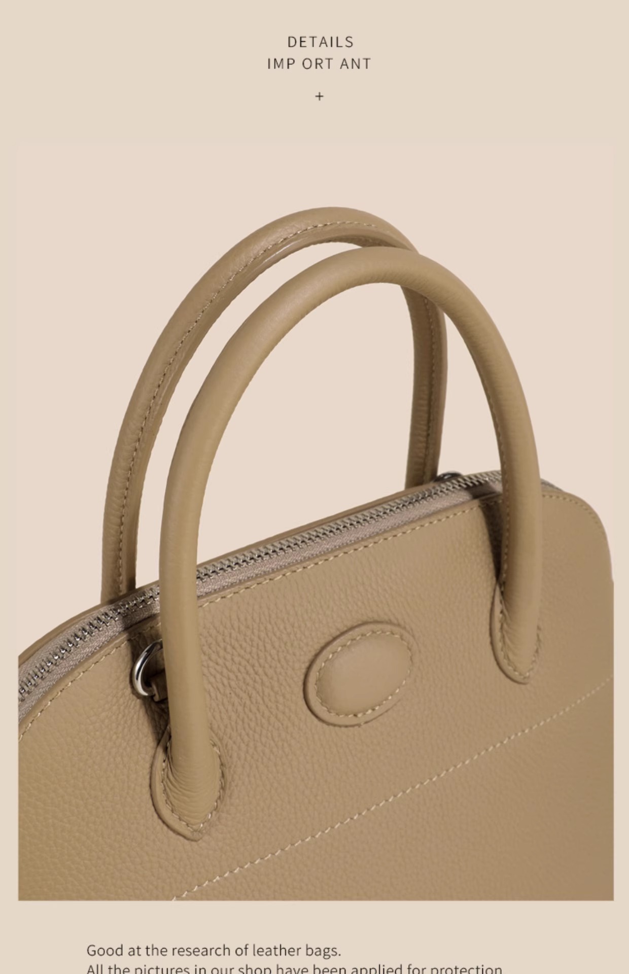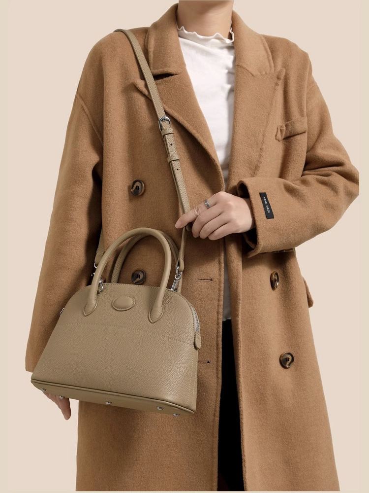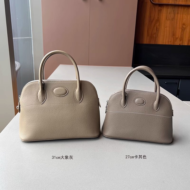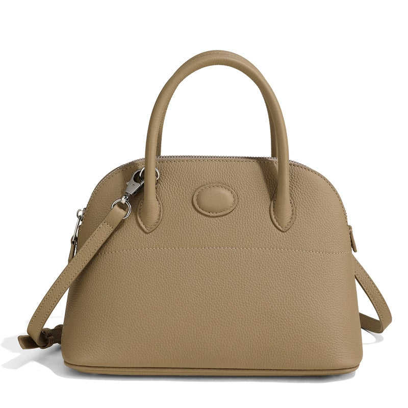 新款荔枝纹真皮贝壳包头层牛皮保龄球手提包拉链大容量通勤女包