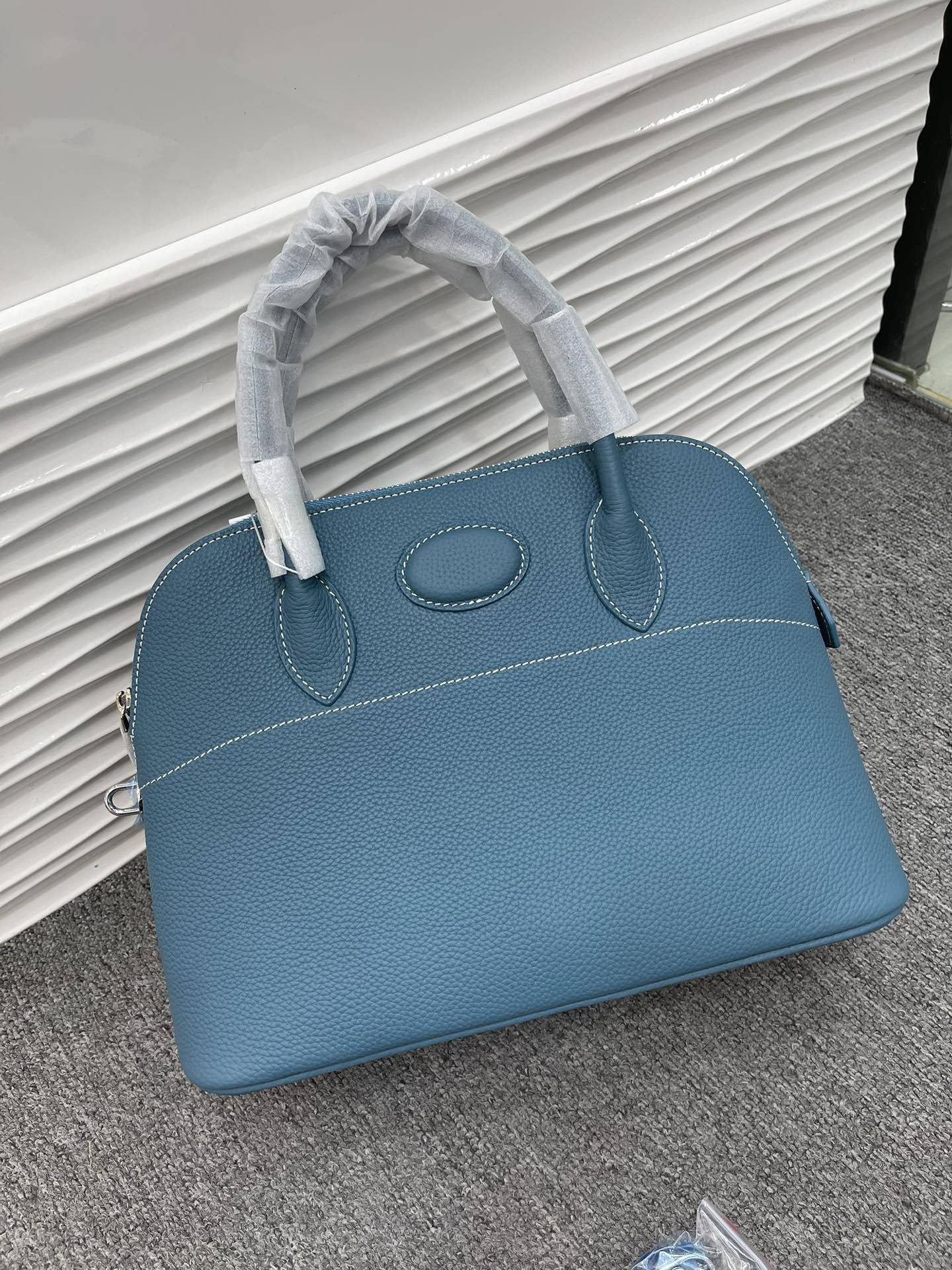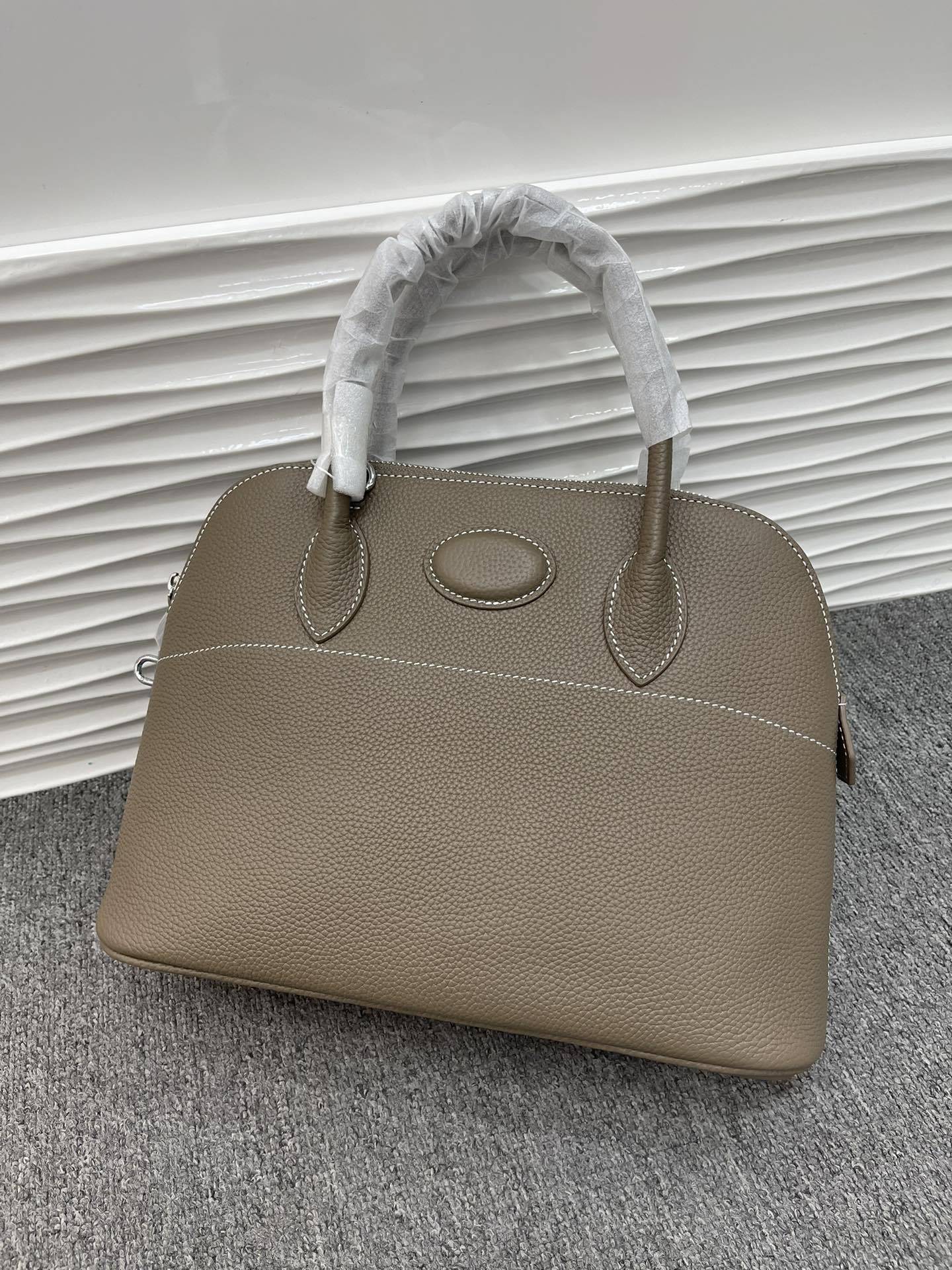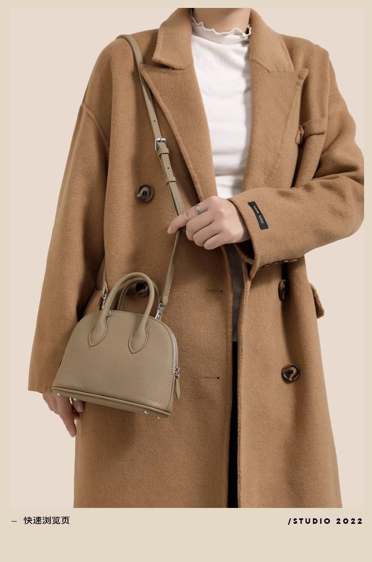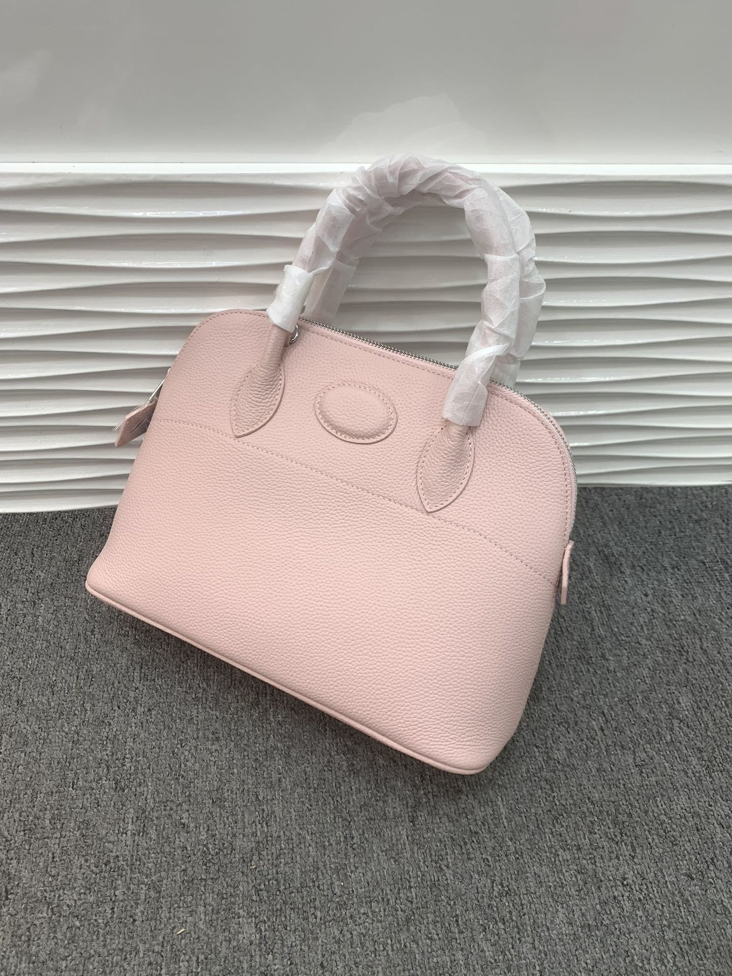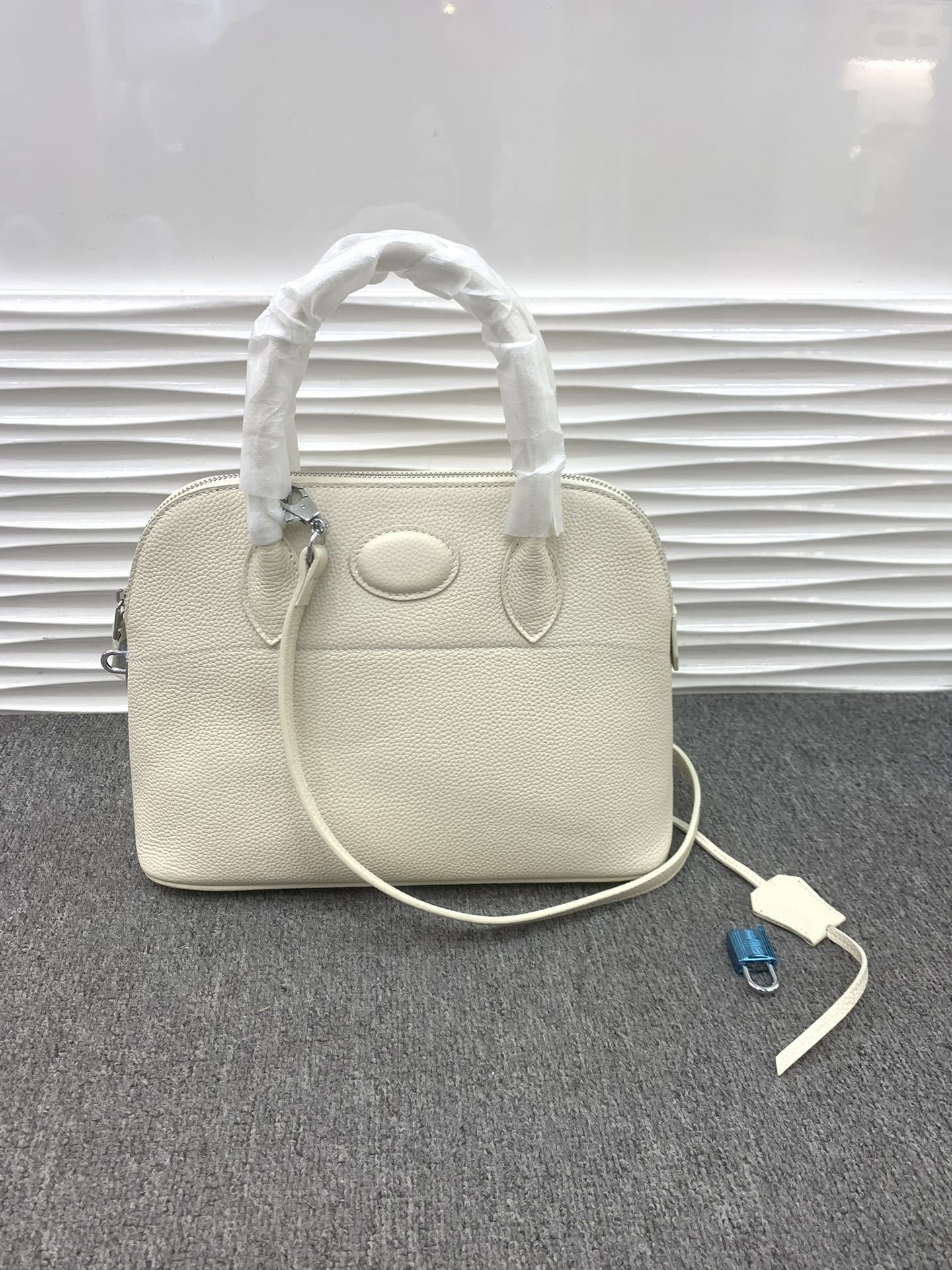 新款荔枝纹真皮贝壳包头层牛皮保龄球手提包拉链大容量通勤女包