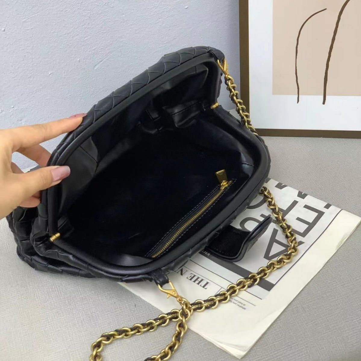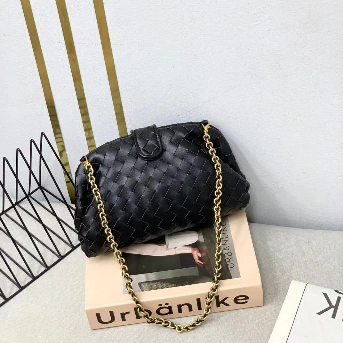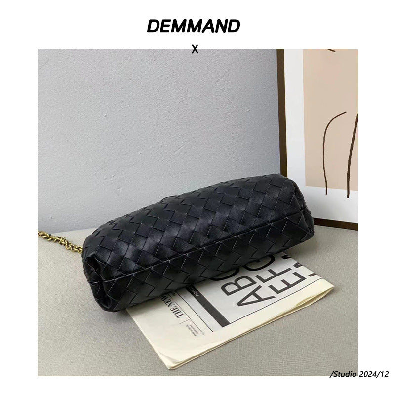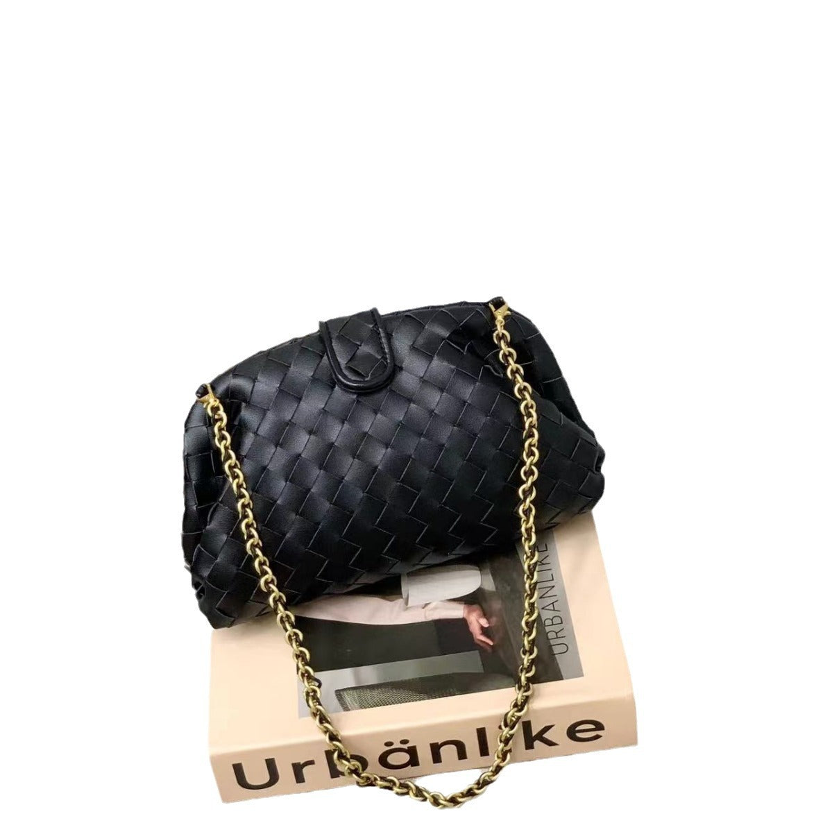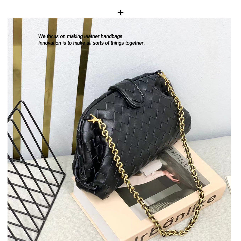 新款链条编织云朵包牛皮单肩腋下手拿包夹子包真皮女包潮流时尚单