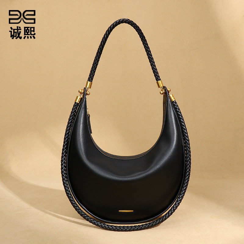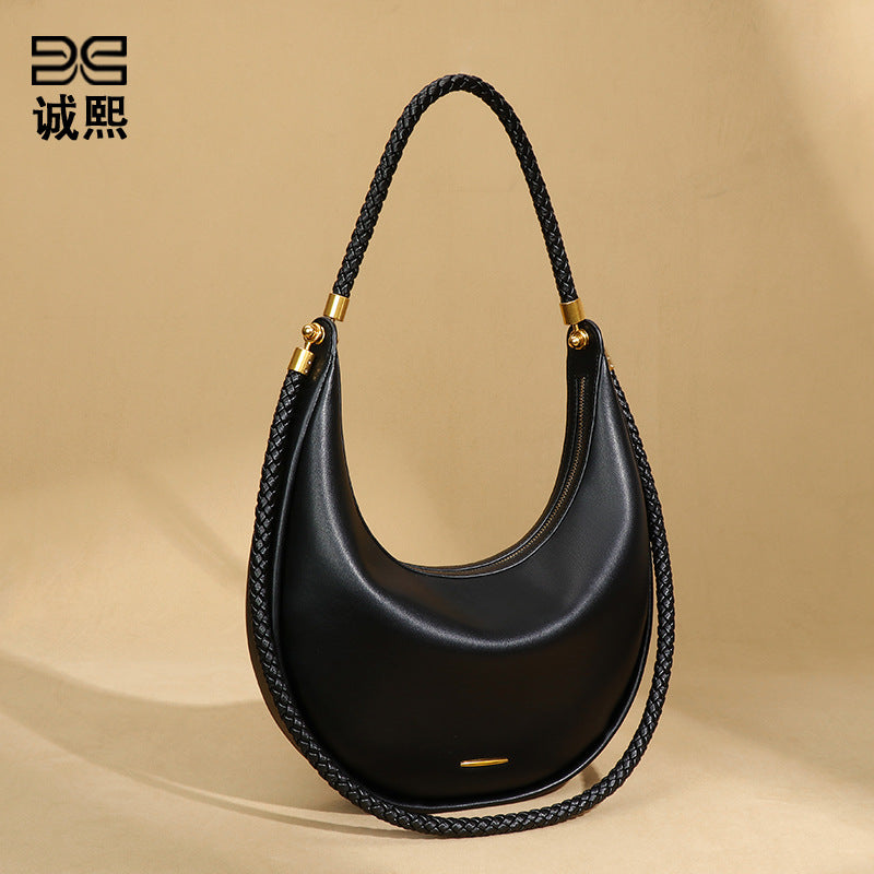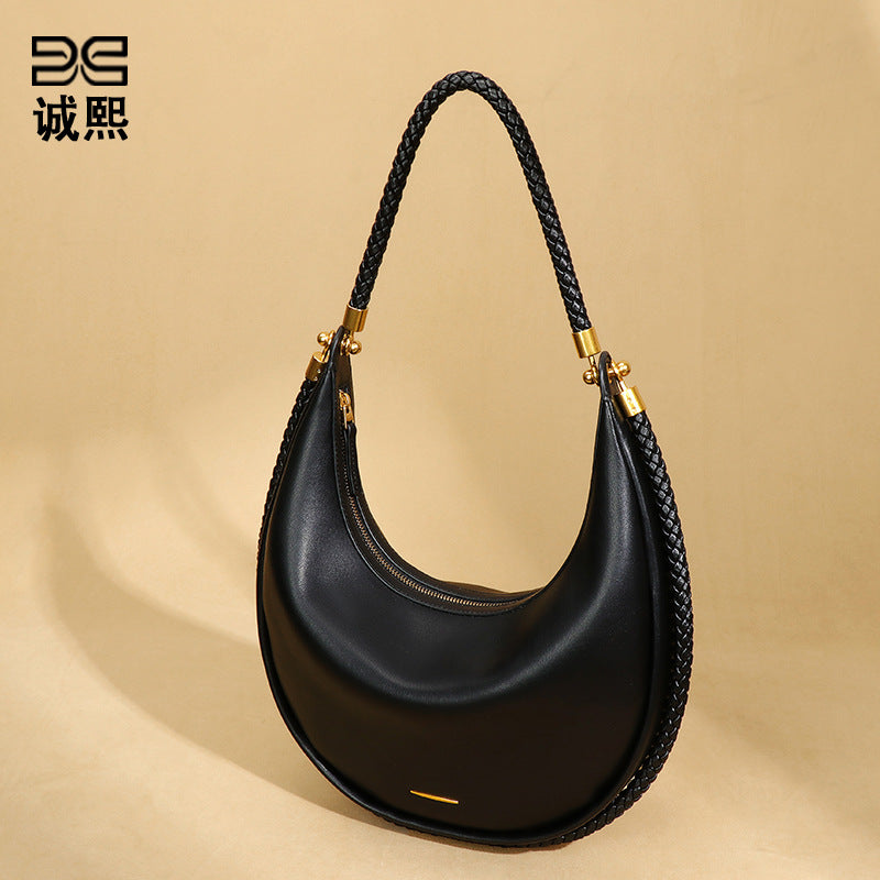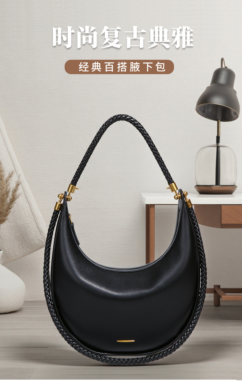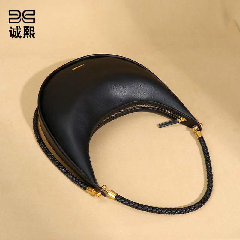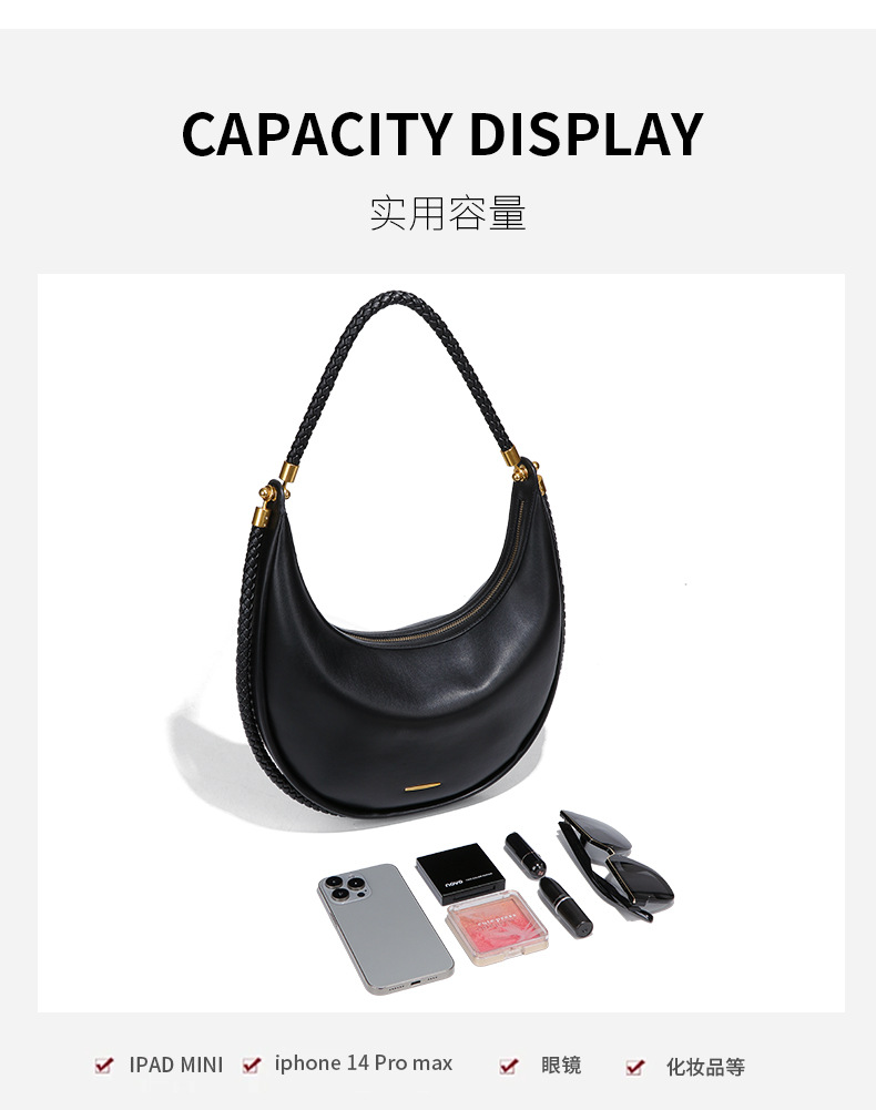 新款高级感大号黑色月牙包个性百搭单肩腋下包手提百搭质感新月包