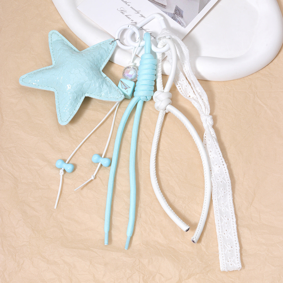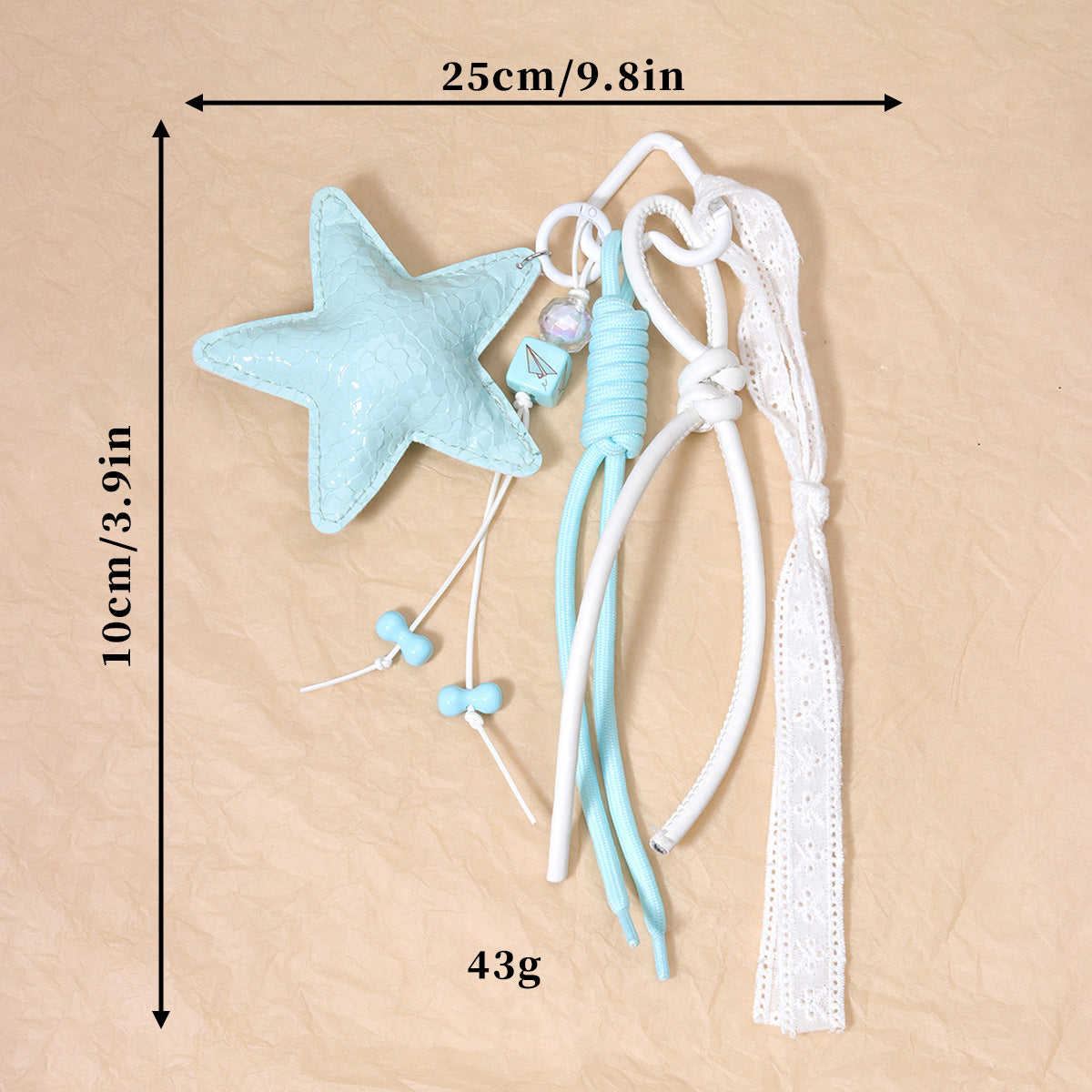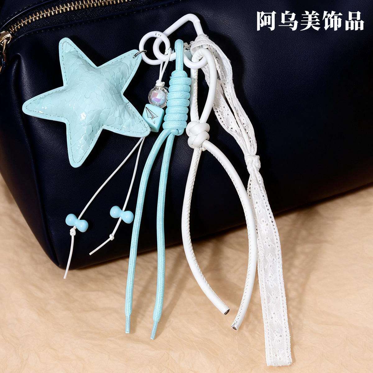 新款miu系丝带亮面皮革五角星小众包包挂件钥匙扣挂绳饰品串珠挂