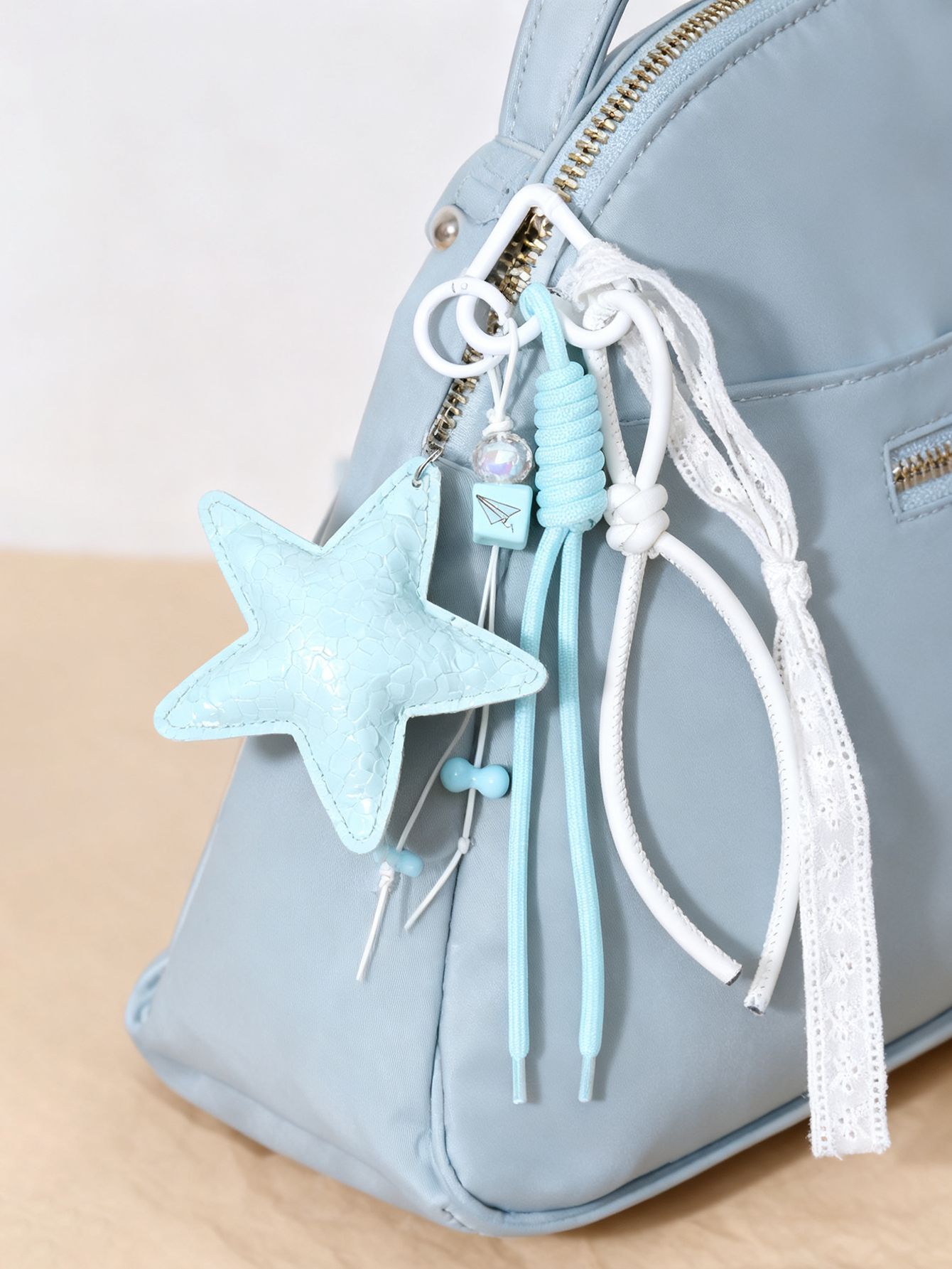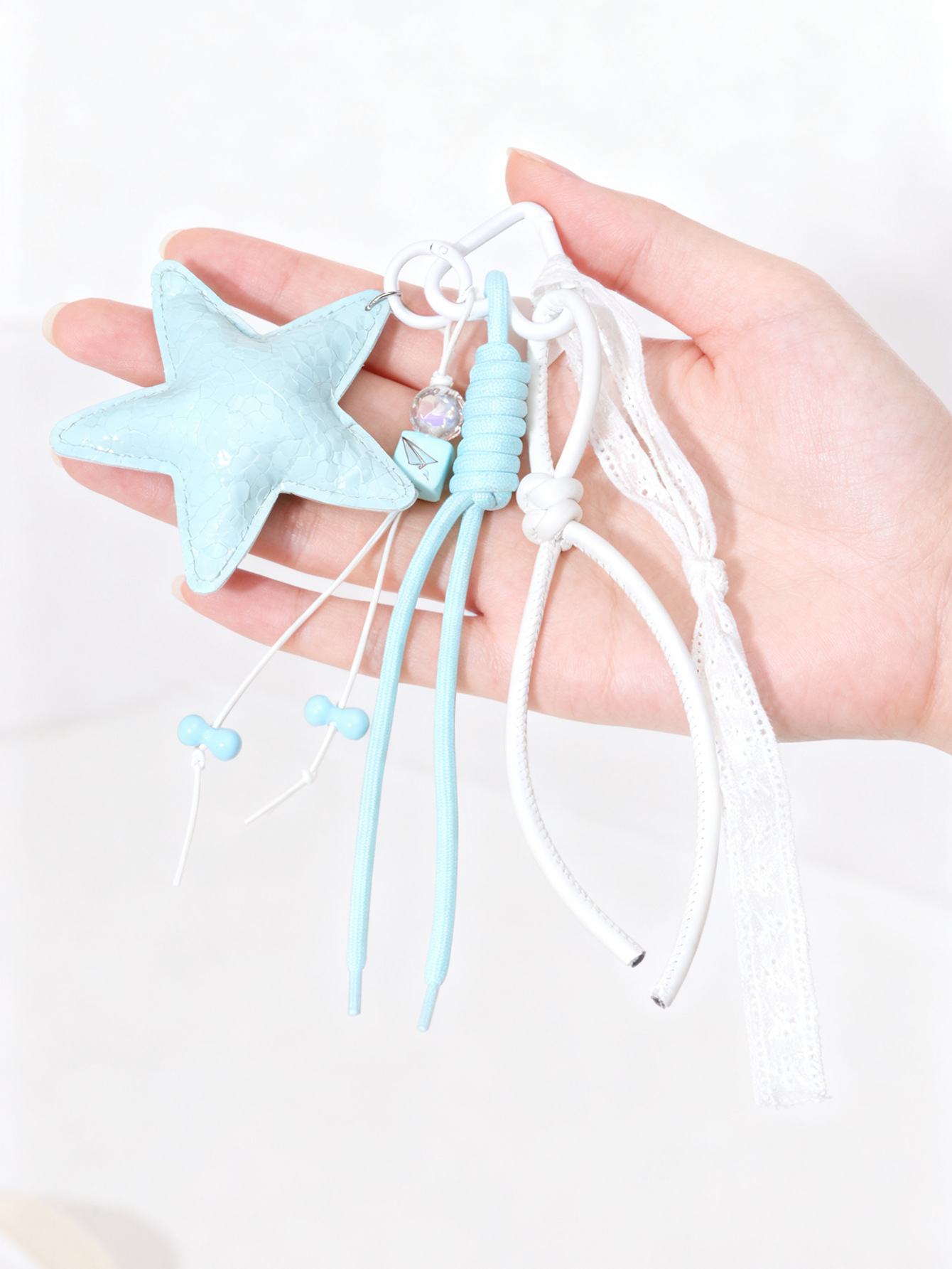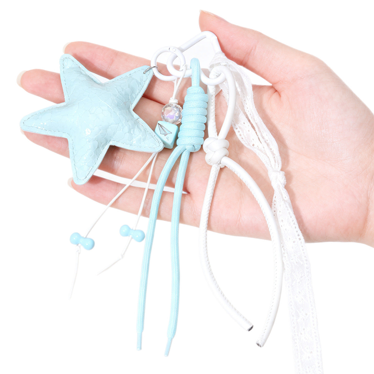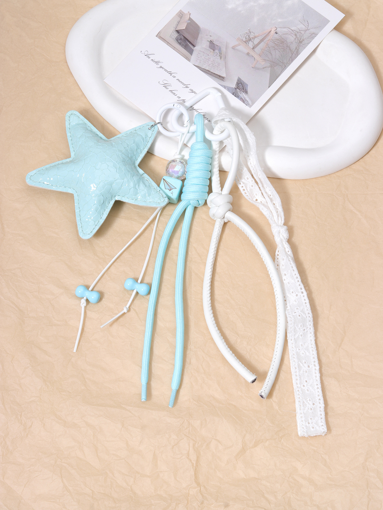 新款miu系丝带亮面皮革五角星小众包包挂件钥匙扣挂绳饰品串珠挂