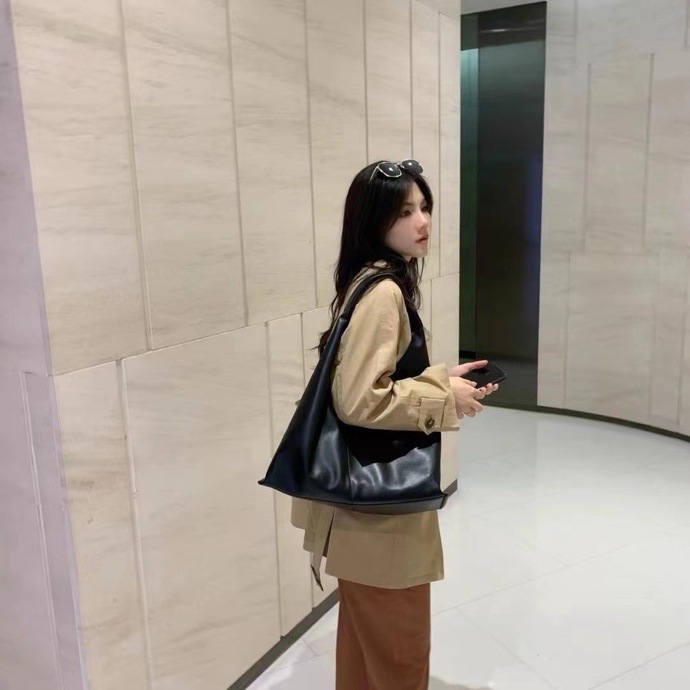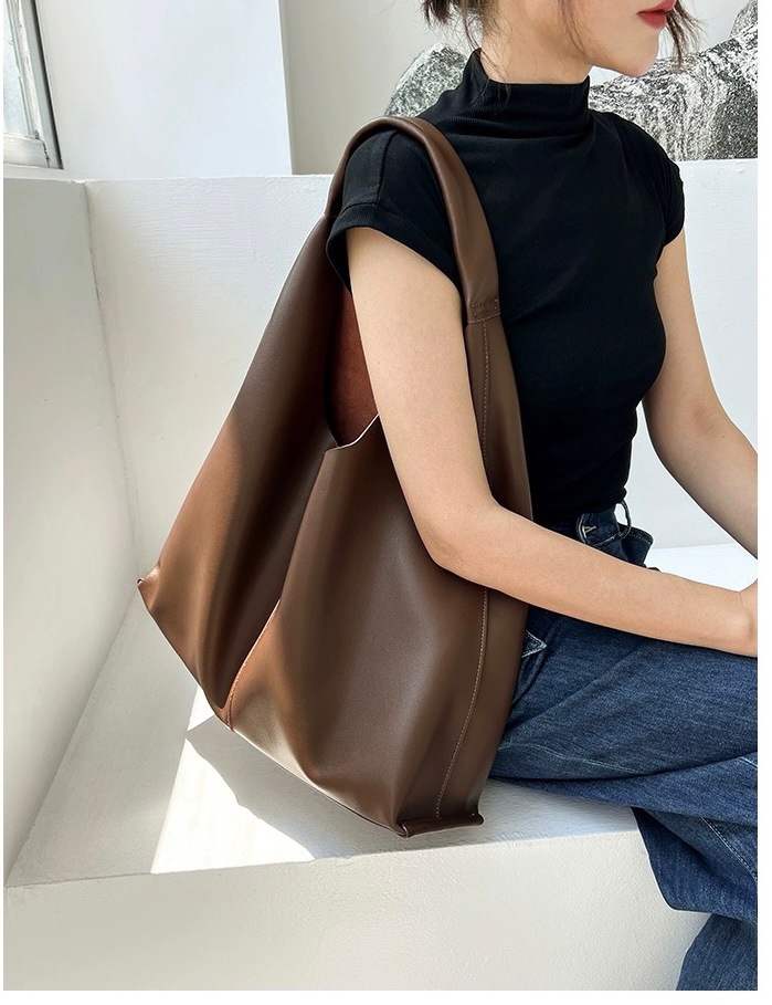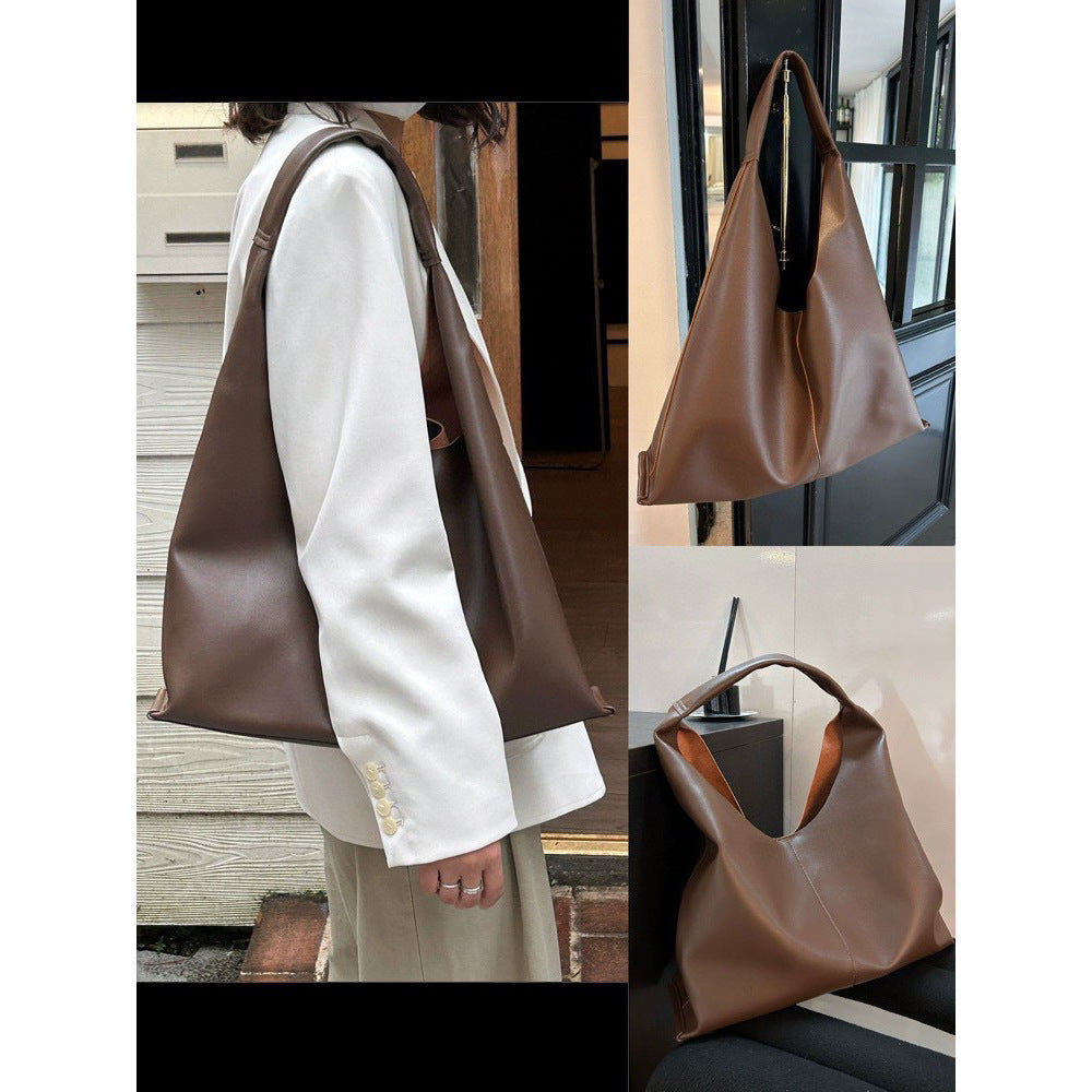 日韩软牛皮慵懒风托特包大容量真皮购物袋百搭休闲流浪单肩女包大