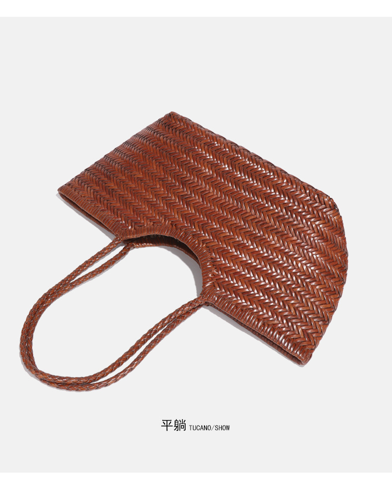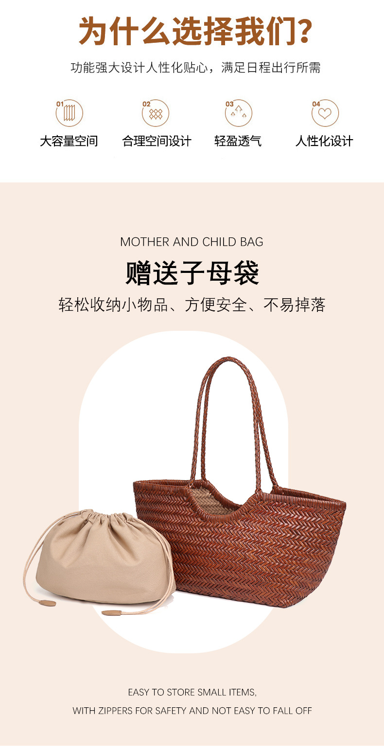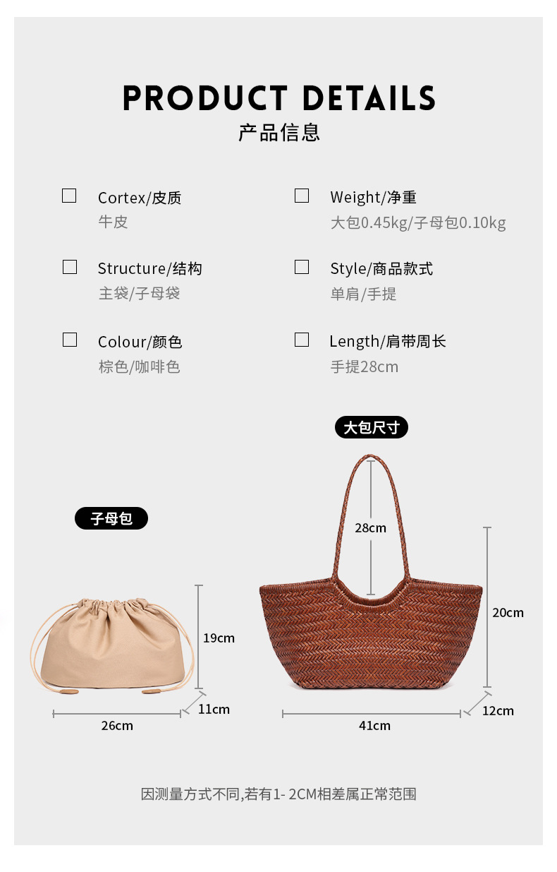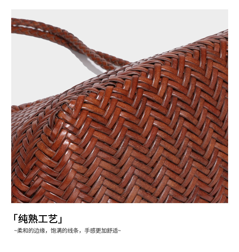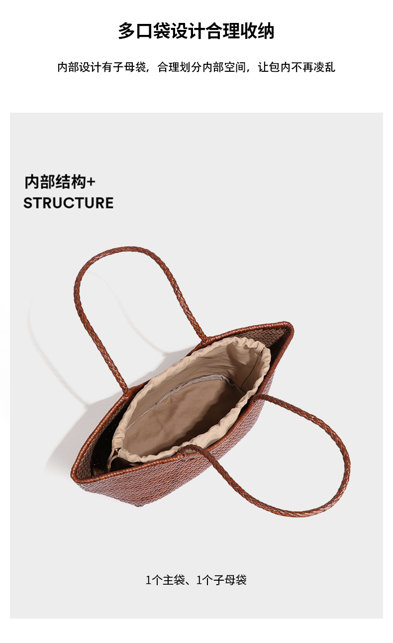 时尚不规格真皮编织菜篮子单肩腋下女包大容量通勤手提子母托特包