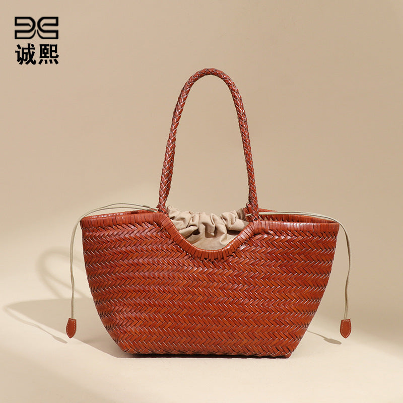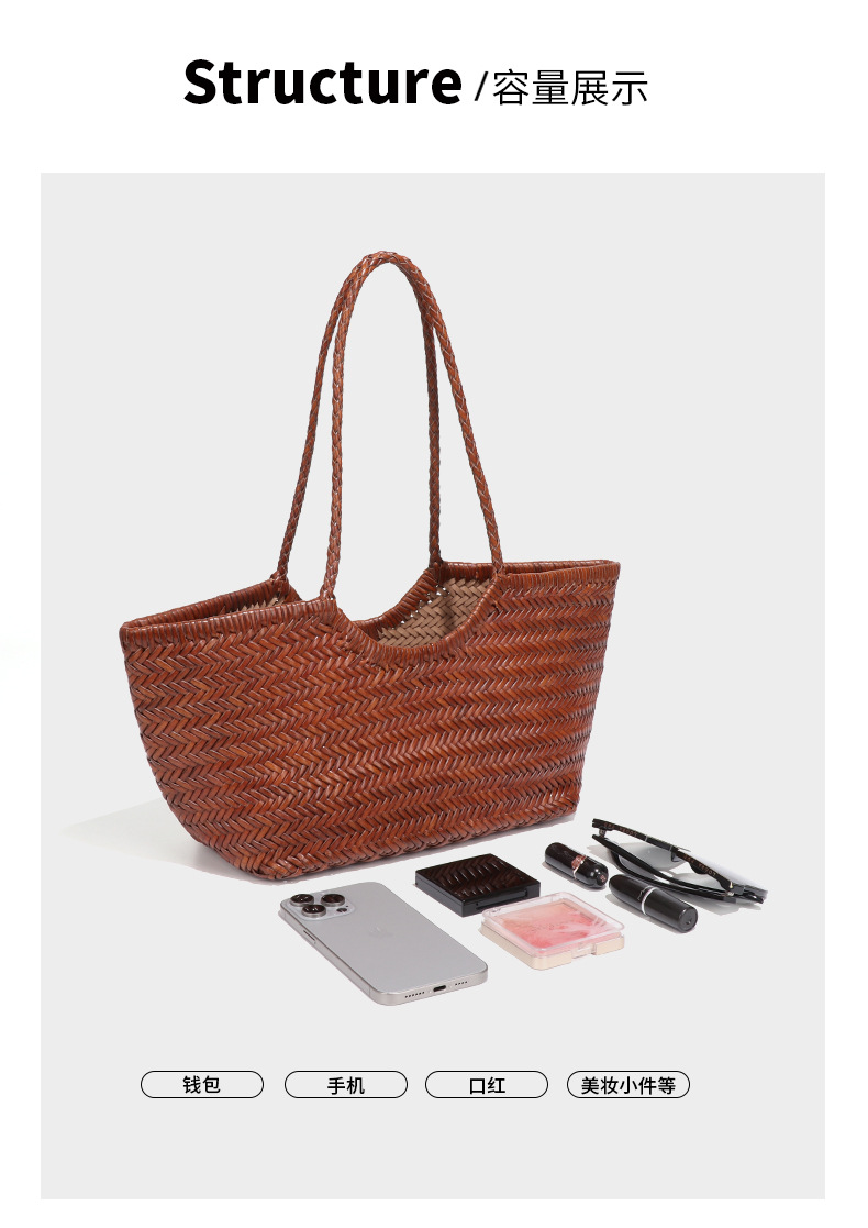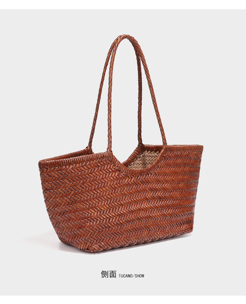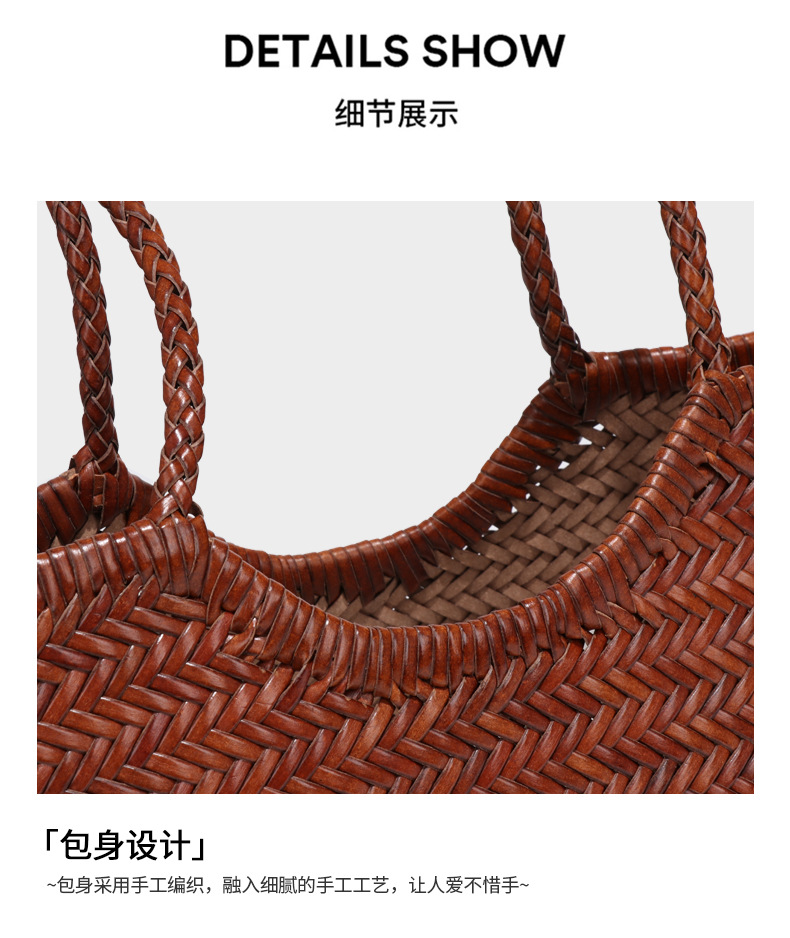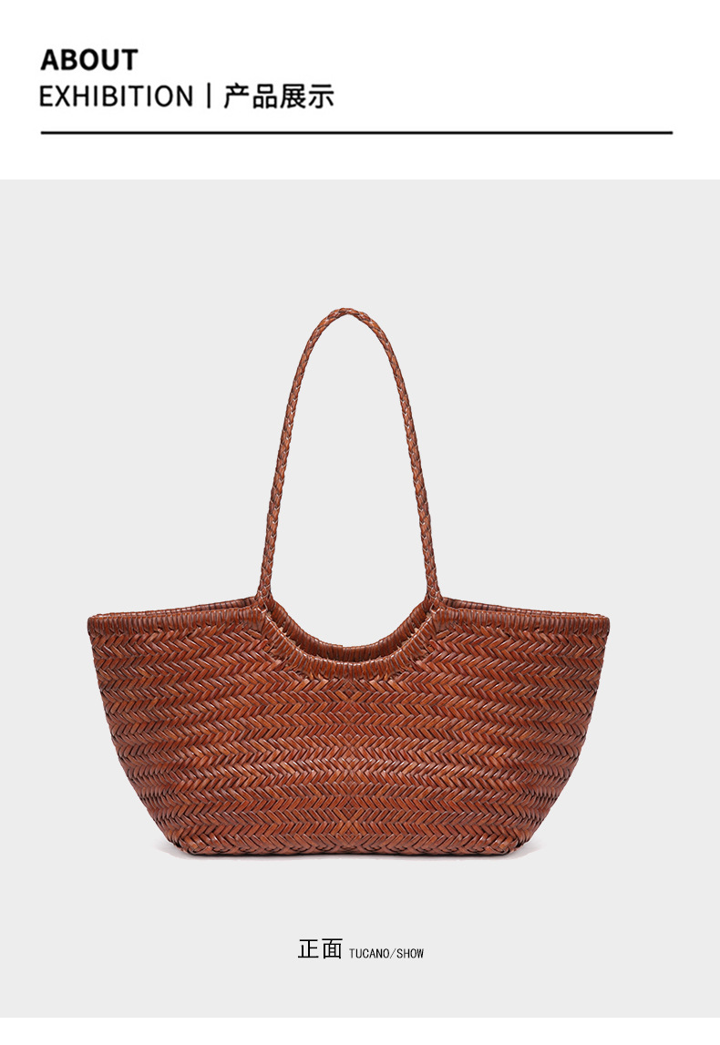 时尚不规格真皮编织菜篮子单肩腋下女包大容量通勤手提子母托特包