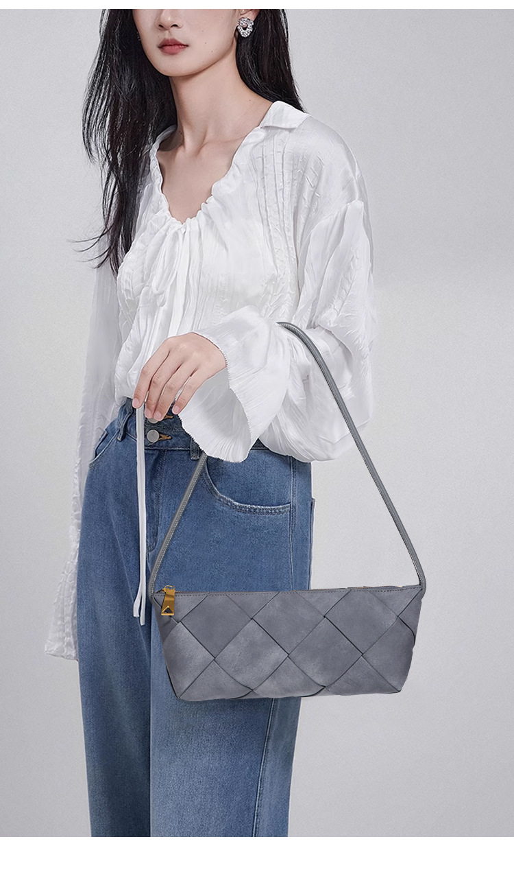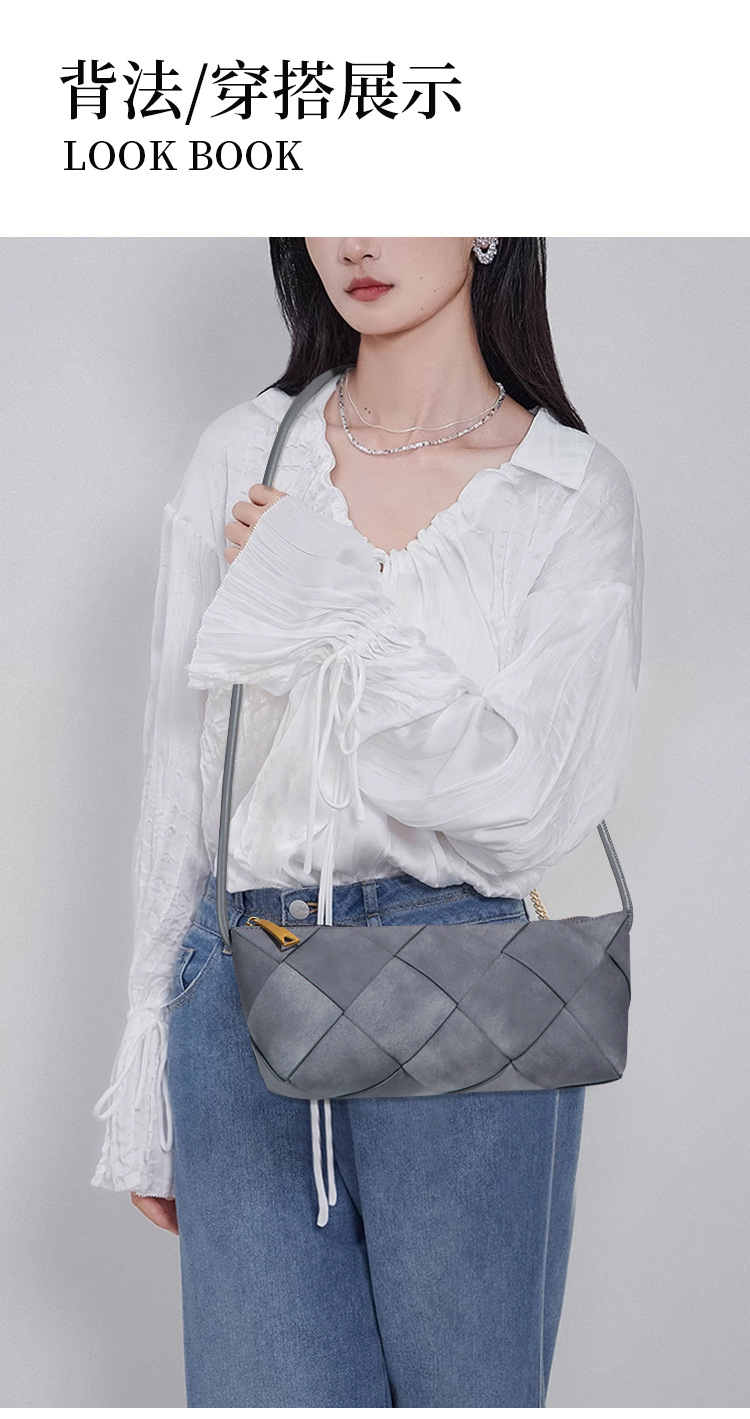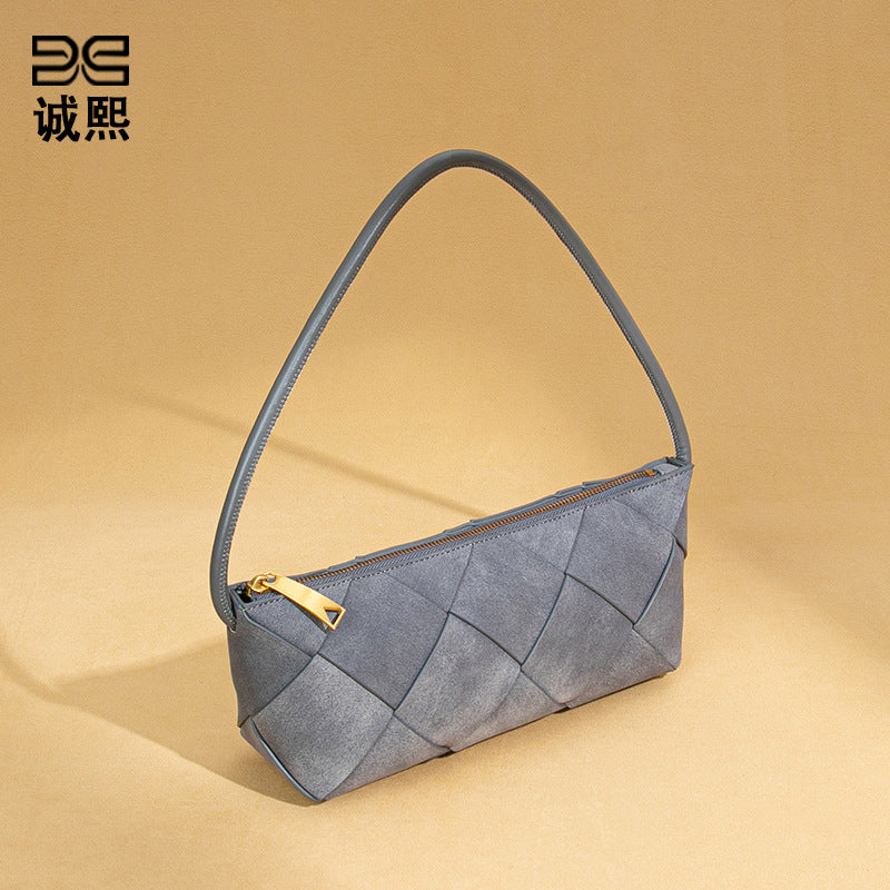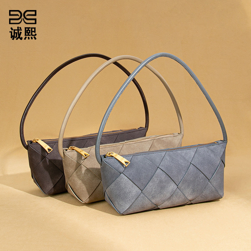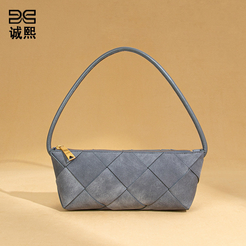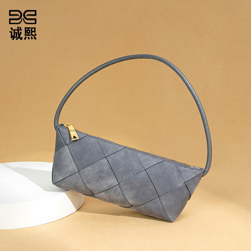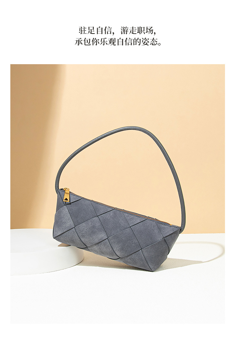 时尚小众设计单肩女包秋冬磨砂麂皮绒编织包包潮流复古手拎腋下包