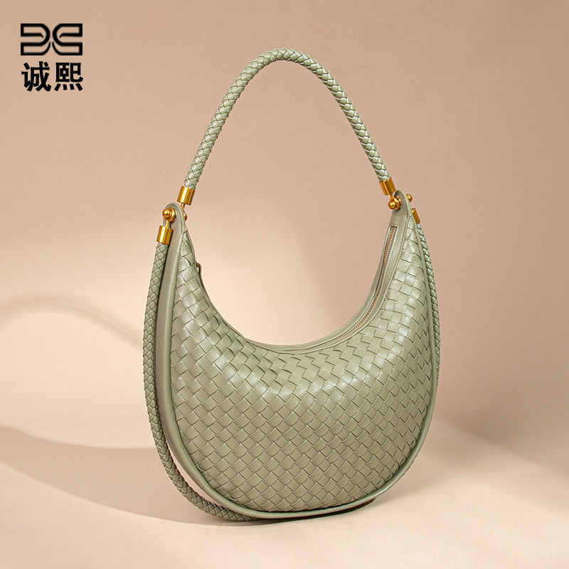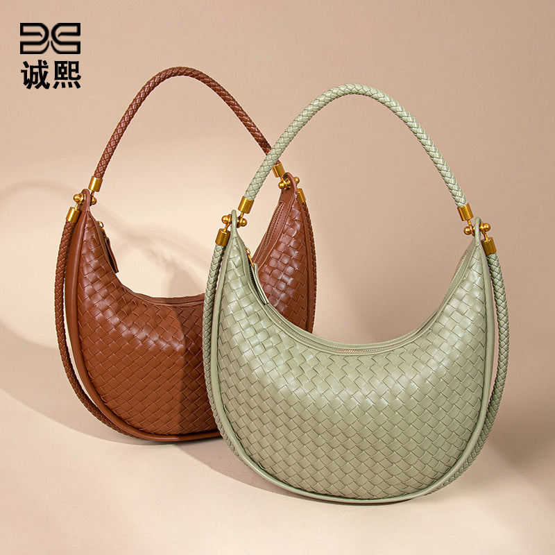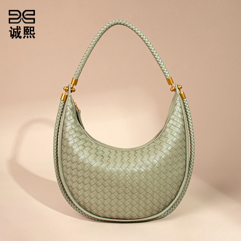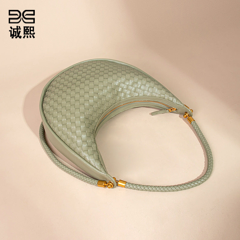 时尚手工编织包休闲女士手提月牙包小众单肩腋下包斜挎新月饺子包
