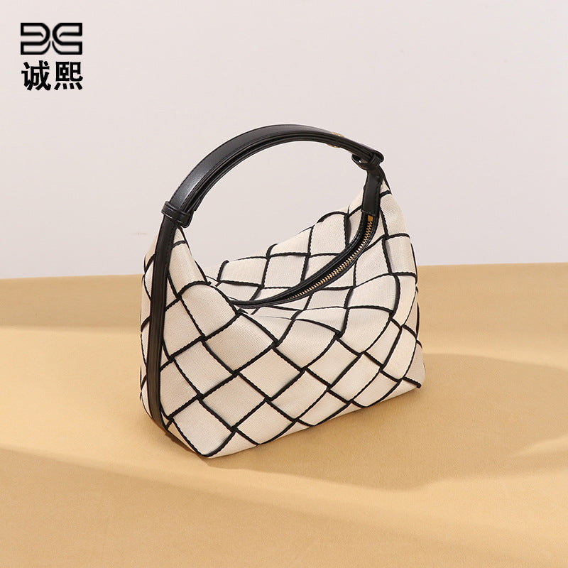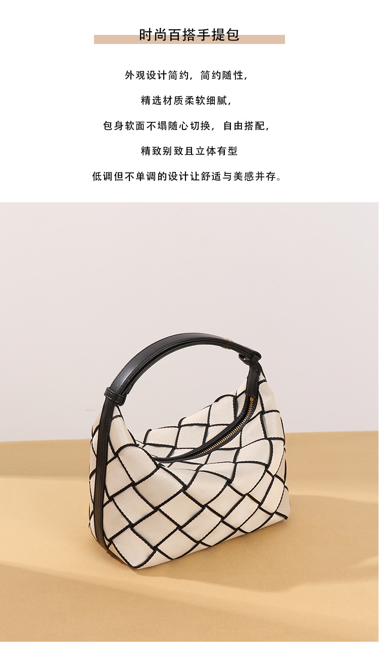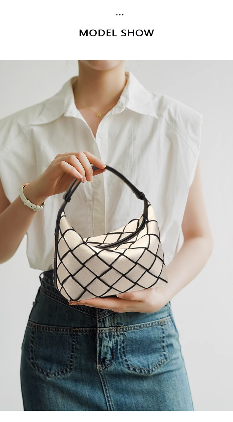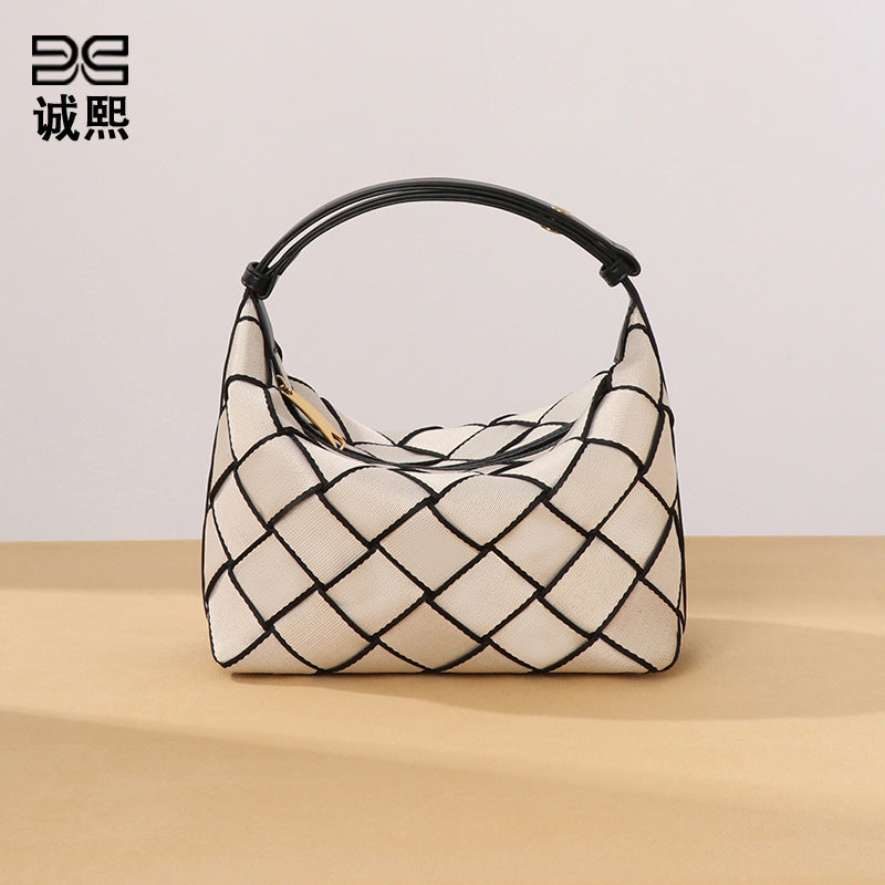 时尚新款撞色编织女包简约手拎饭盒包小众风单肩包休闲百搭腋下包