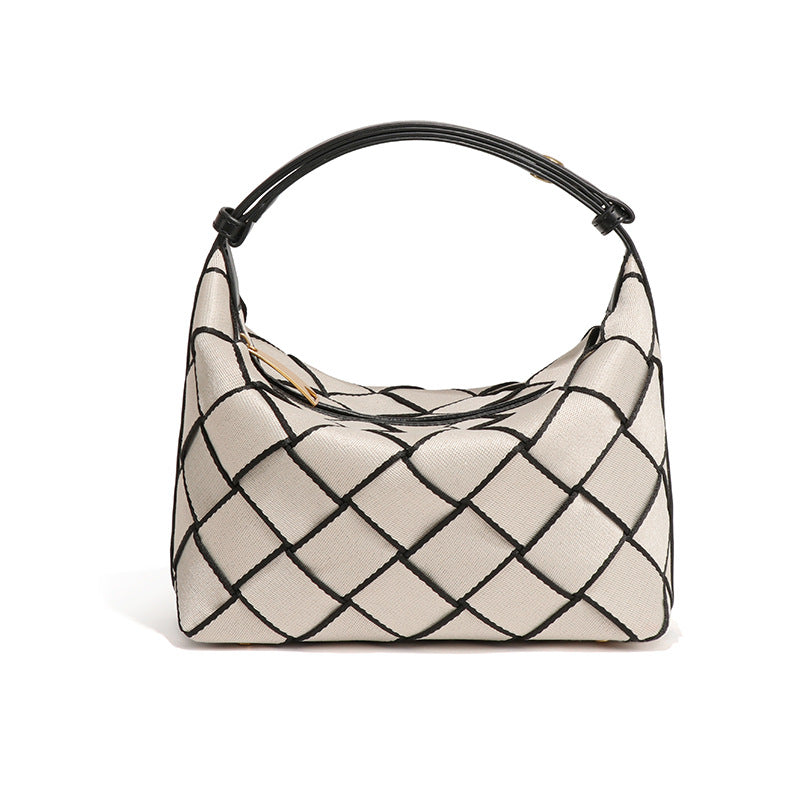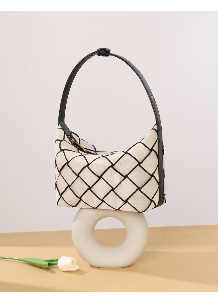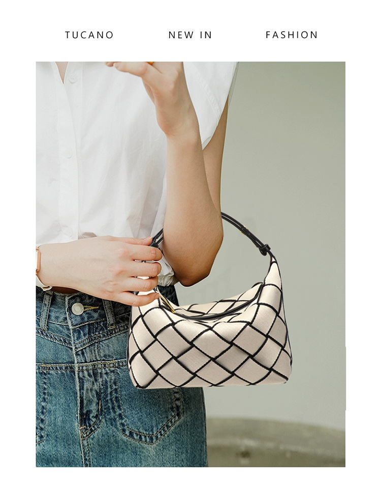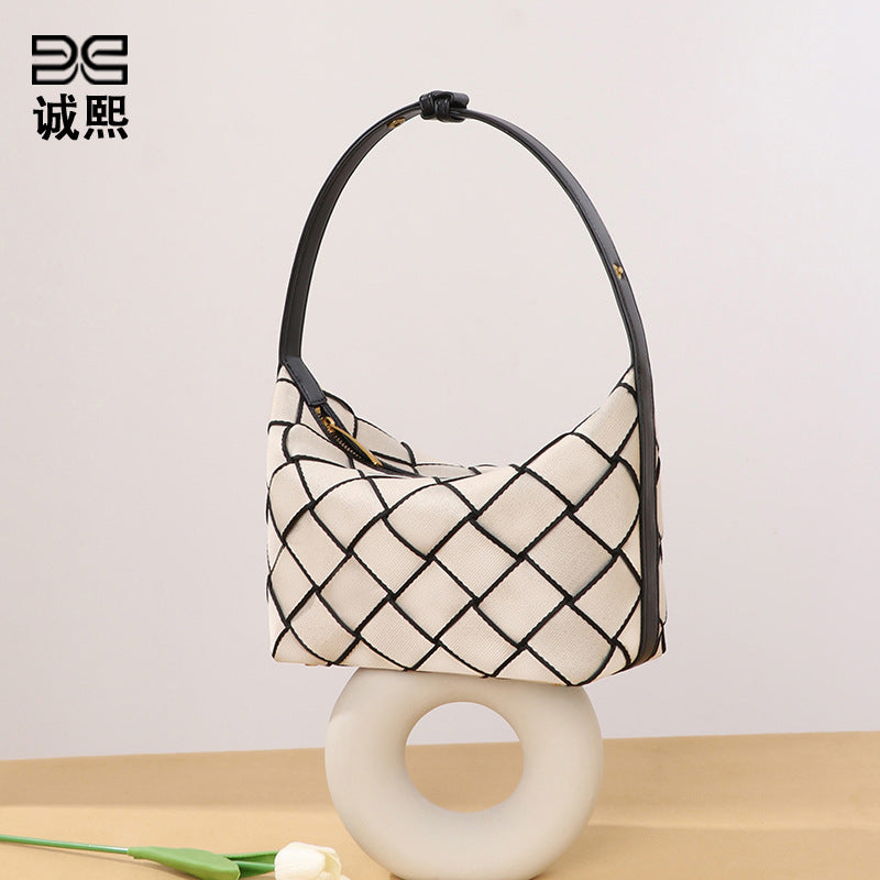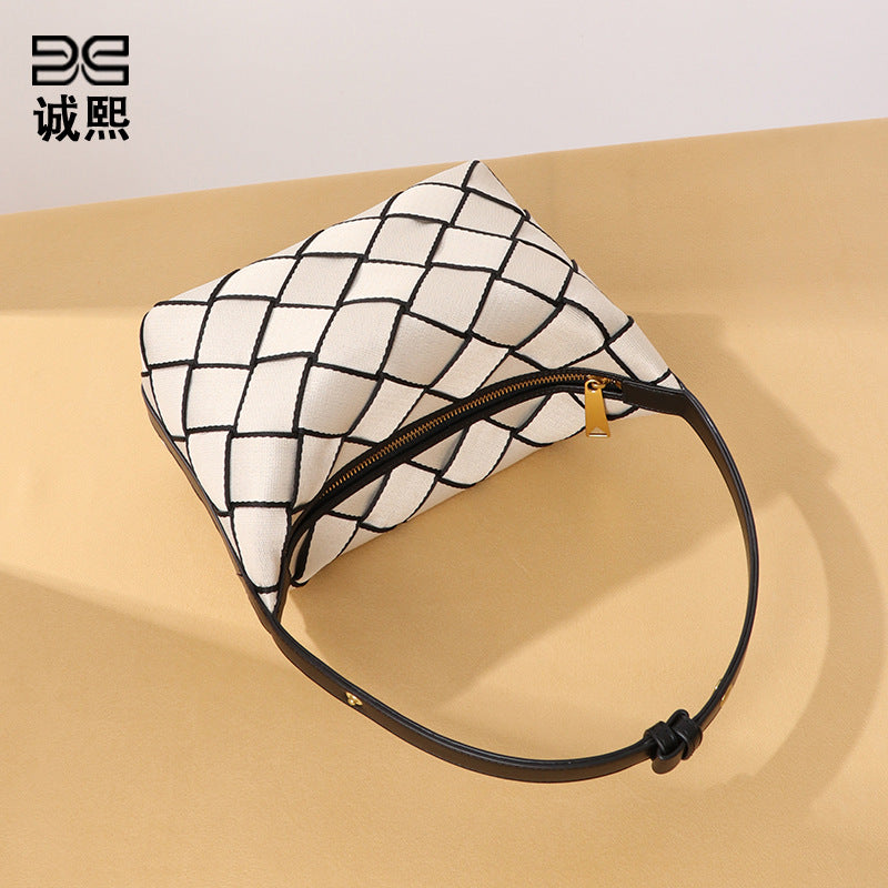 时尚新款撞色编织女包简约手拎饭盒包小众风单肩包休闲百搭腋下包