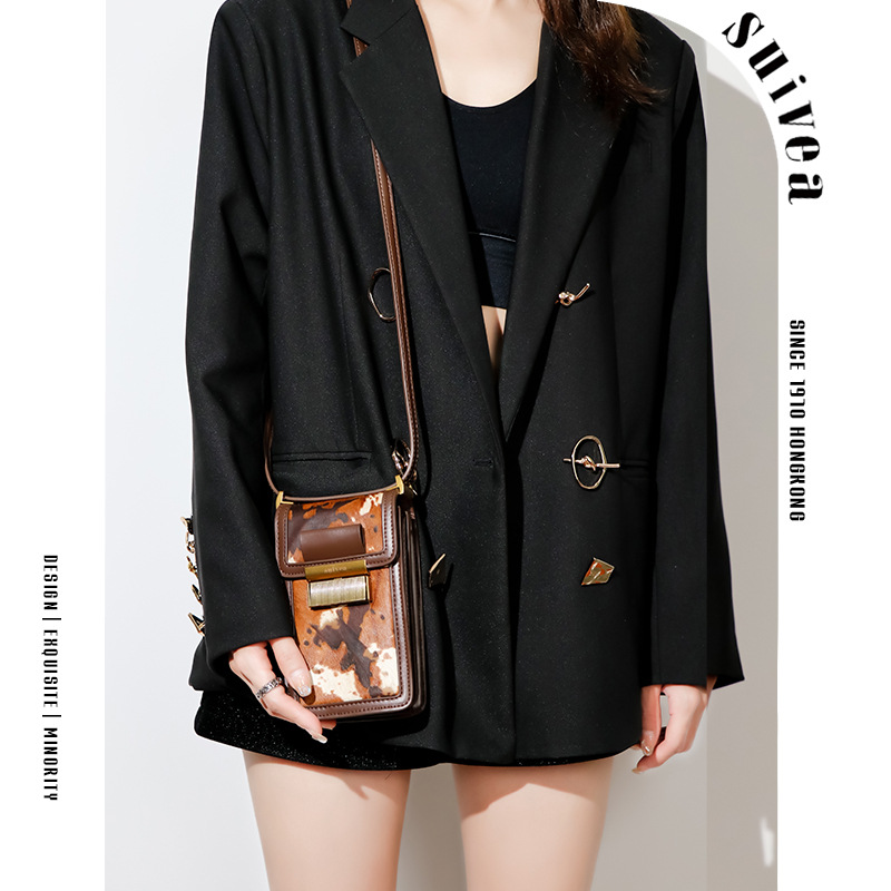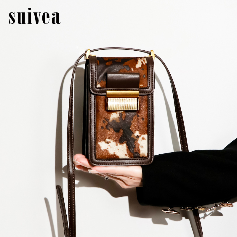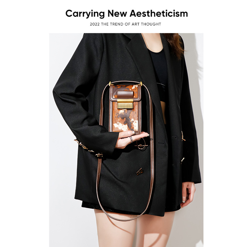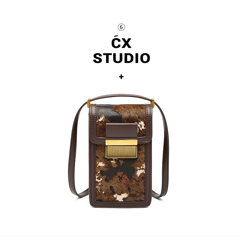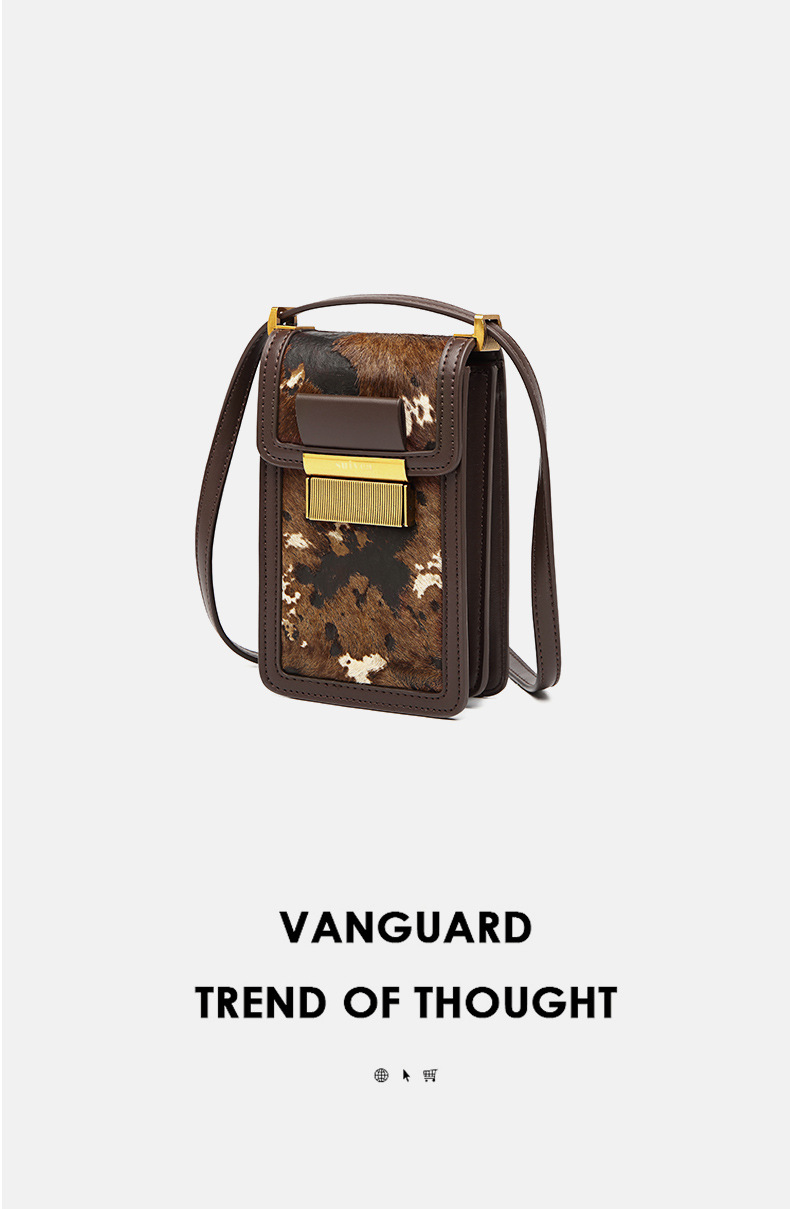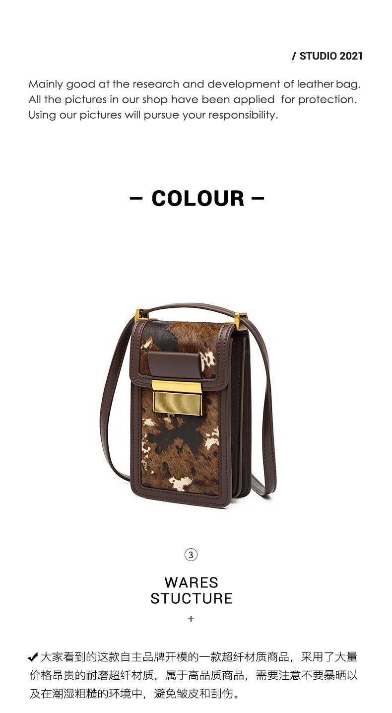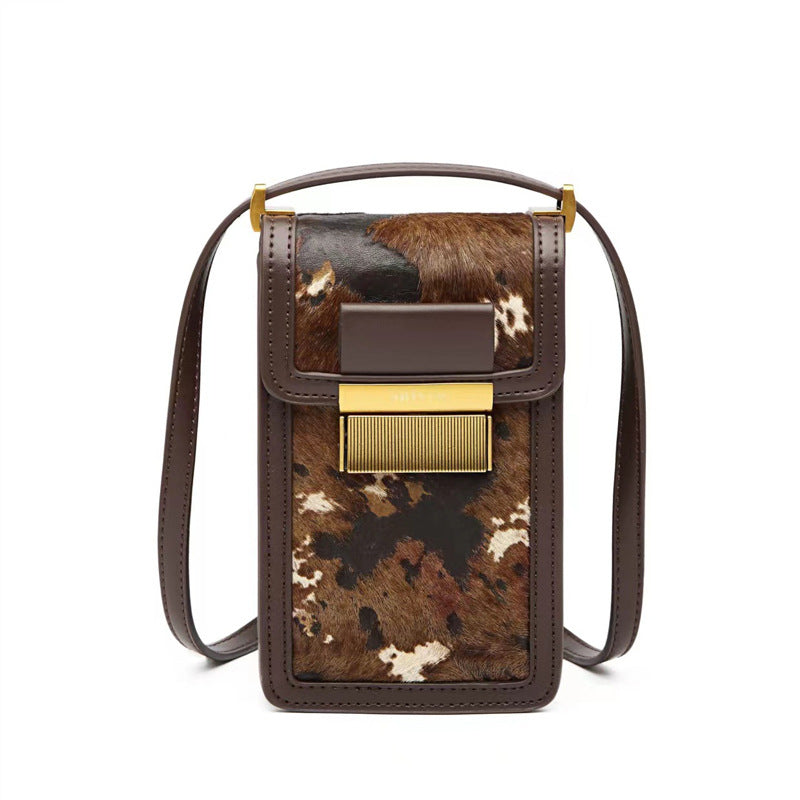 时尚百搭潮斜跨竖款方形迷你女包2023秋冬新款复古洋气马毛手机包