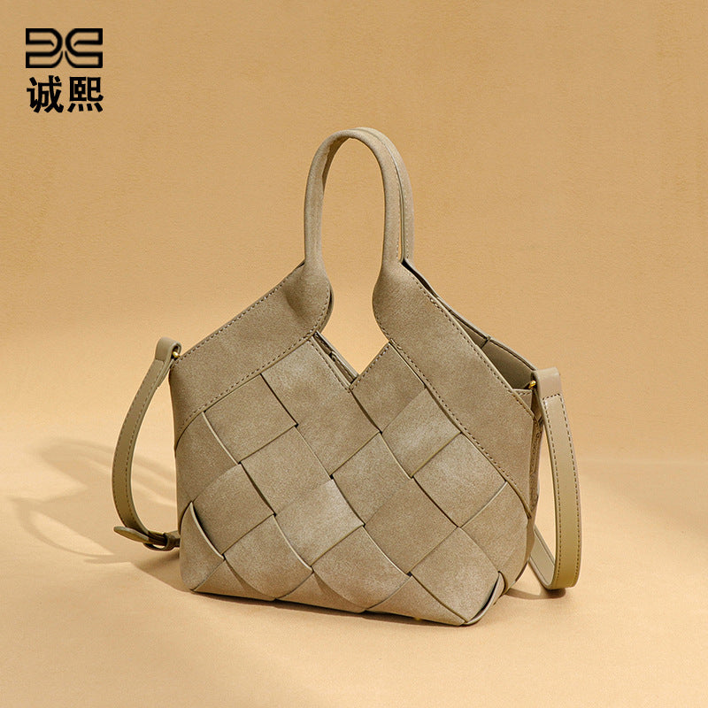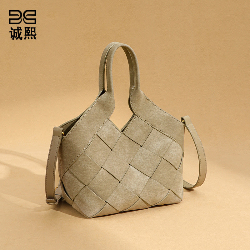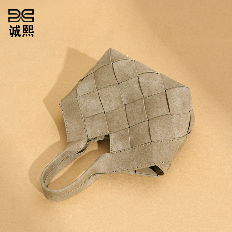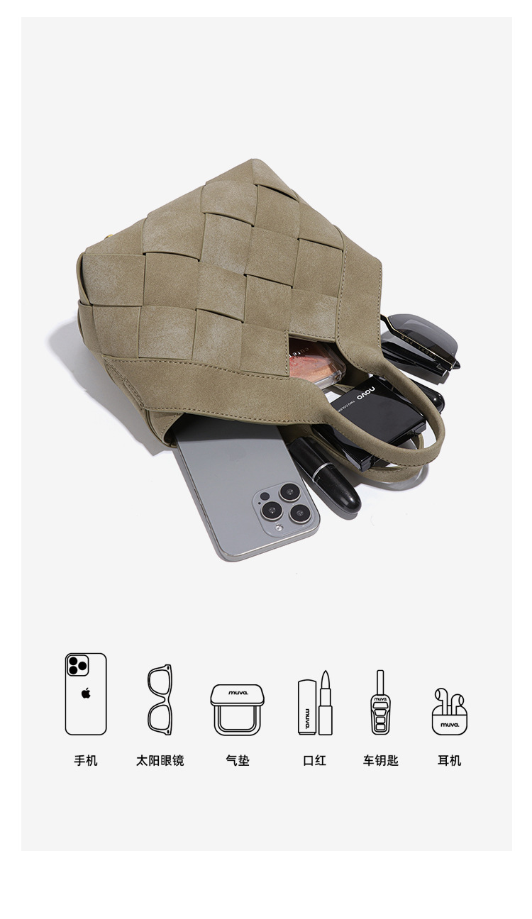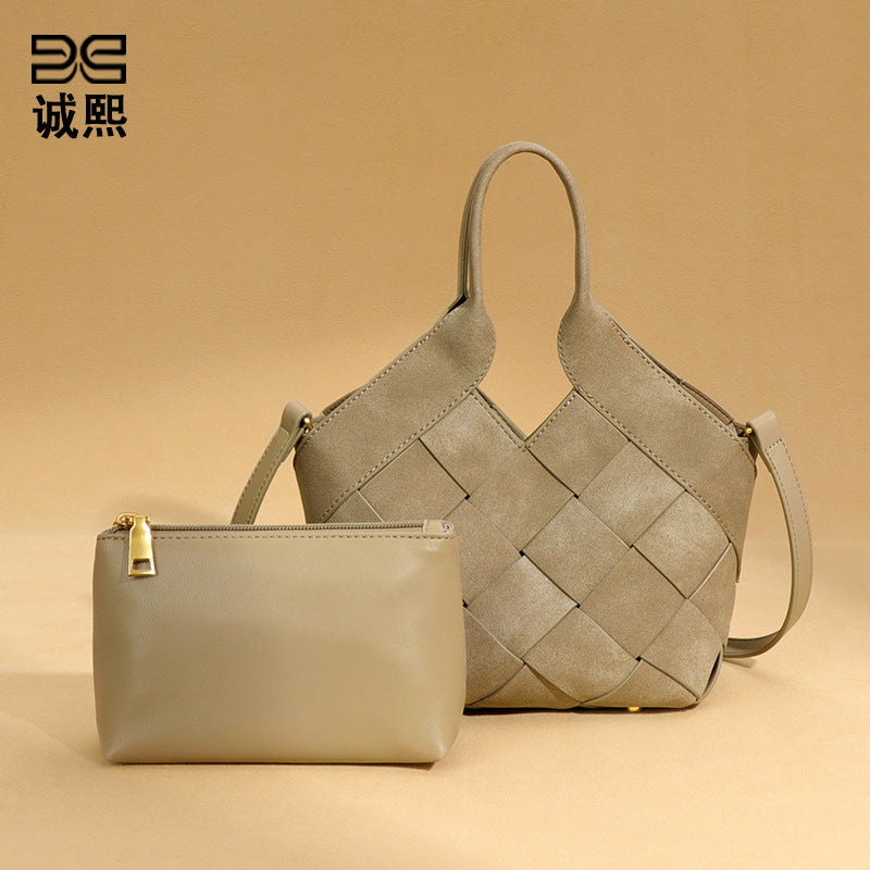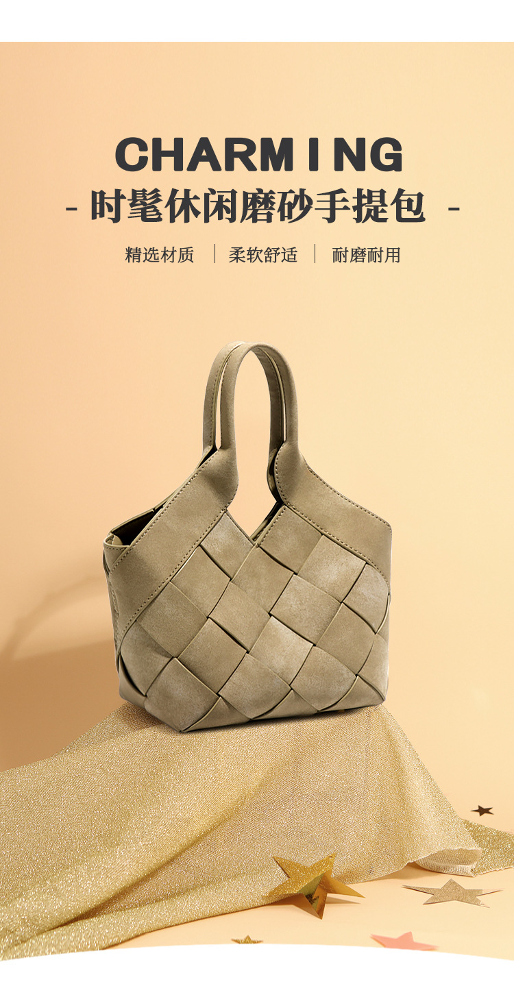 时尚磨砂高级感手拎单肩女包小众手工编织包包简约潮流子母斜挎包